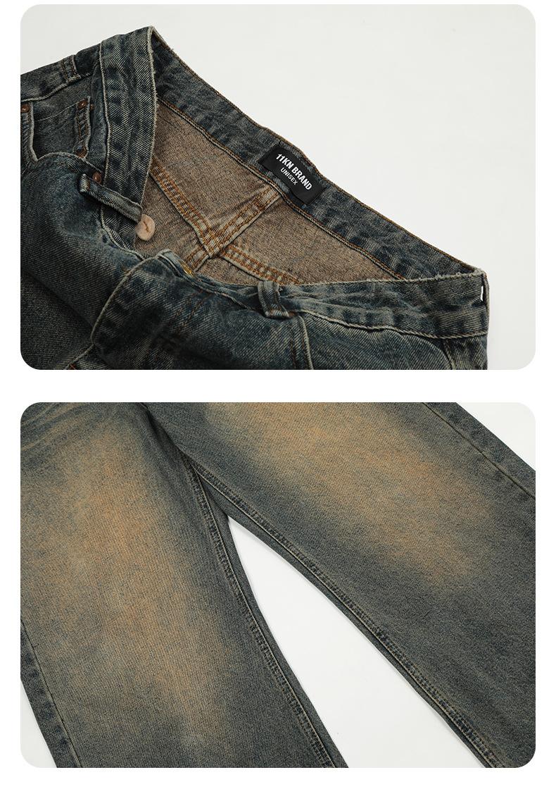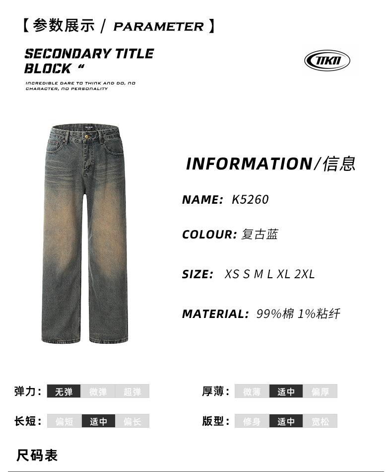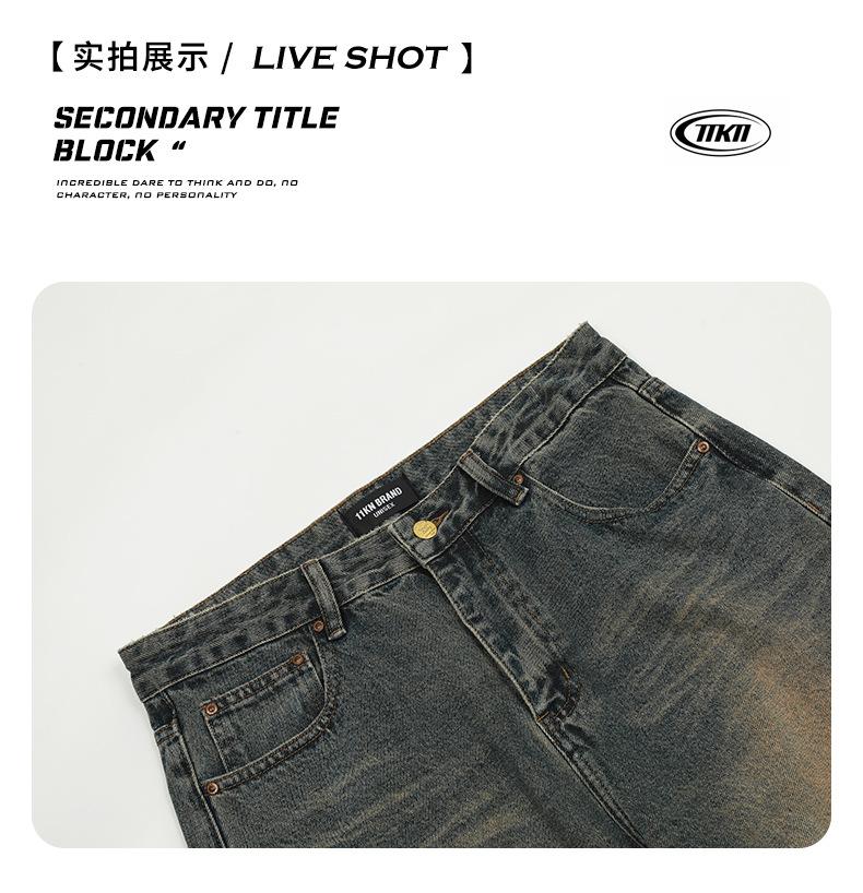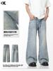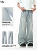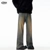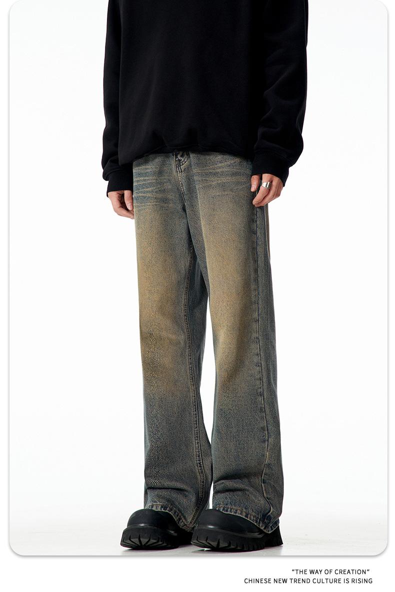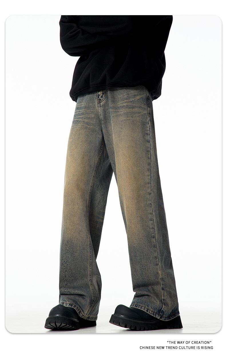 11KN 미국식 고가 vibe 낡은 마모 블랙 청바지 남성 와이드 스트레이트 빈티지 워싱 바지 ins