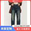 11KN American High Street Vibe Сделать старые изношенные черные джинсы Muжские свободные прямые винтажные штаны ins