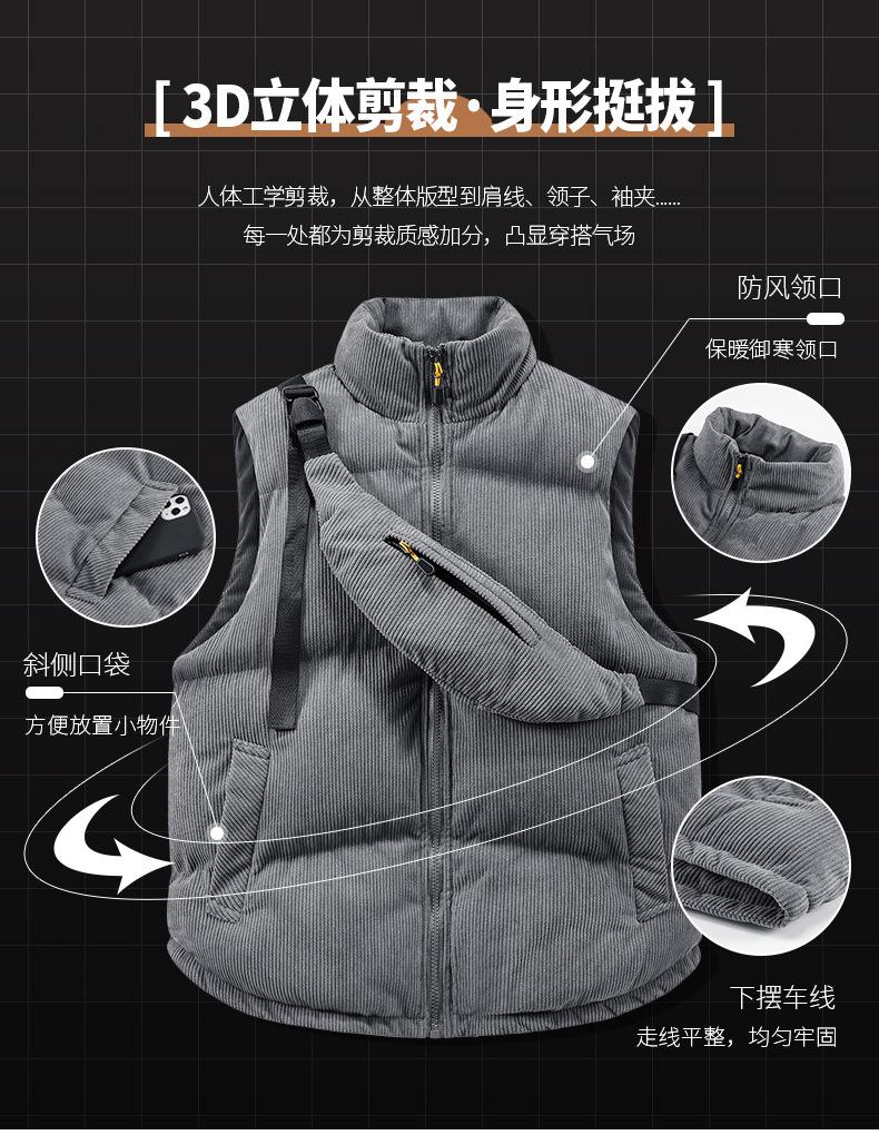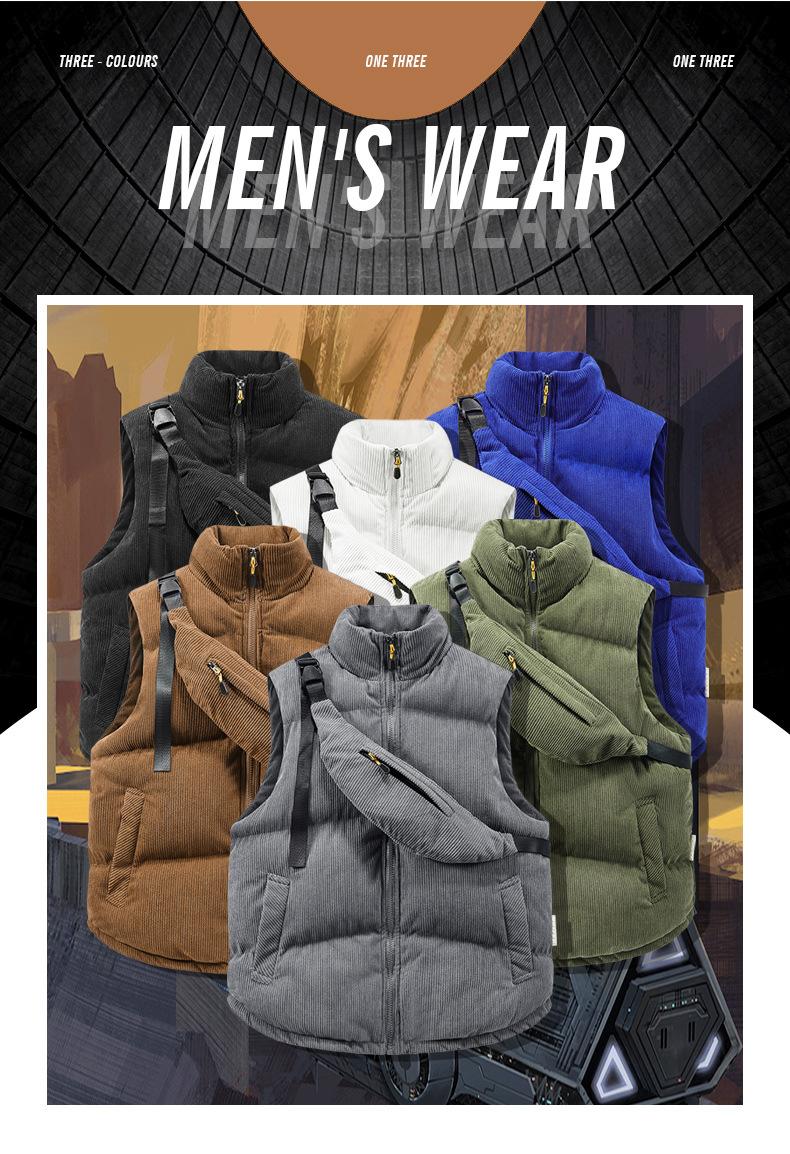Chaleco de pana vintage de marca de moda estadounidense para hombre, chaleco cálido de algodón con plumón informal de moda para otoño e invierno, abrigo acolchado de algodón