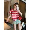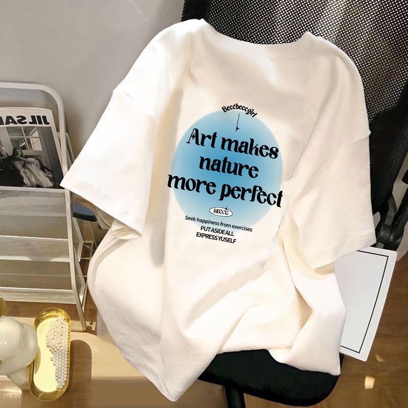 Camiseta de Manga Corta para Hombre y Mujer Diseño de Moda Nacional Estampado Pareja Verano Holgada Manga Corta Casual Combinable Top Camiseta para Mujer