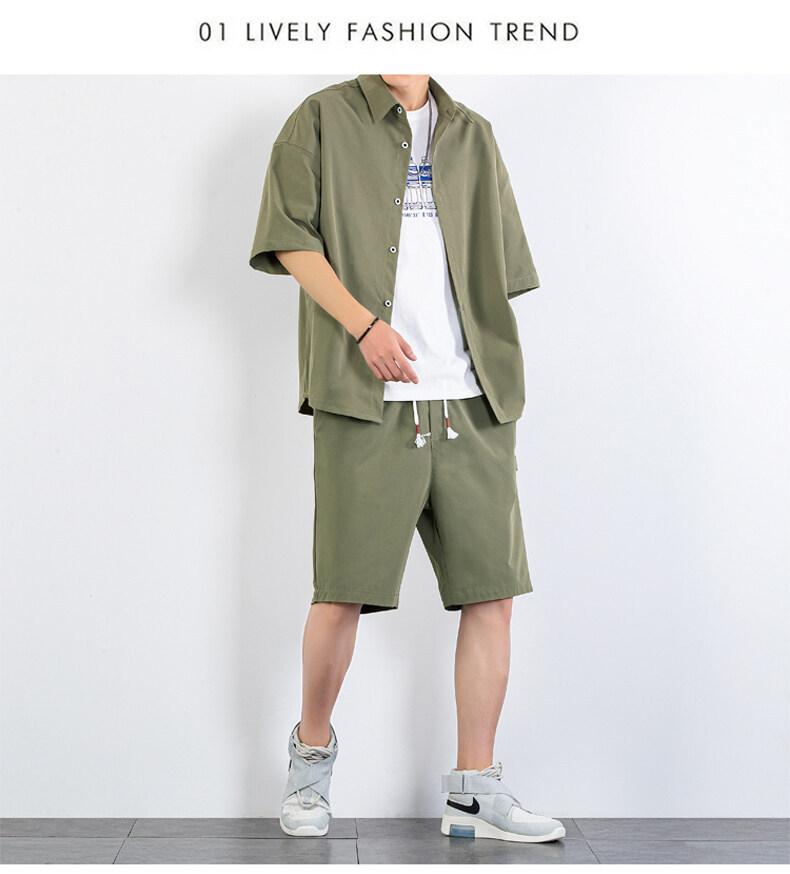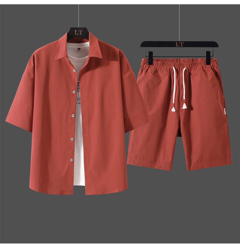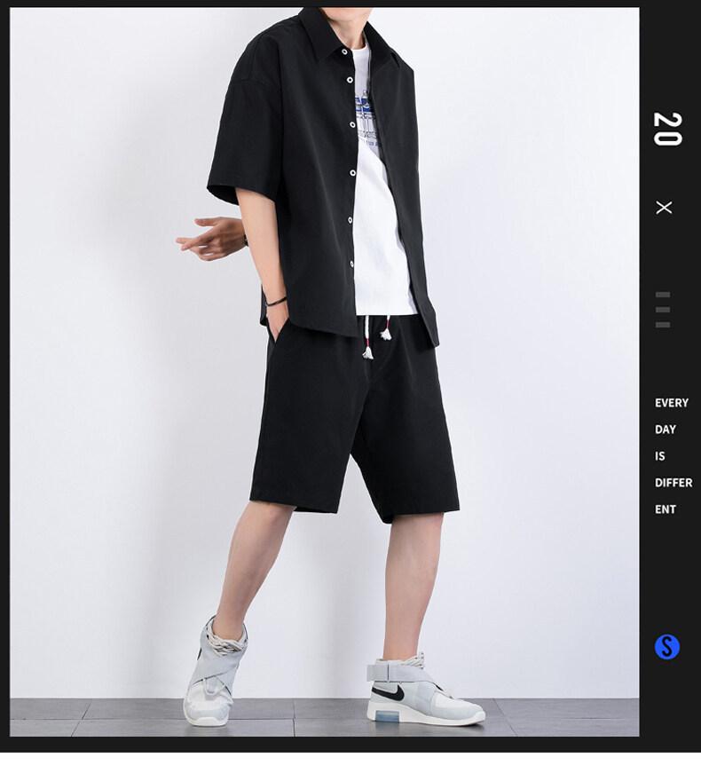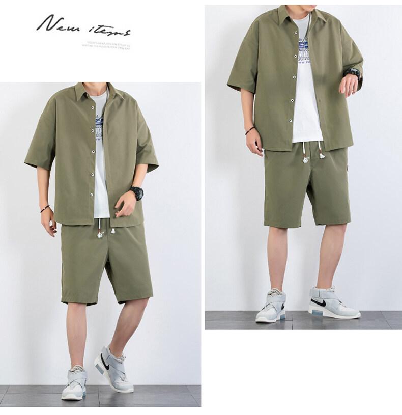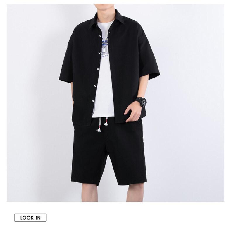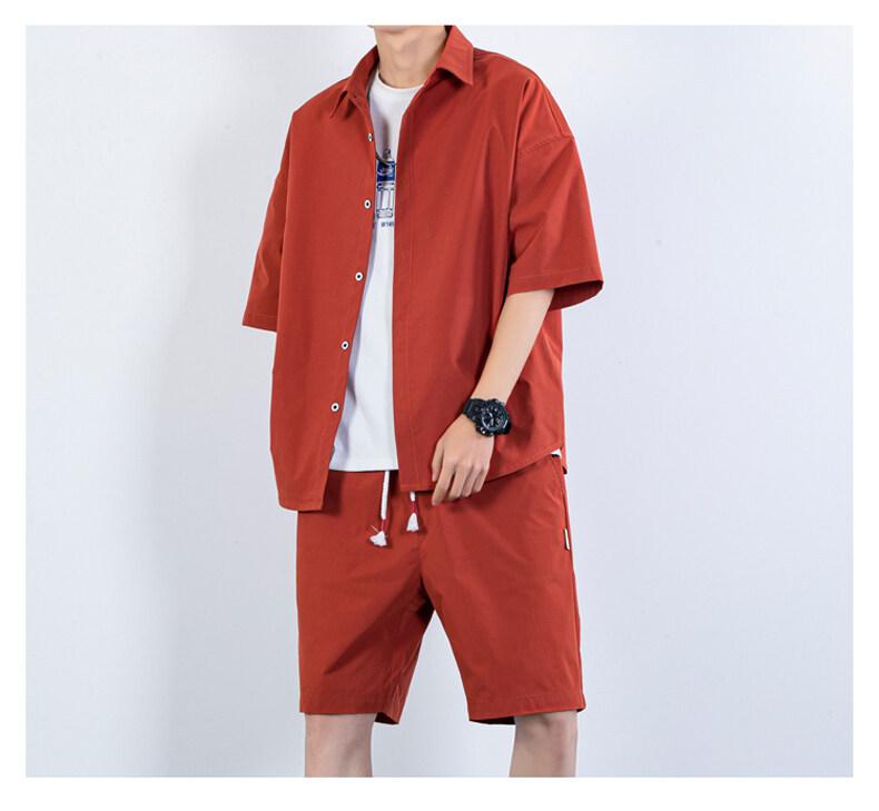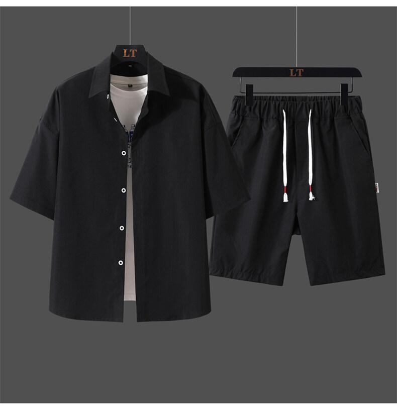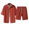 Traje Casual de Verano Nuevo 2025 Camisa Delgada de Moda Color Sólido Holgado de Manga Corta Traje de Shorts Conjunto de Dos Piezas