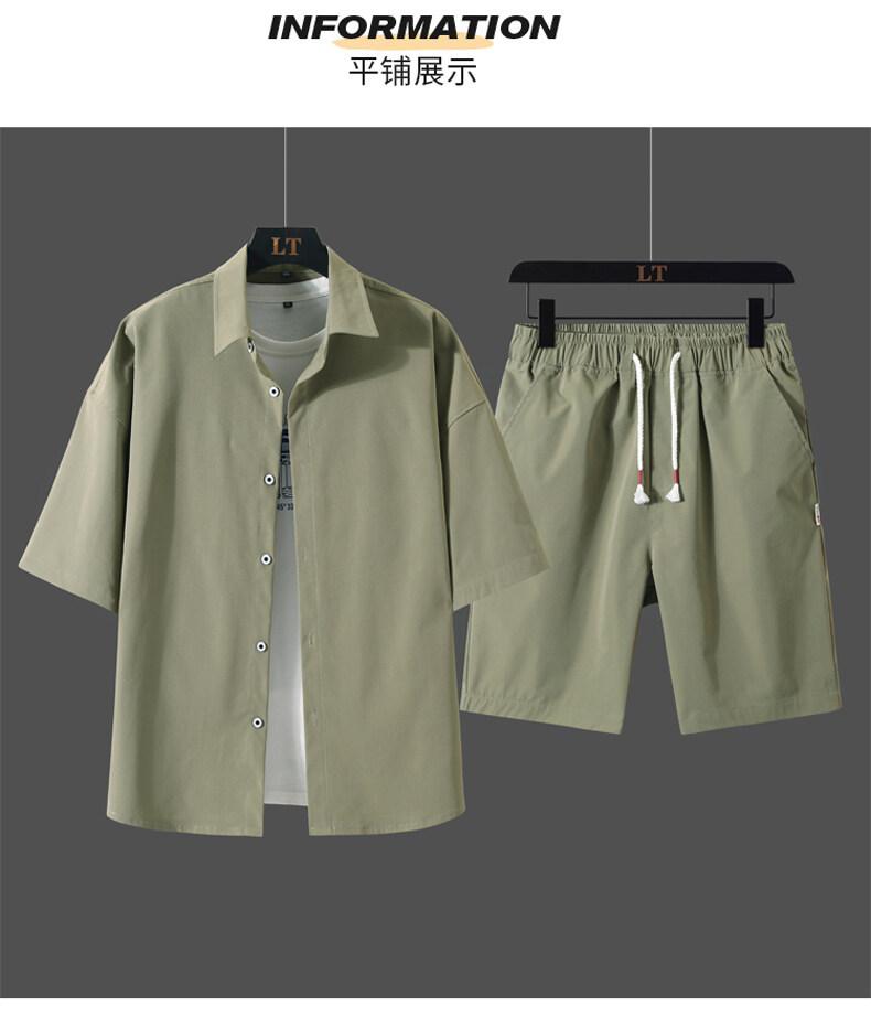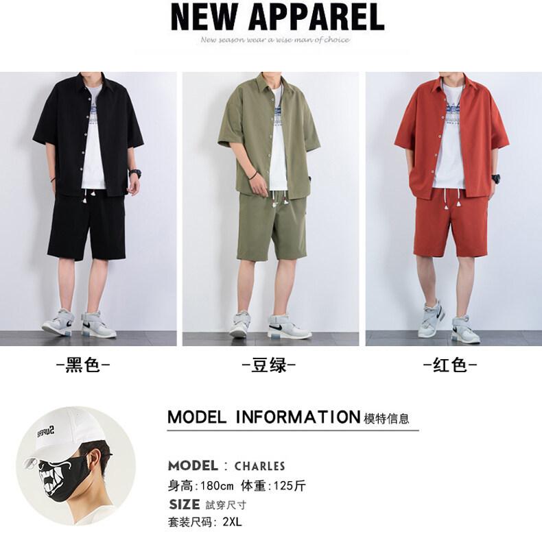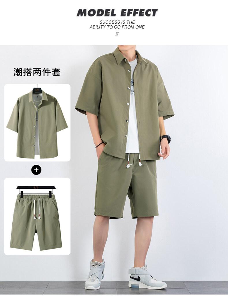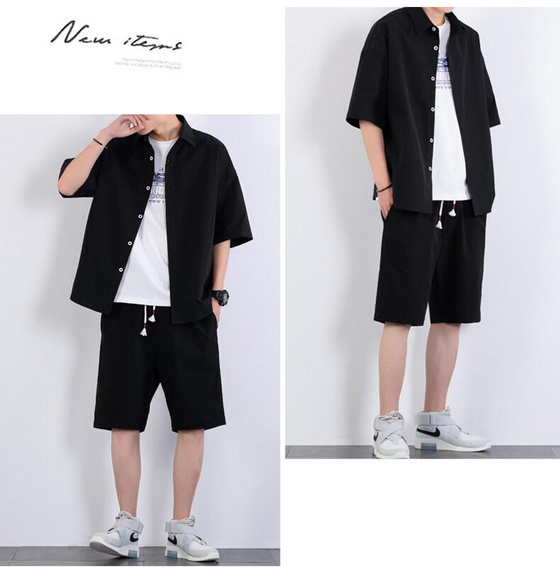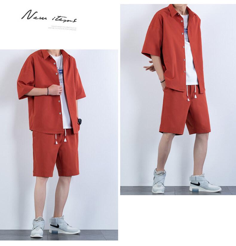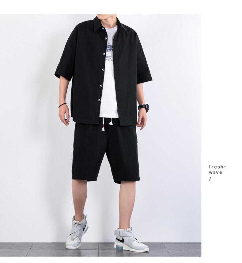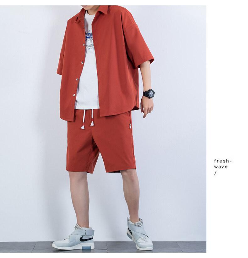 Traje Casual de Verano Nuevo 2025 Camisa Delgada de Moda Color Sólido Holgado de Manga Corta Traje de Shorts Conjunto de Dos Piezas
