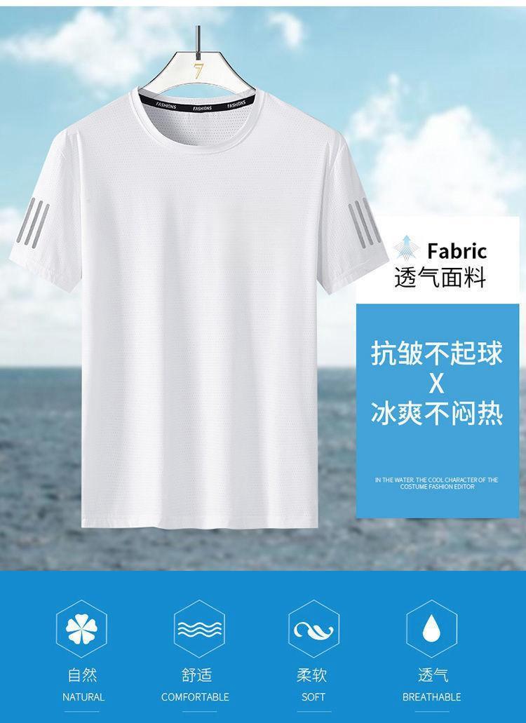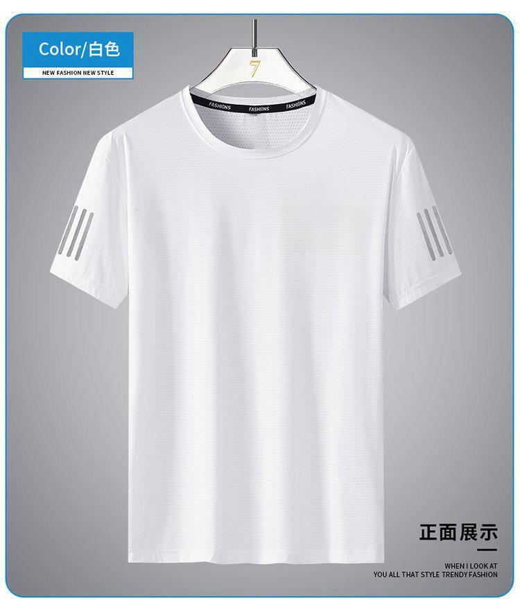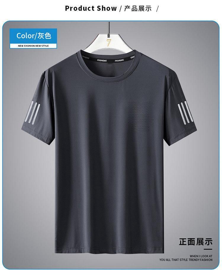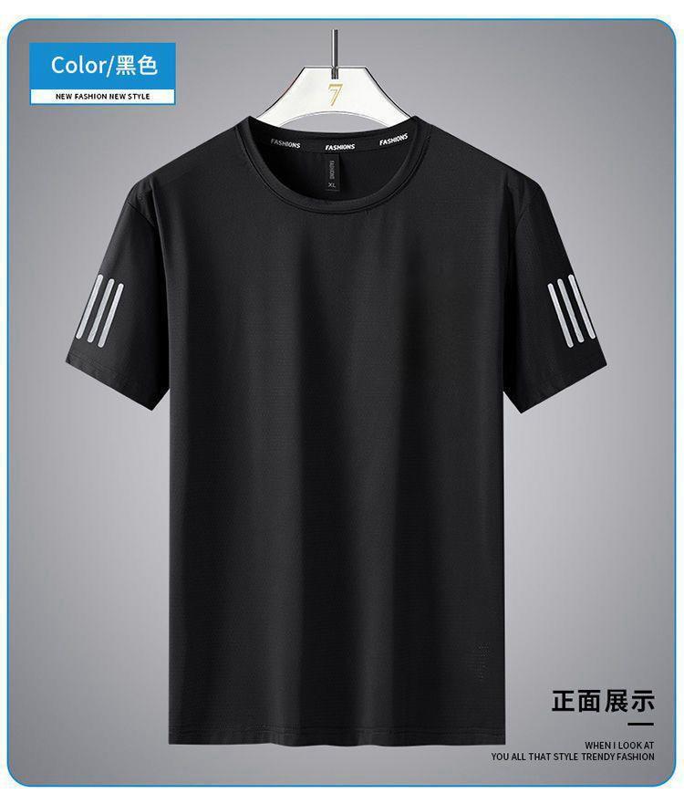 Camiseta de seda de hielo de verano para hombre, cuello redondo, ropa de secado rápido, manga corta, fina, transpirable, media manga, talla grande, top deportivo holgado de moda para hombre