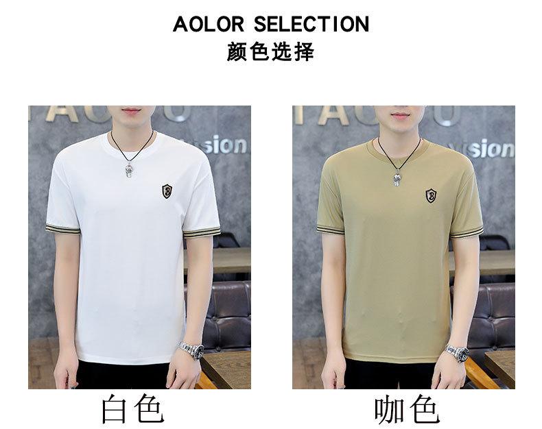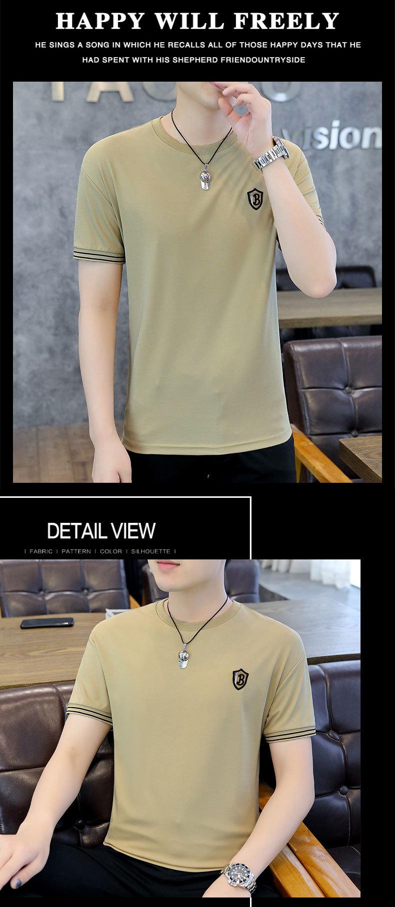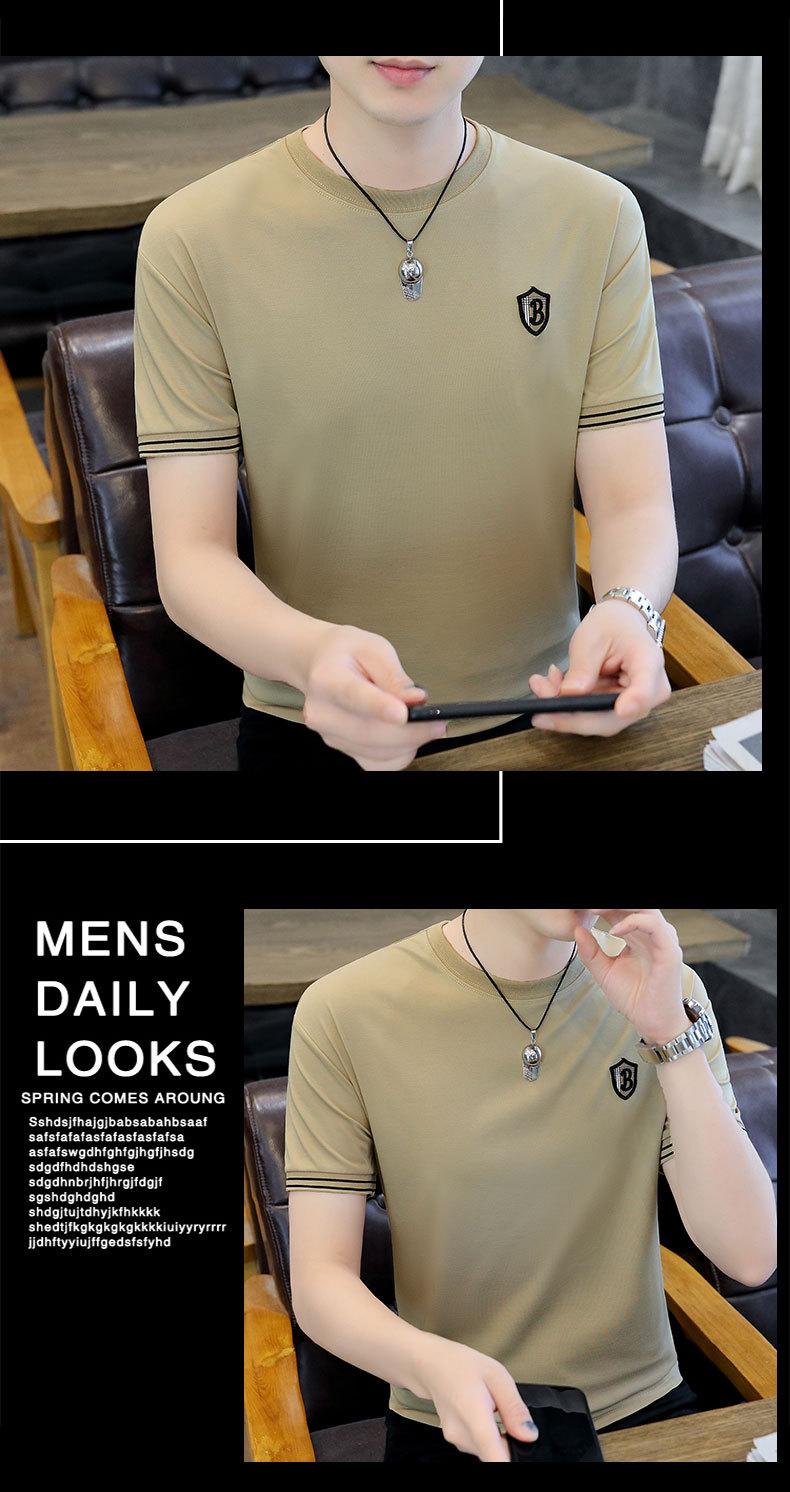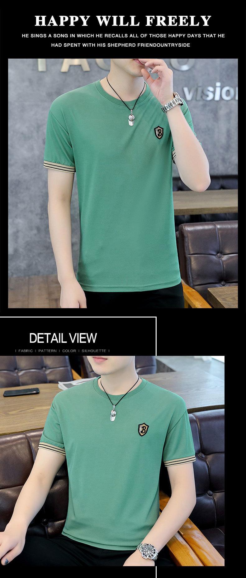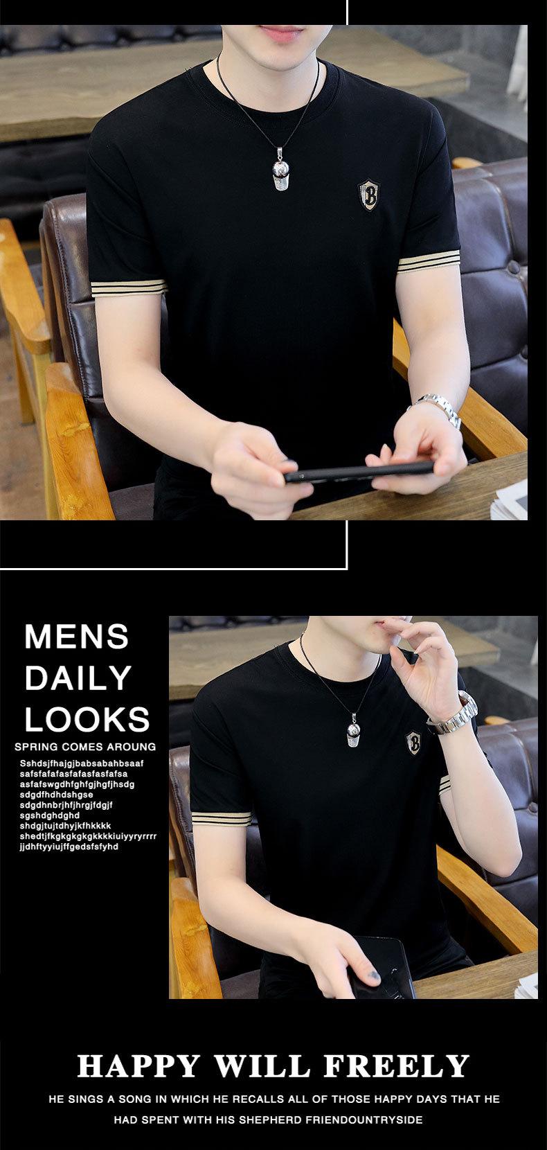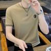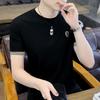 Camiseta de verano 2023 para hombre, fresca, transpirable, ajustada, con cuello redondo, bordada, fina, de manga corta.