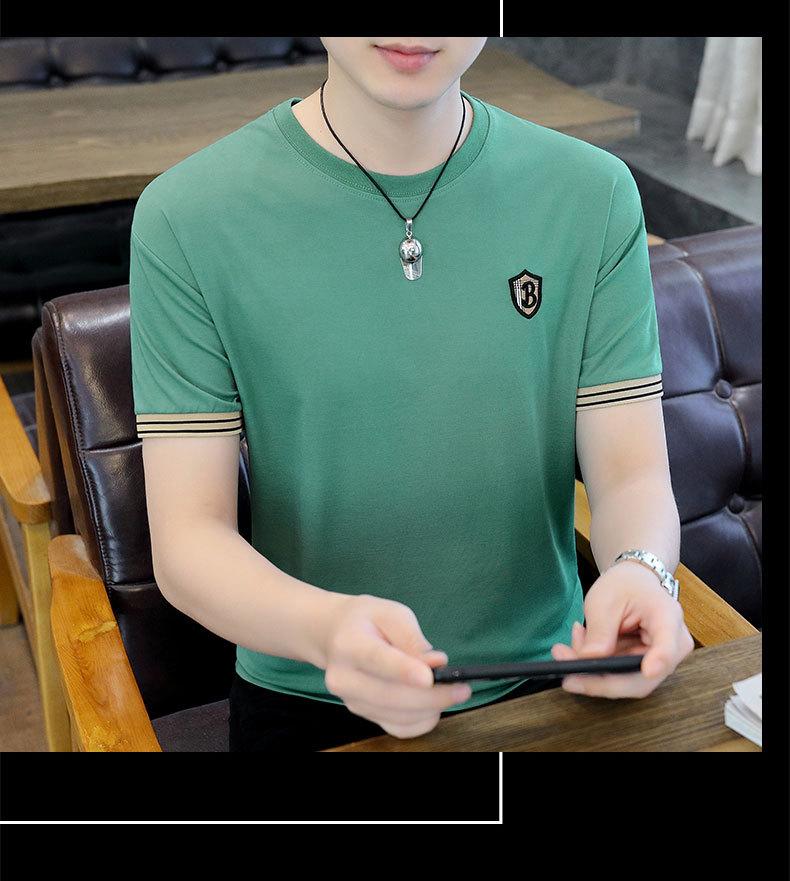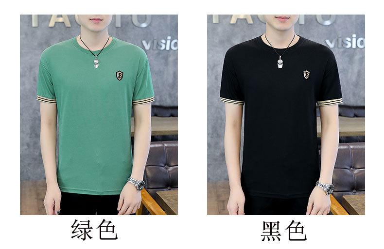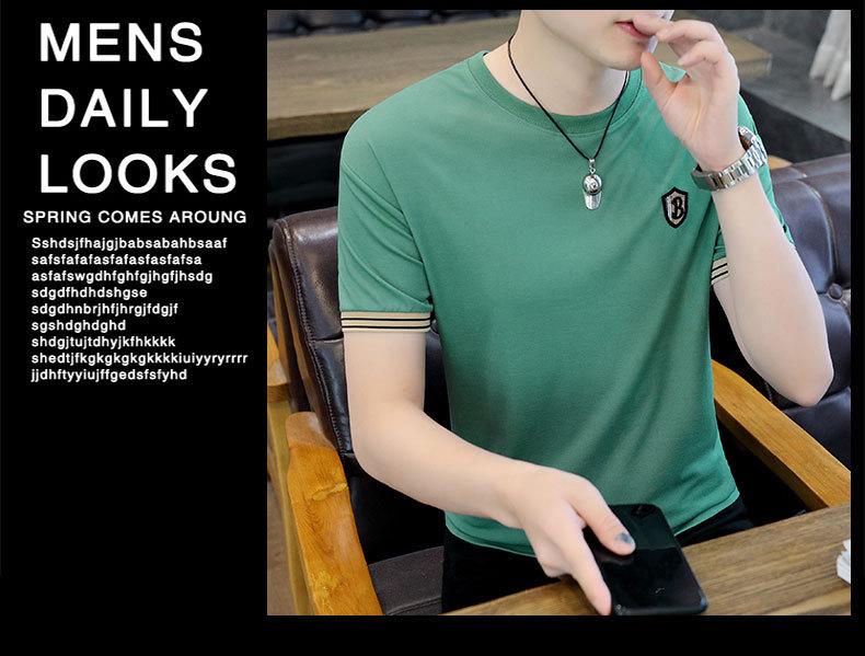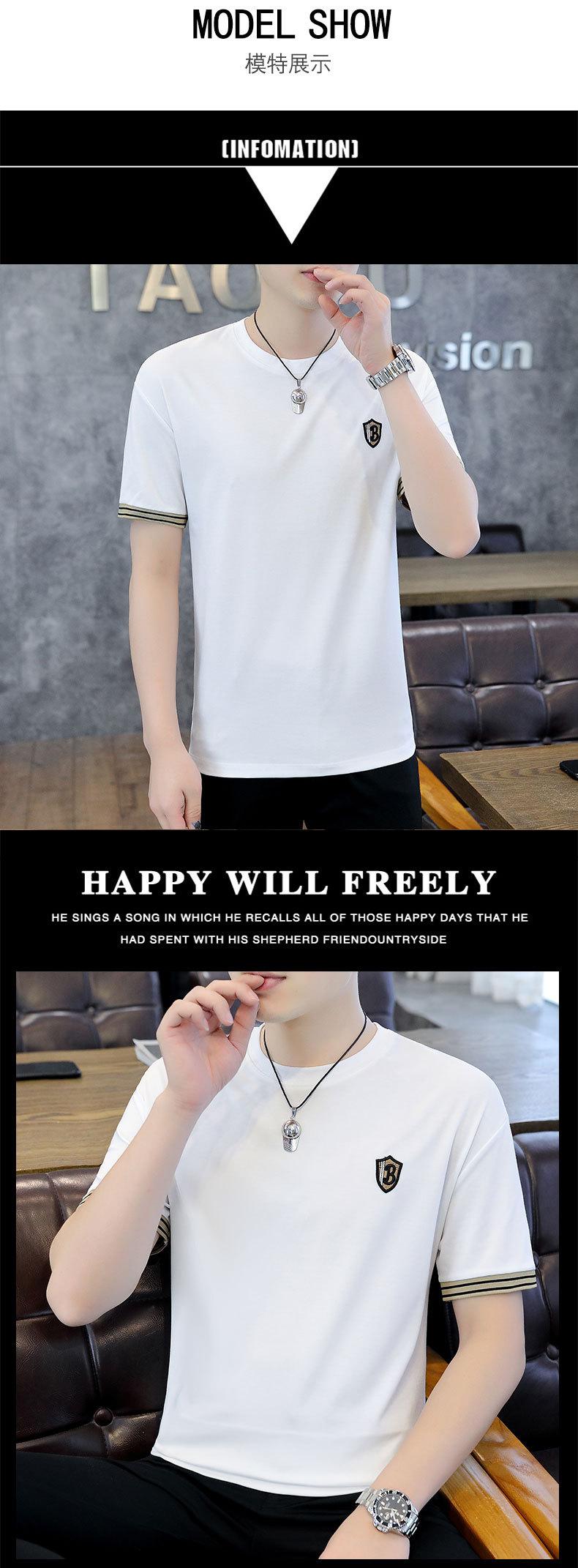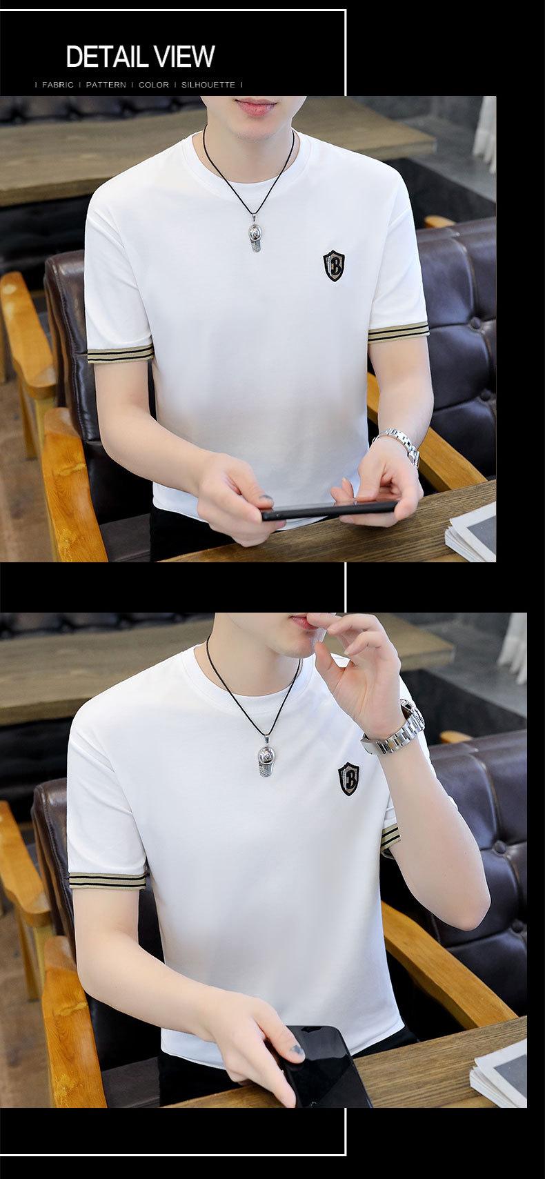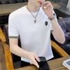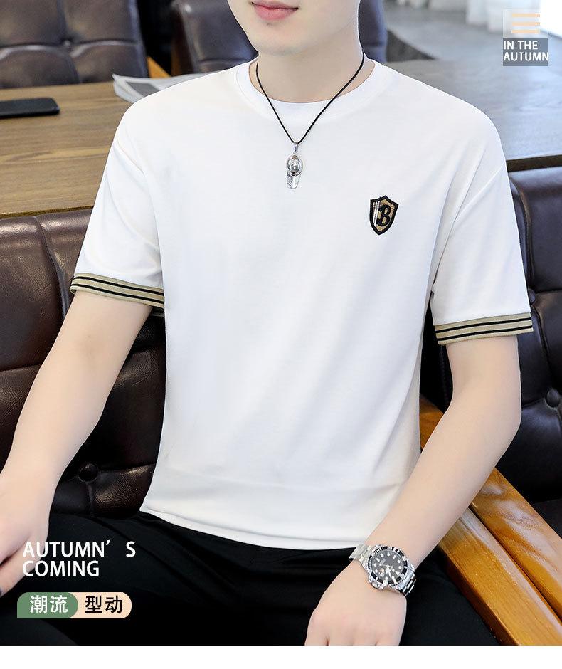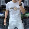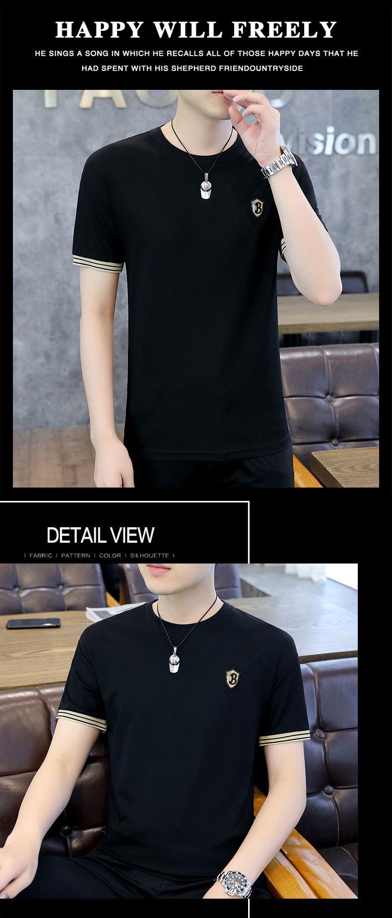 Camiseta de verano 2023 para hombre, fresca, transpirable, ajustada, con cuello redondo, bordada, fina, de manga corta.