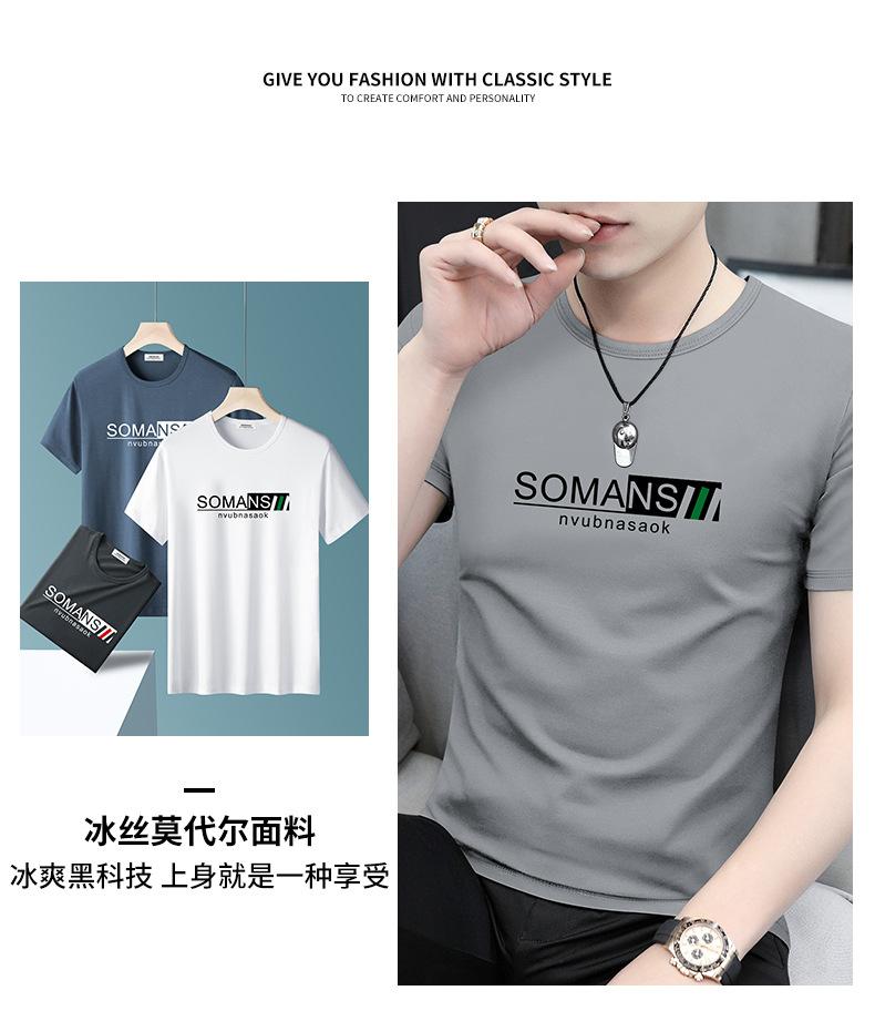 Camiseta de Manga Corta de Modal Seda de Hielo para Hombre Joven Verano 2025 Nuevo Cuello Redondo Casual de Alta Gama Camiseta de Secado Rápido