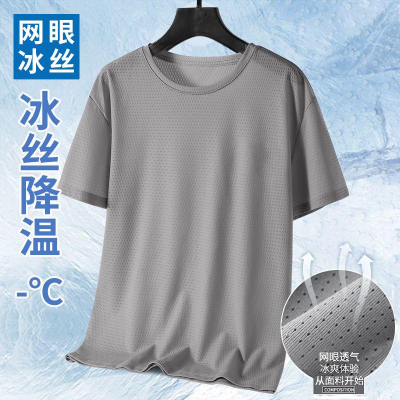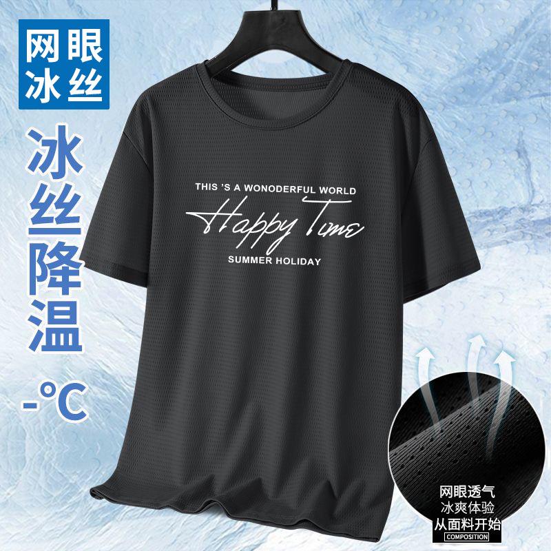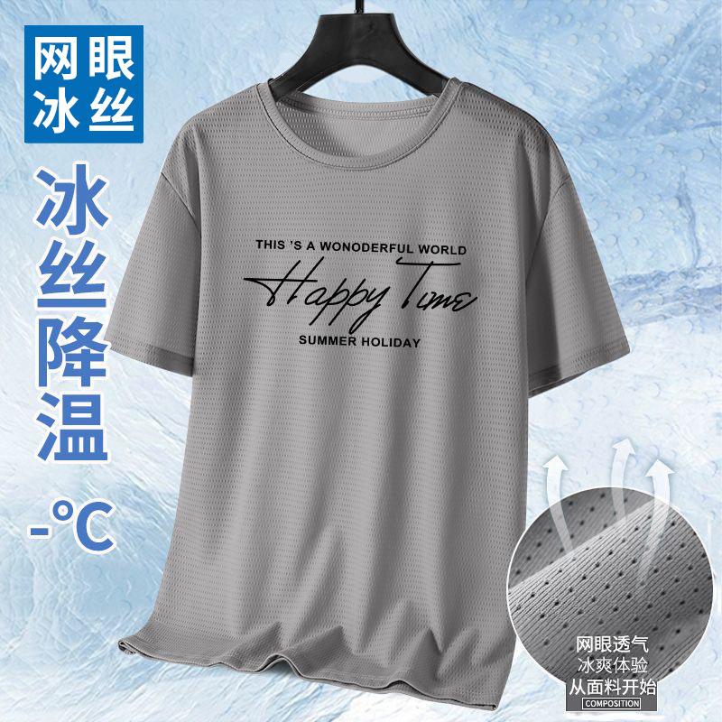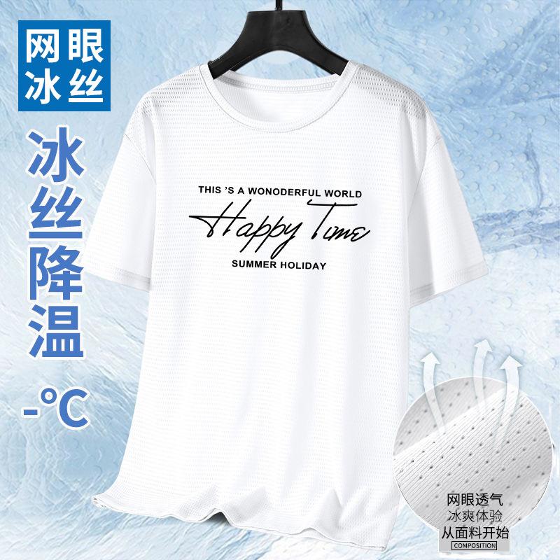 Camiseta de Malla de Seda de Hielo de Verano 2025 Estampada Slim Delgada Cuello Redondo Secado Rápido Manga Corta Camiseta Estilo Deportivo para Hombre Tendencia