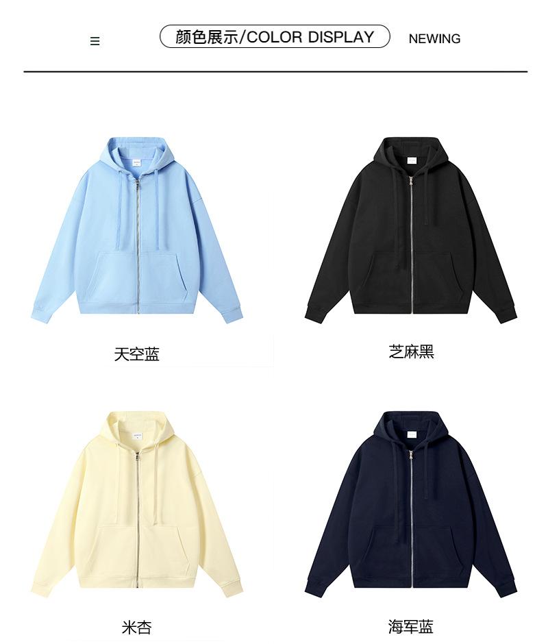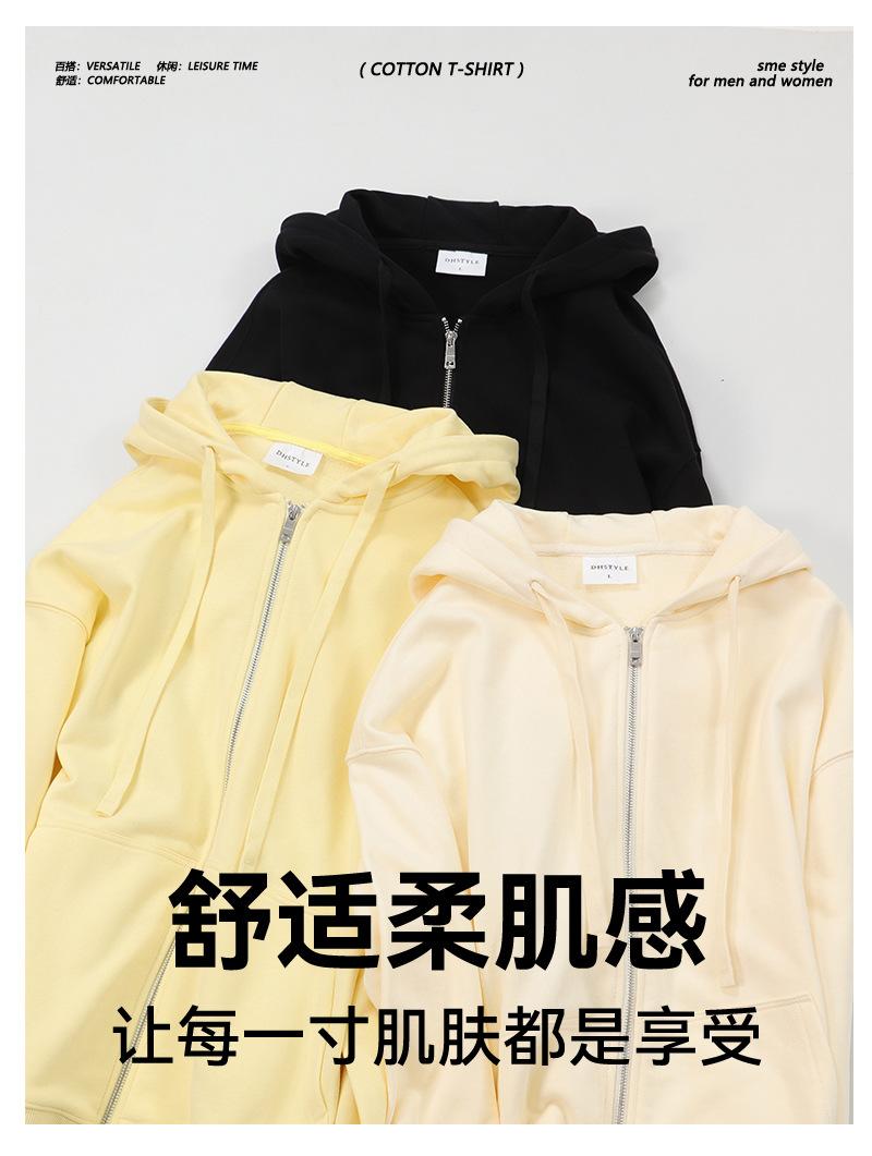 Suéter con capucha y cremallera de algodón peinado de 380 g de marca de moda estadounidense para hombre y mujer, abrigo tipo cárdigan de felpa grande con hombros caídos y holgado para otoño e invierno.