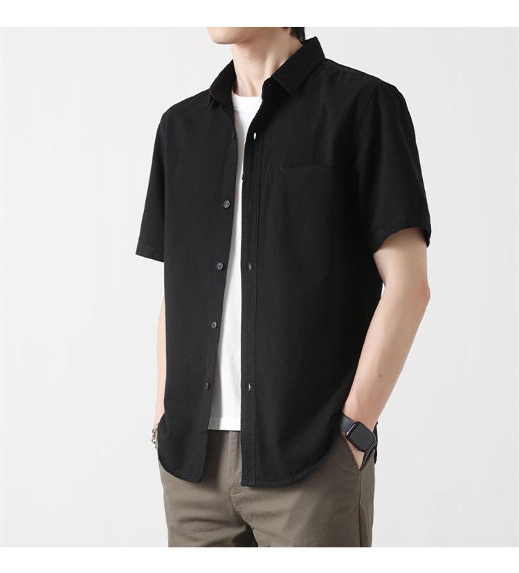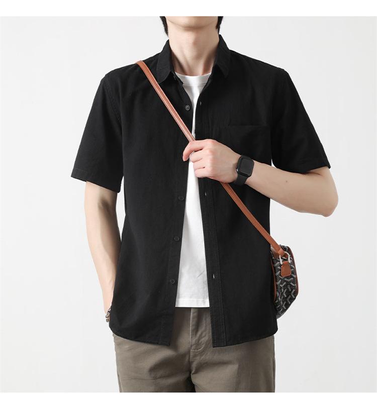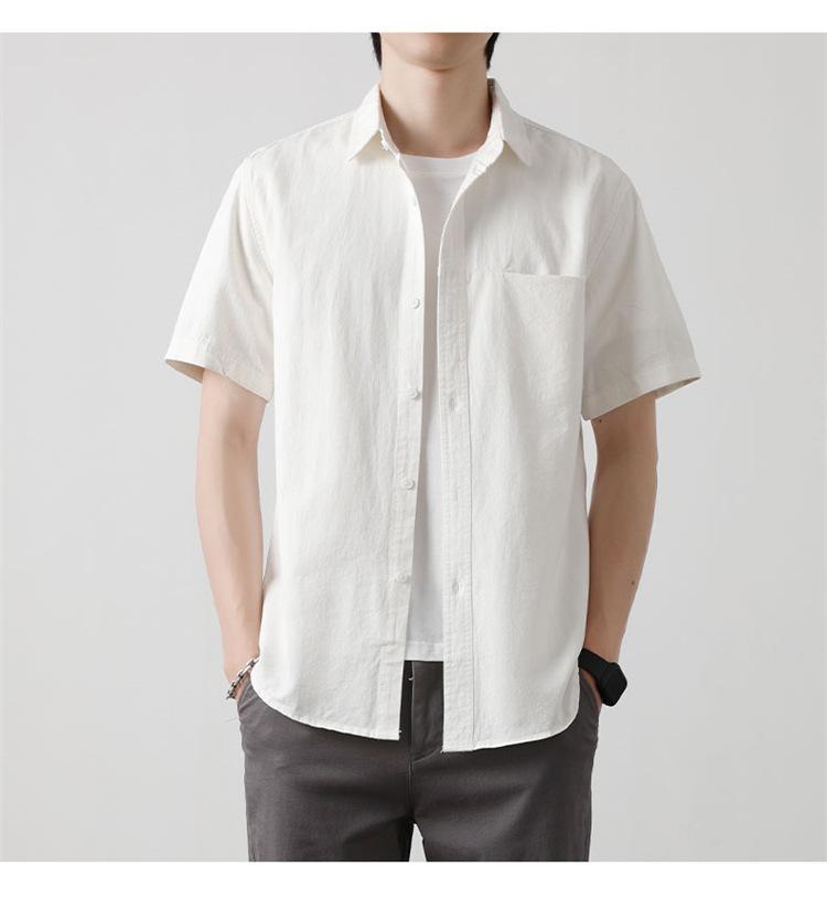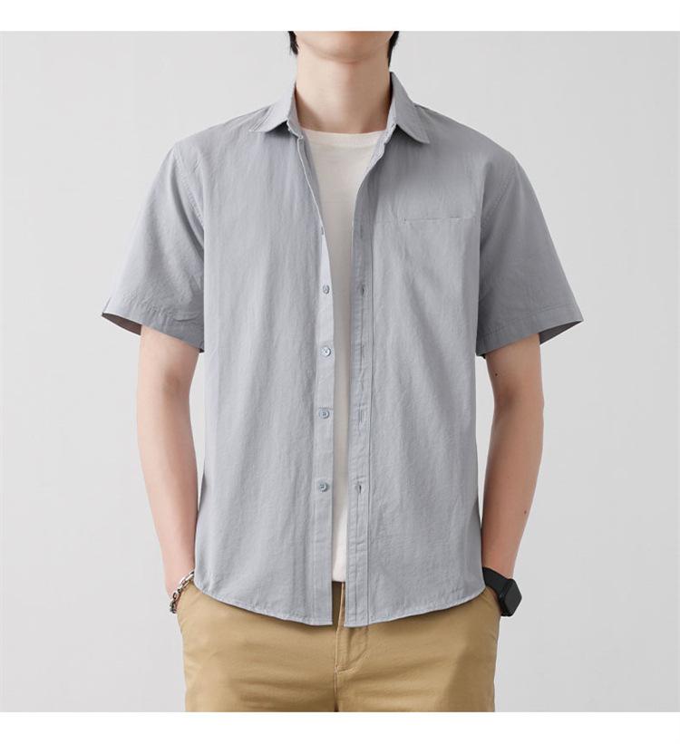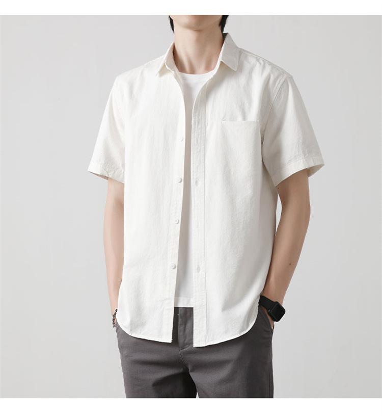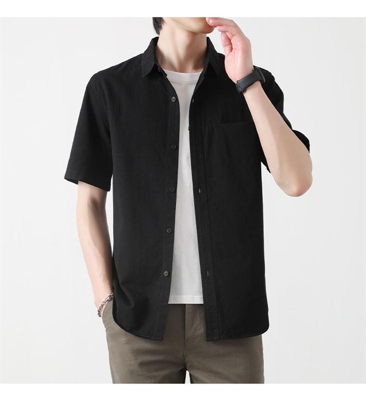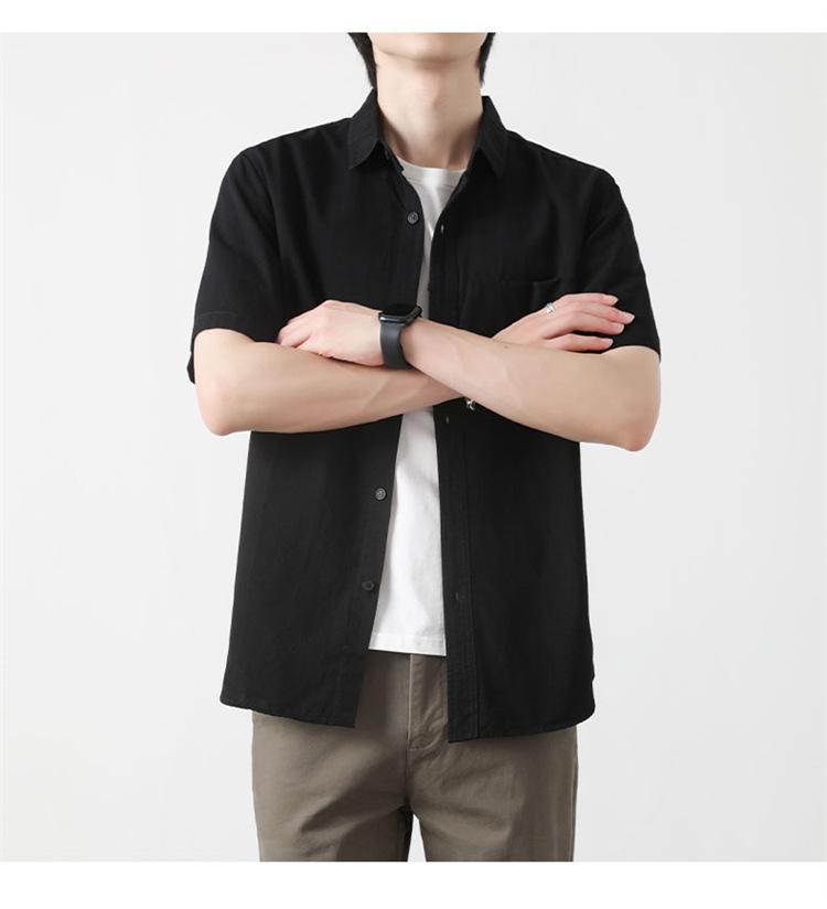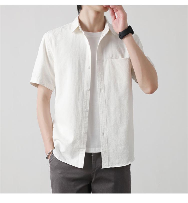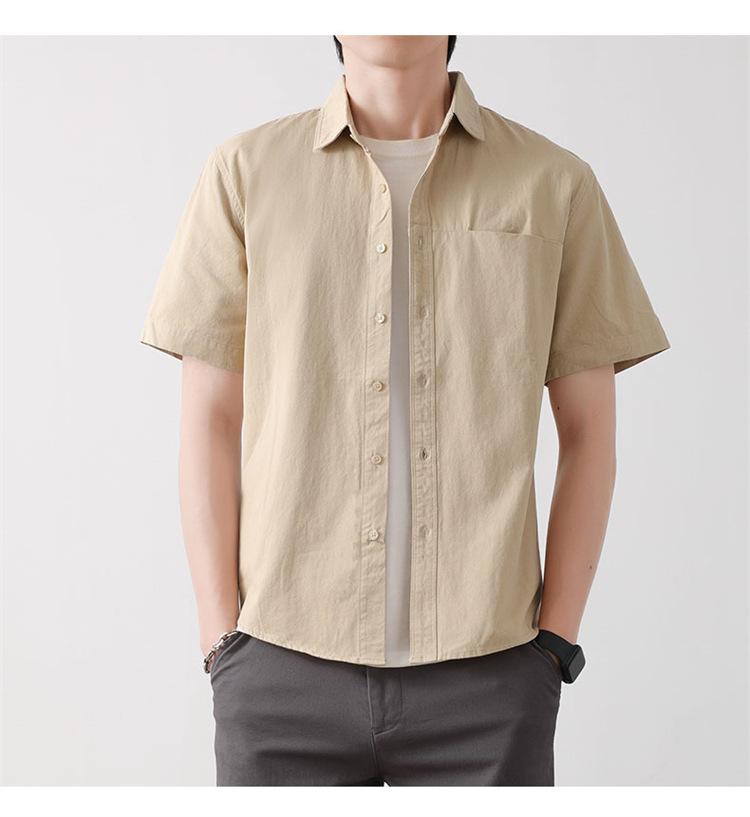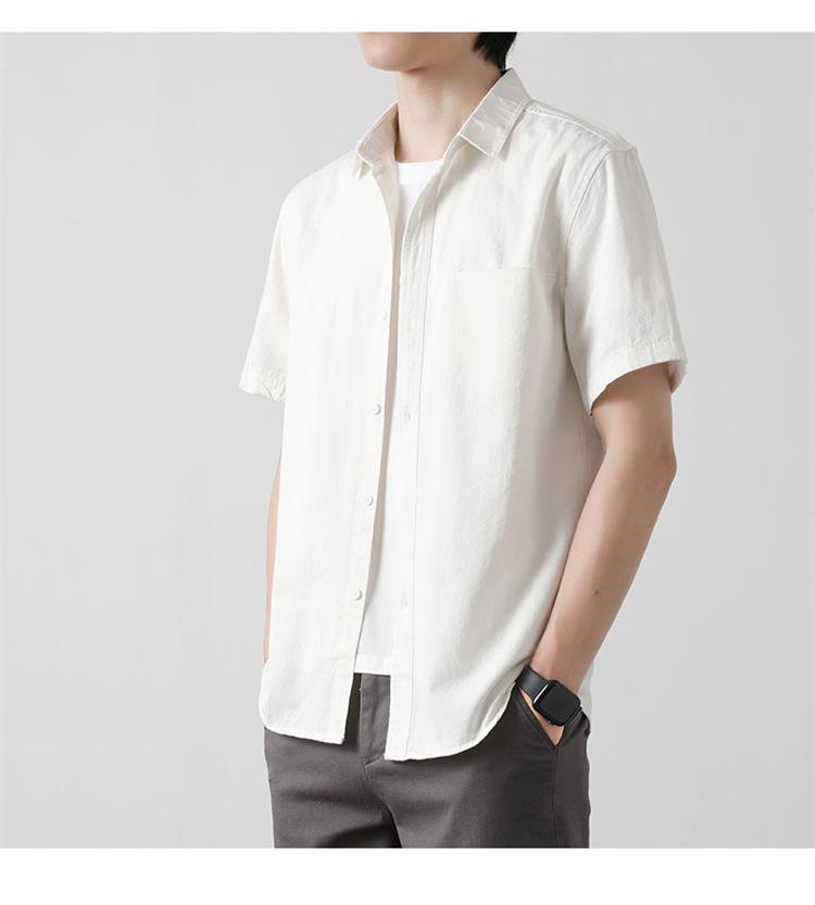 Camisa de algodón de manga corta para hombre, de verano, con solapa sencilla, ajustada, informal, combinable, de color liso.