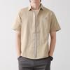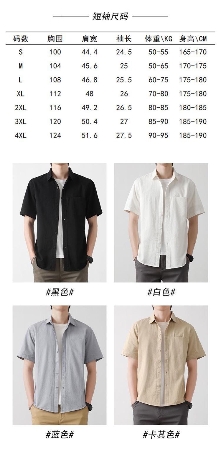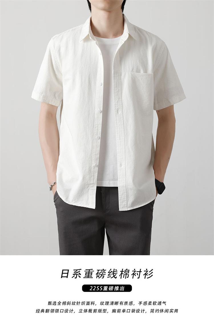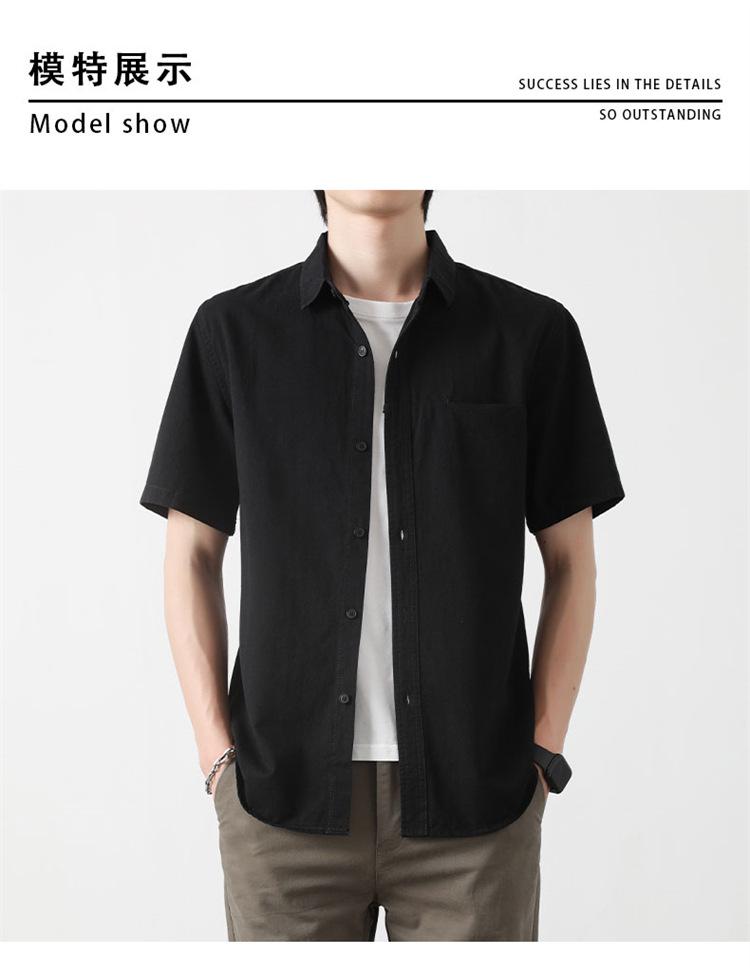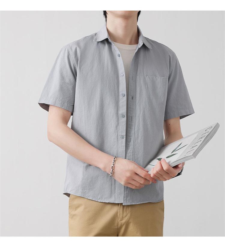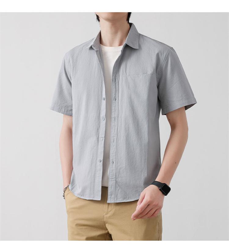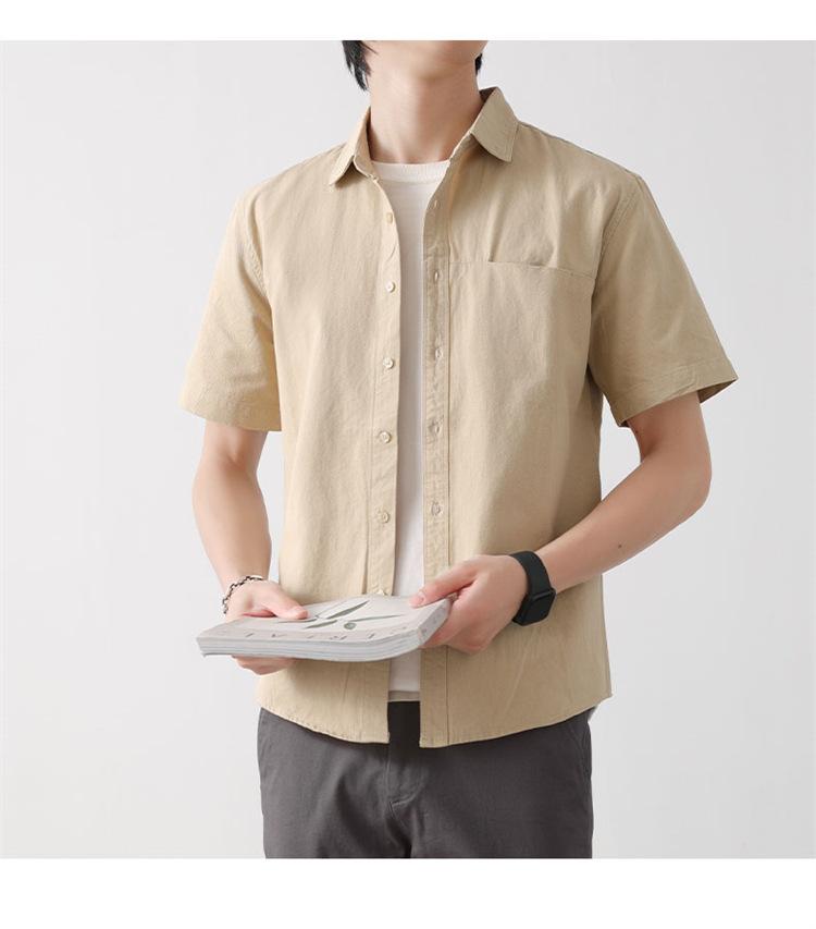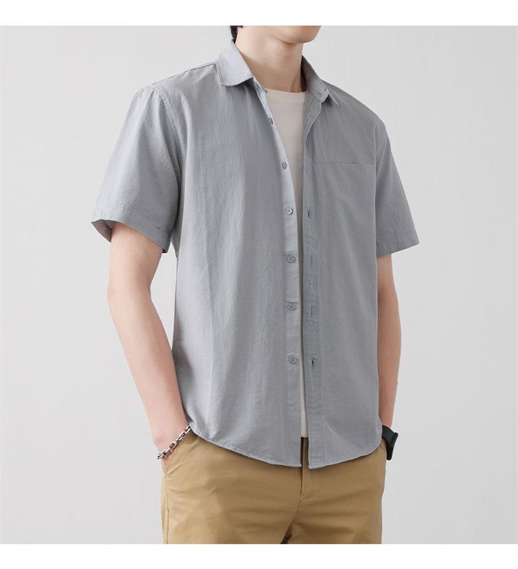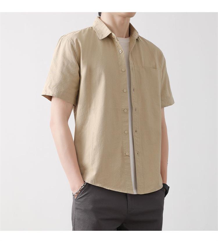 Camisa de algodón de manga corta para hombre, de verano, con solapa sencilla, ajustada, informal, combinable, de color liso.
