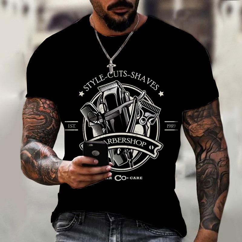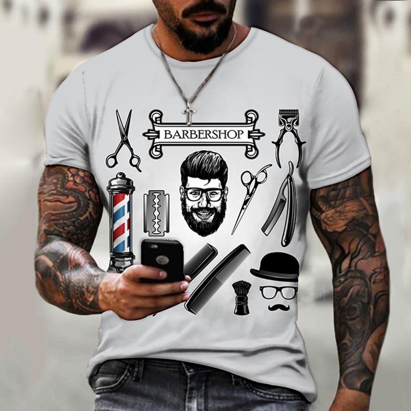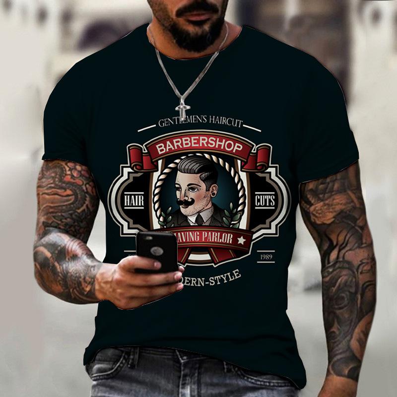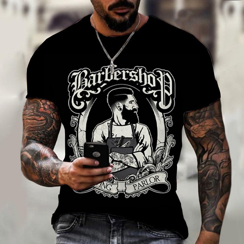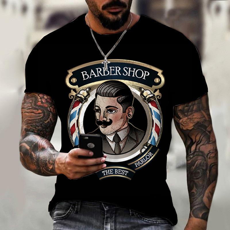 Moda 2022 Caliente Retro Pintado a Mano Logotipo Barbería Impresión 3D Camiseta Casual Suelta Transfronterizo Ropa de Hombre