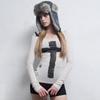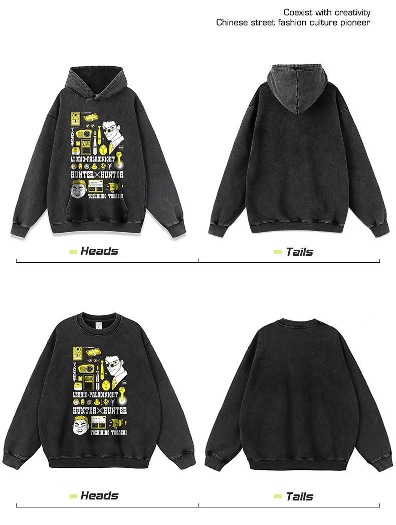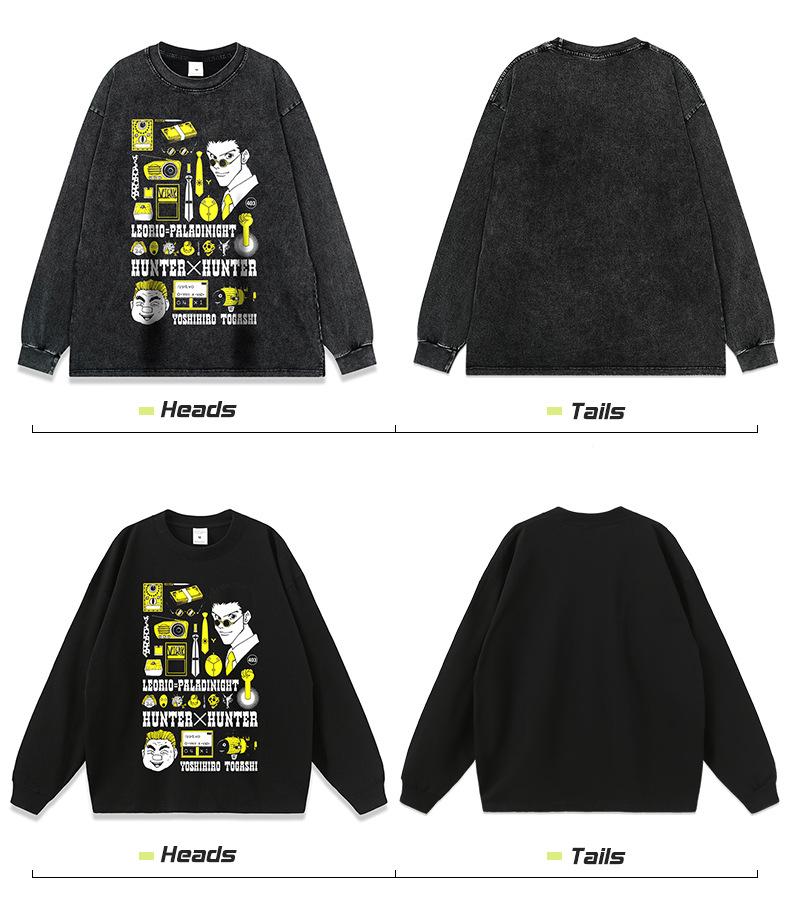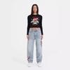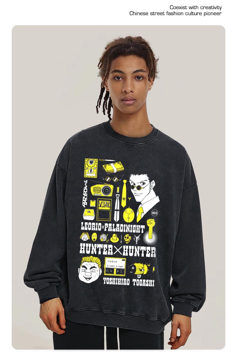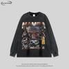 Suéter de manga larga con estampado de dibujos animados retro de calle principal estadounidense, lavado pesado, escote pequeño, desgastado, marca de moda, cuello redondo, top