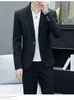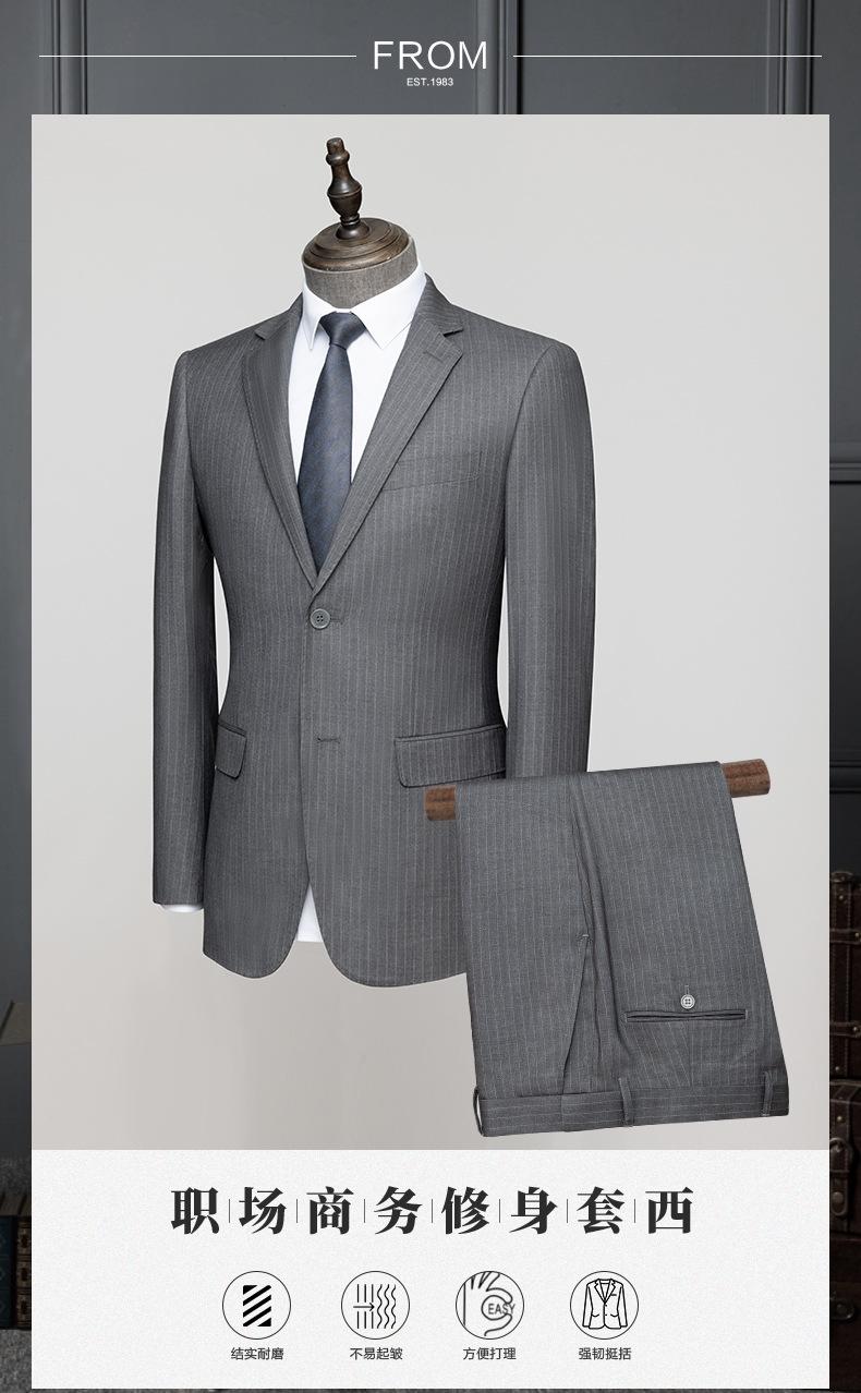Traje para hombre Chaqueta casual de alta gama Rayado Negocios Profesional Vestido Traje gris Pantalones Traje completo para hombre