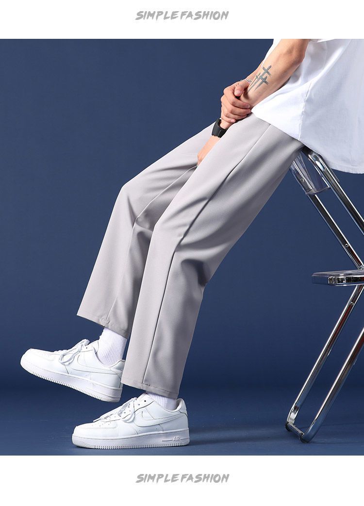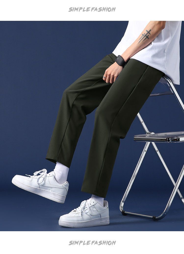 Pantalones rectos de primavera y otoño para hombre, pantalones holgados hasta el tobillo de moda para hombre, pantalones casuales de verano para estudiantes, pantalones anchos de pierna