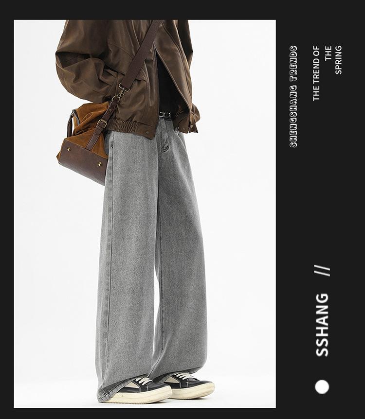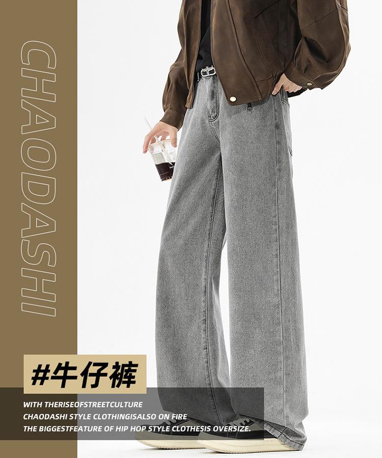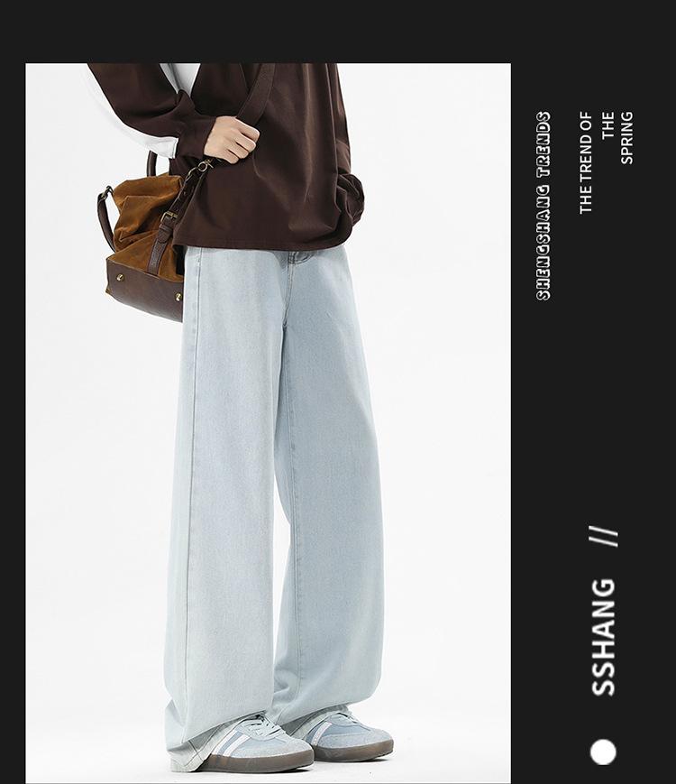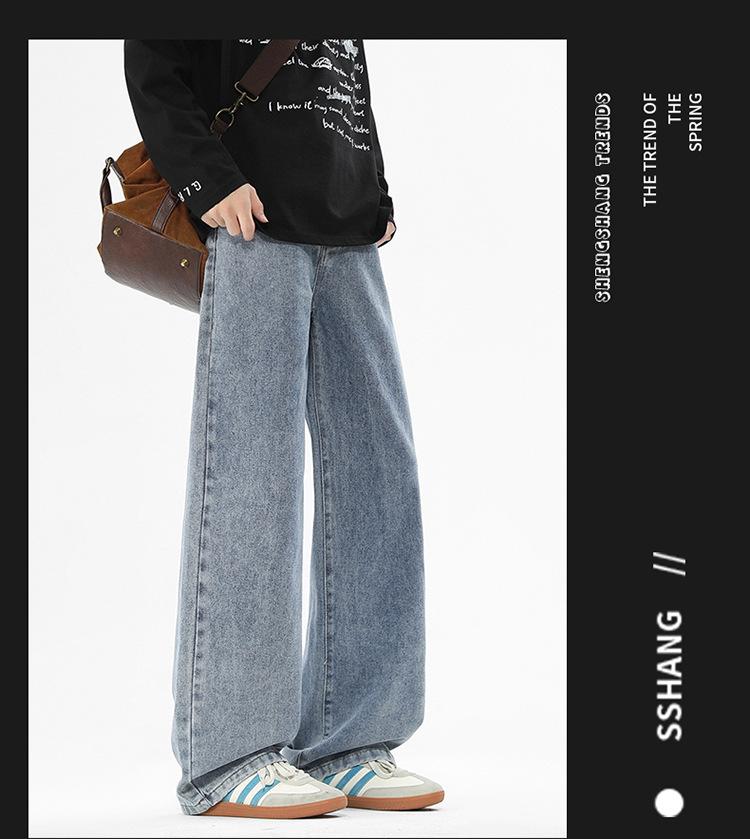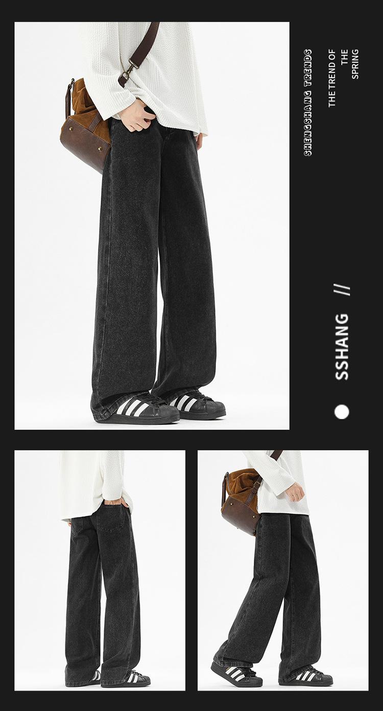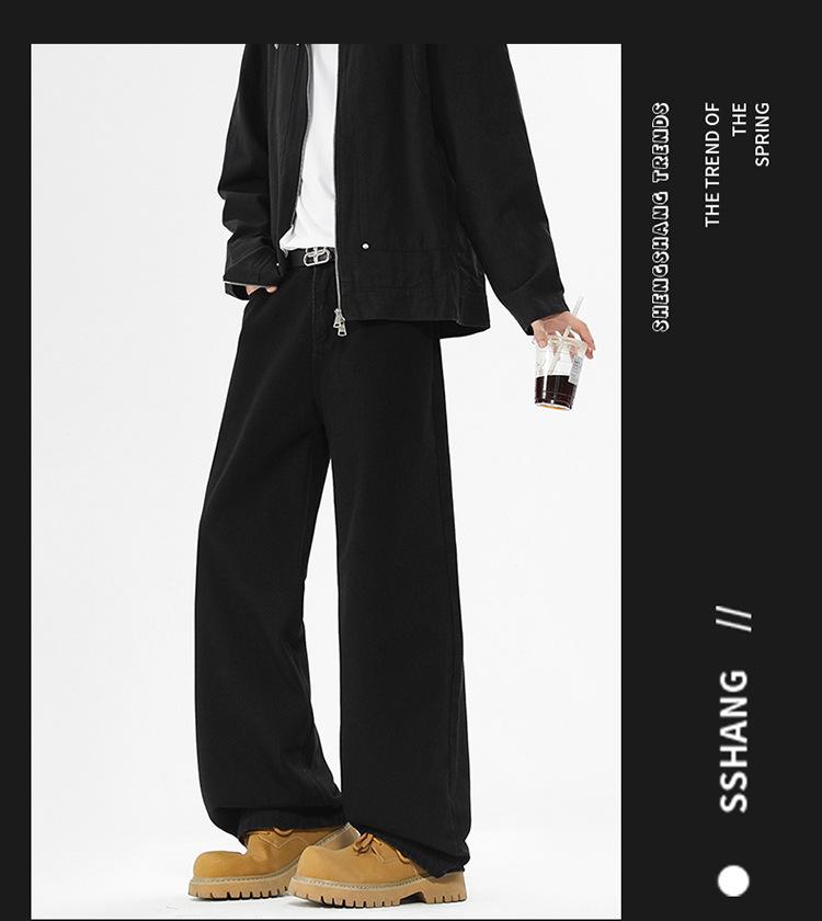 Ropa para Hombre Acu | Jeans Holgados de Pierna Ancha Lavados Retro con Cinturón Color Sólido Otoño e Invierno Moderno Calle Pantalones Rectos