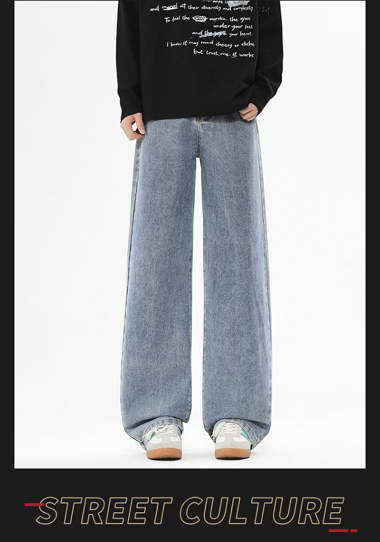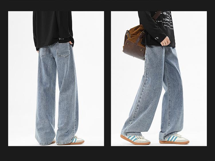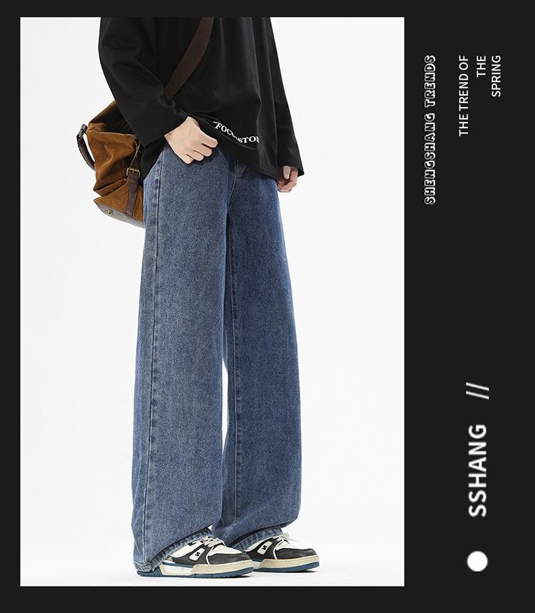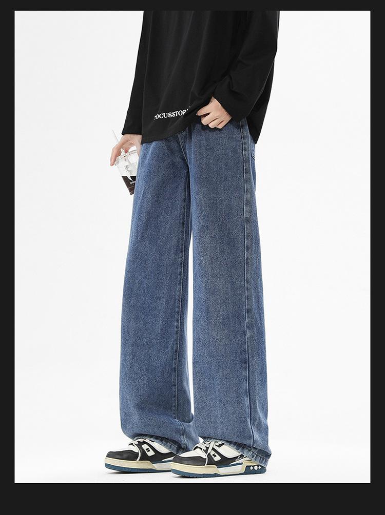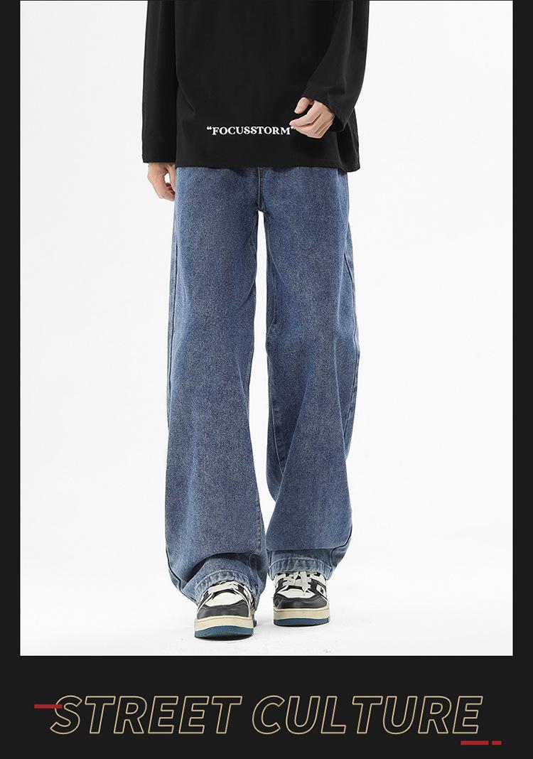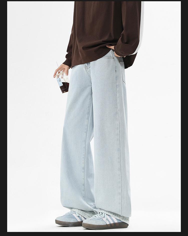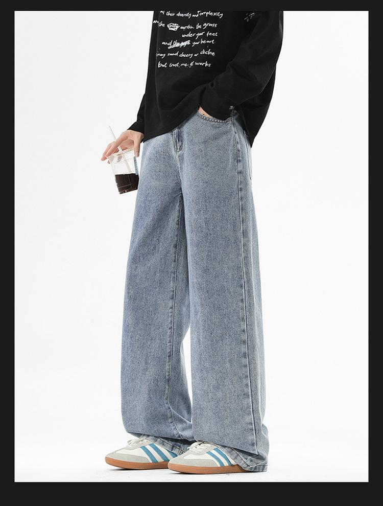 Ropa para Hombre Acu | Jeans Holgados de Pierna Ancha Lavados Retro con Cinturón Color Sólido Otoño e Invierno Moderno Calle Pantalones Rectos