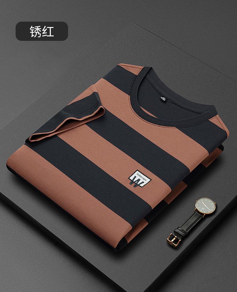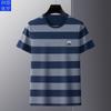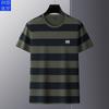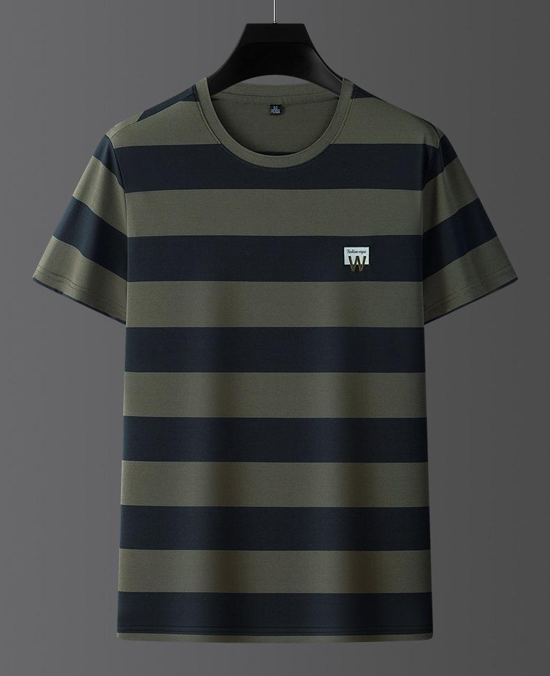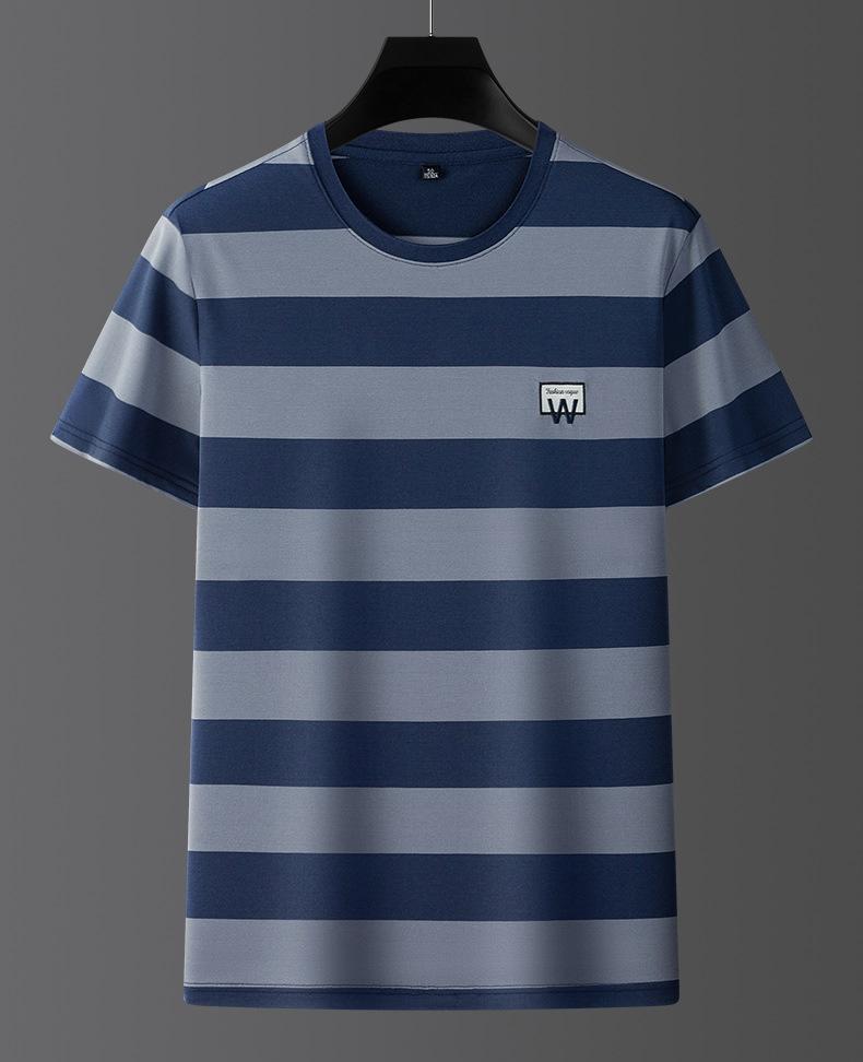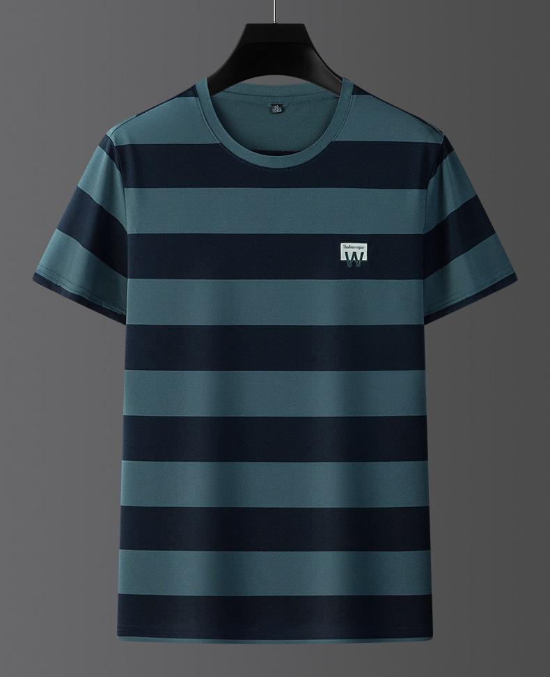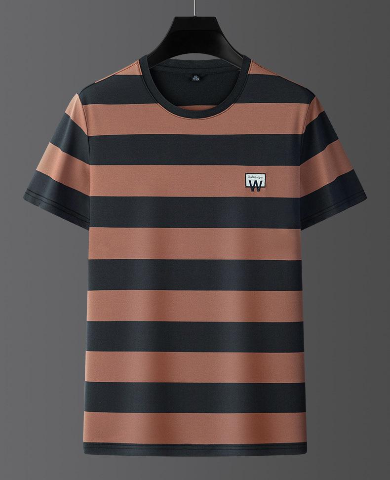 Camisa de hombre a rayas teñida en hilo Runnboro, camiseta de algodón de manga corta, prenda superior bordada, camiseta