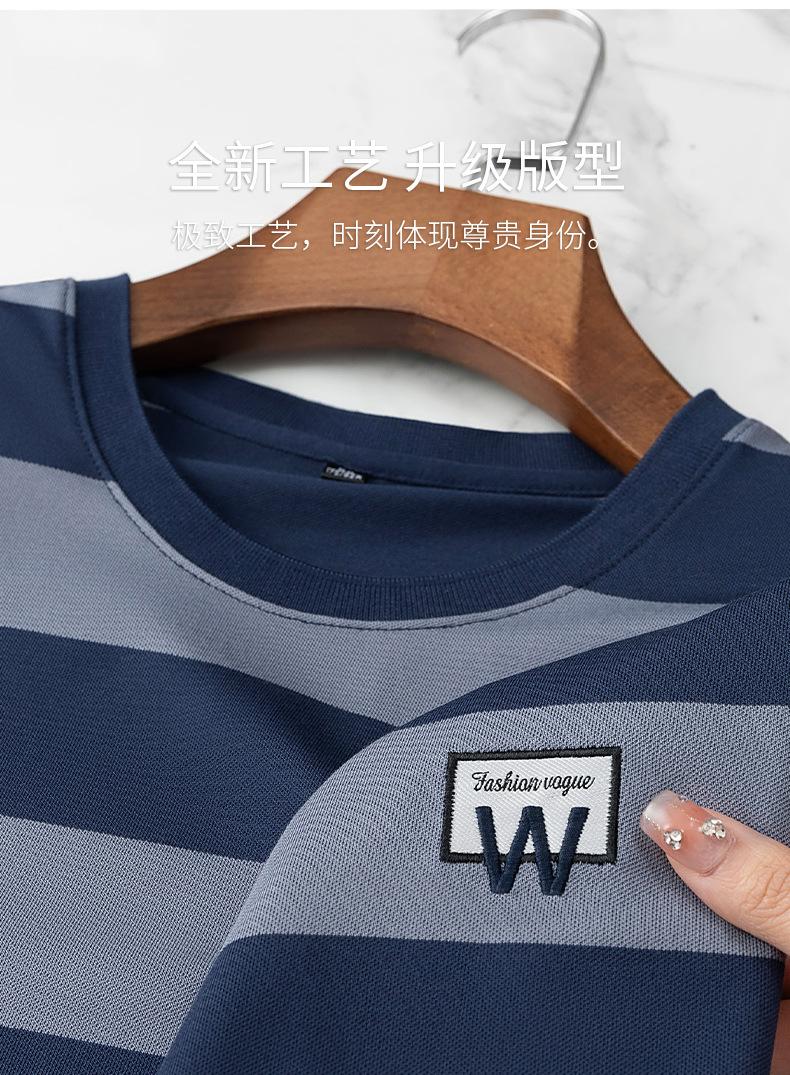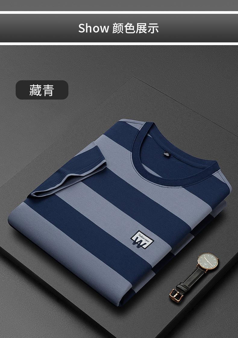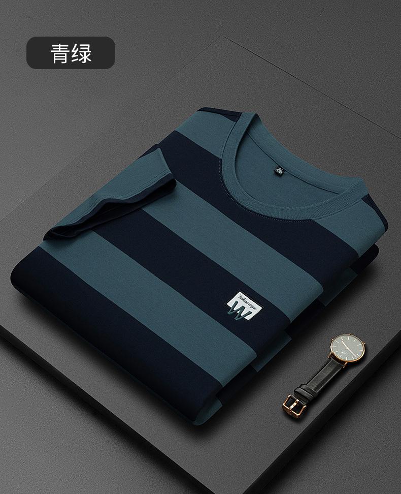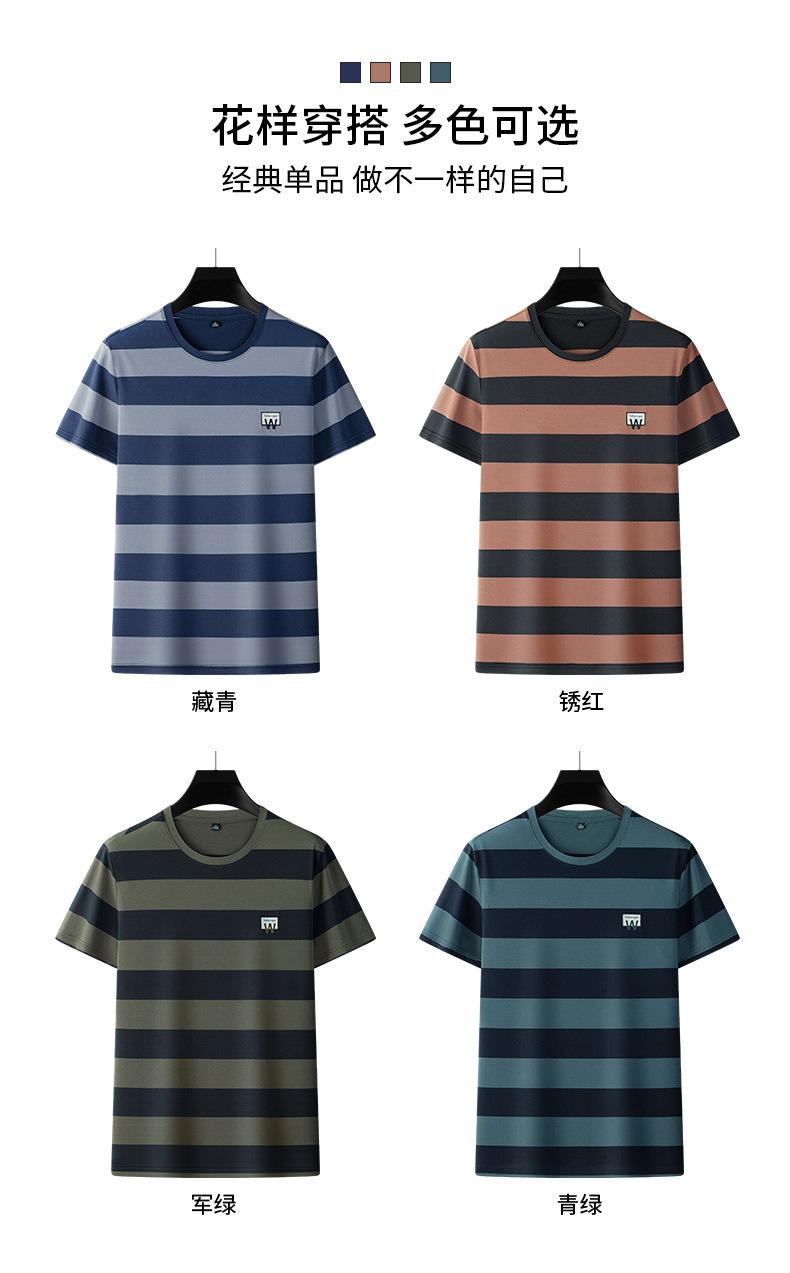 Camisa de hombre a rayas teñida en hilo Runnboro, camiseta de algodón de manga corta, prenda superior bordada, camiseta