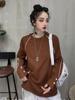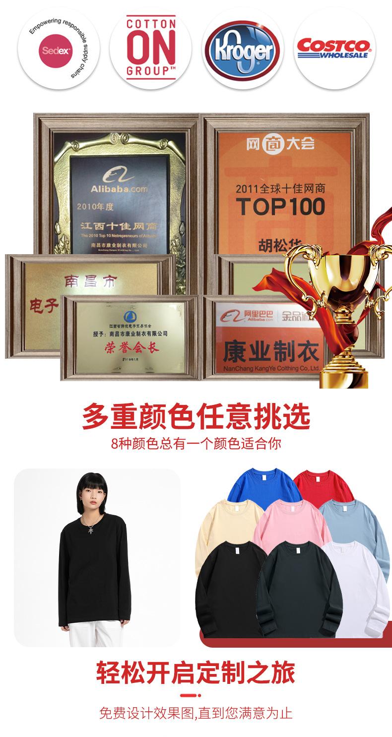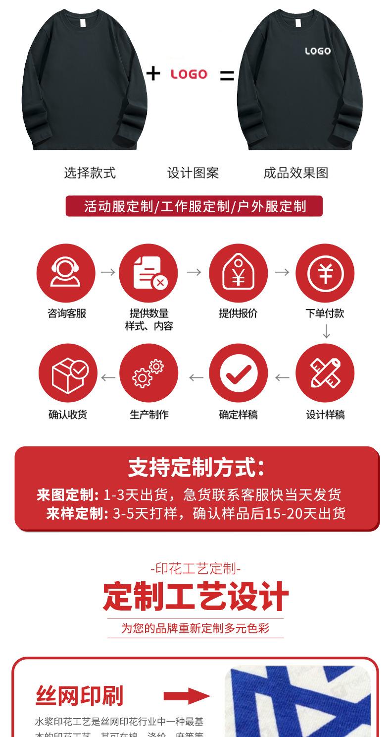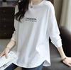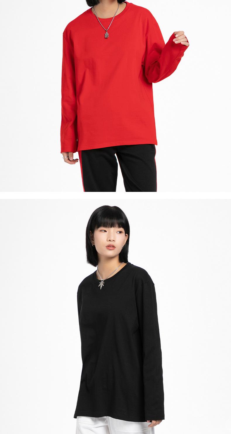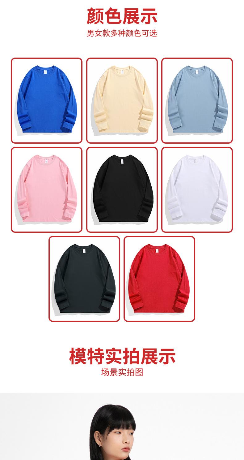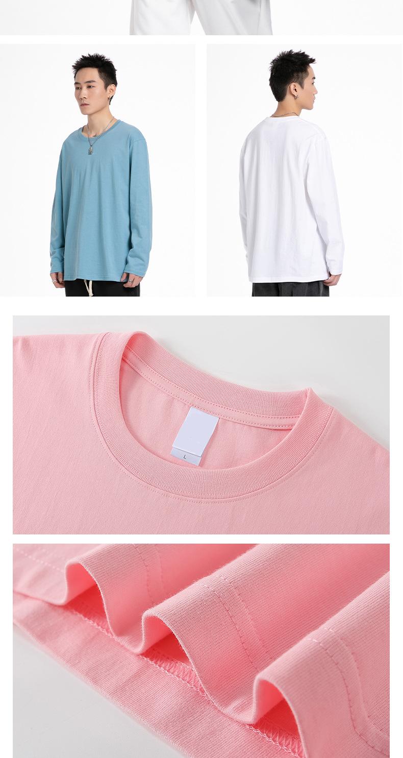 Camiseta de manga larga con cuello redondo de primavera y otoño, 220 g de algodón peinado, suelta, de color liso, informal, versátil, con imagen impresa personalizada.
