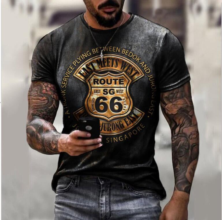 Amazon Más Vendido Tops Casuales para Hombre Creativos y Modernos Estampado Digital 3D Cuello Redondo Jersey Manga Corta Venta al por Mayor