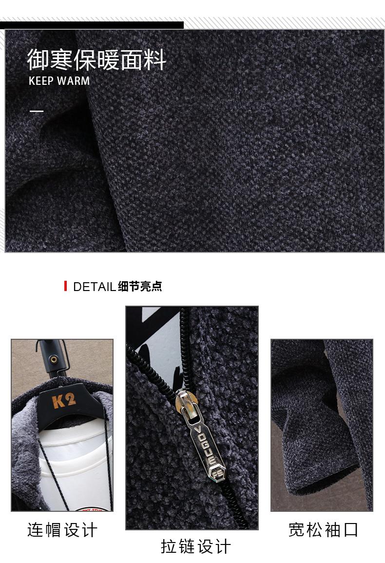 Venta al por mayor de otoño e invierno, suéter con capucha de moda informal y acolchado de terciopelo para hombre, cárdigan de lana para hombre