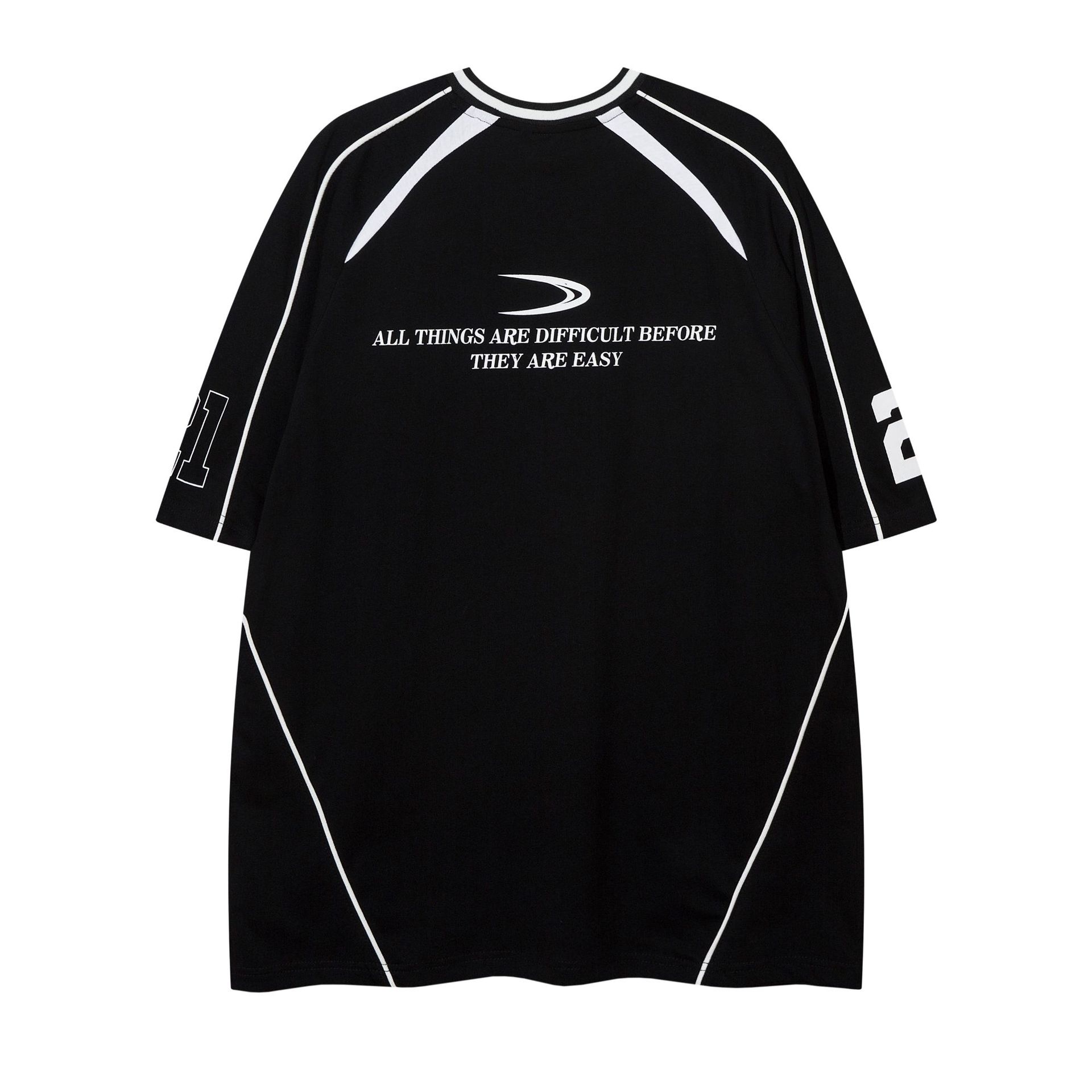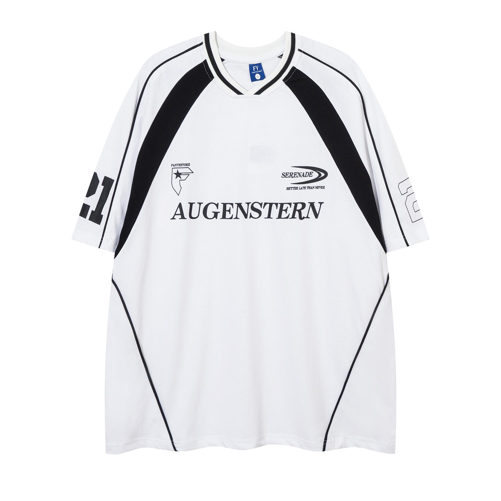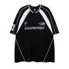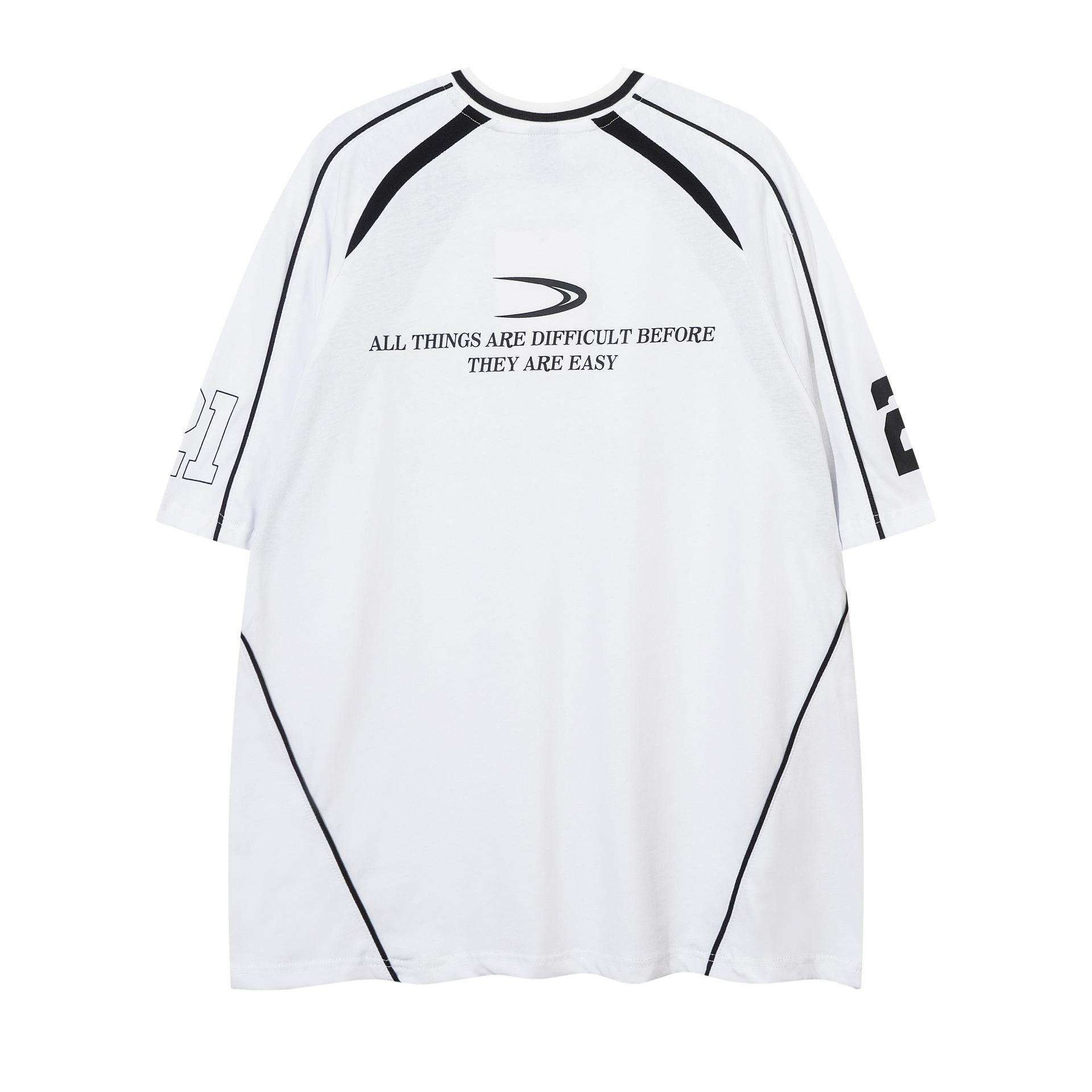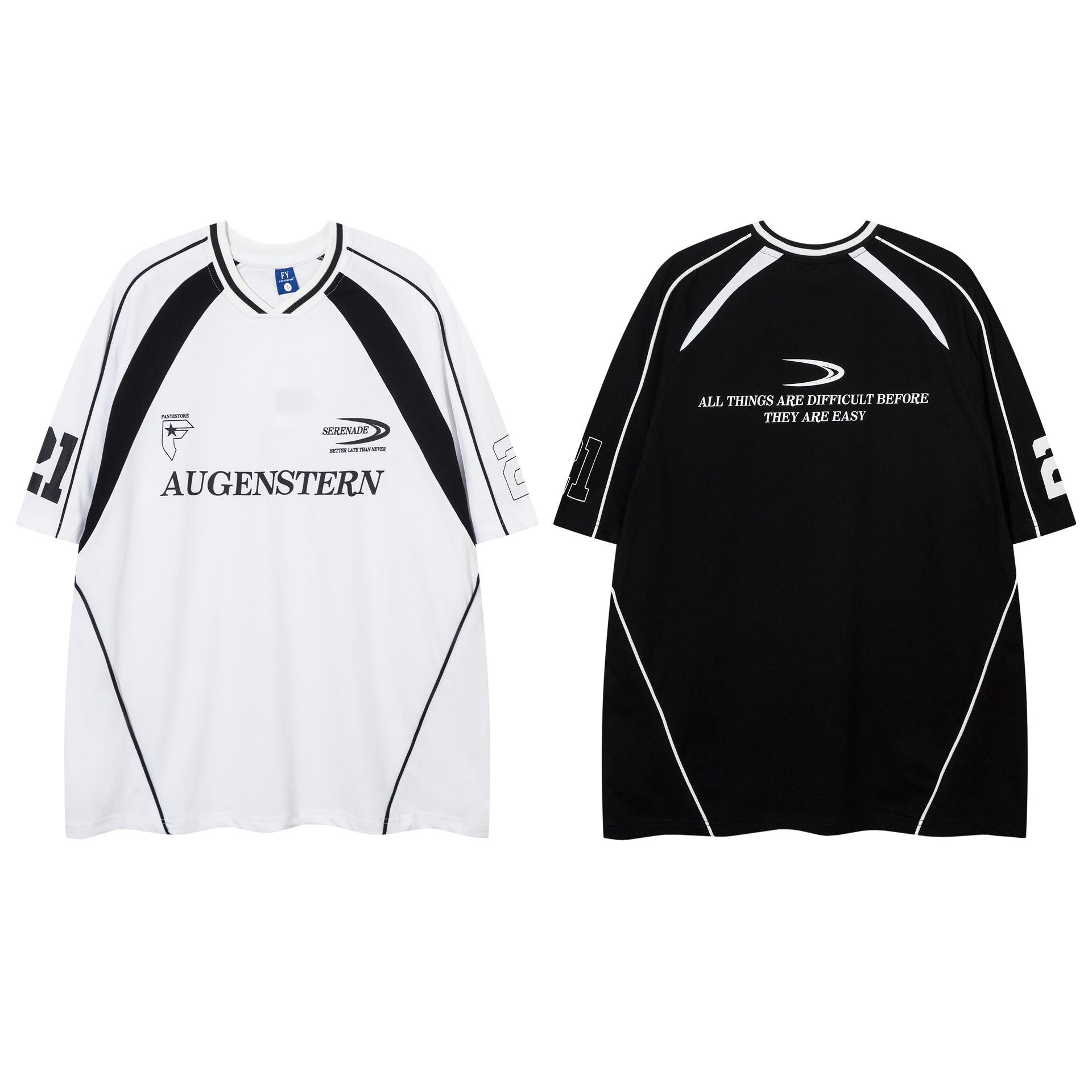 Camiseta de manga corta estilo motociclista moda americana color contrastante Raglán Juvenil holgada corta t para pareja hombres y mujeres manga media top