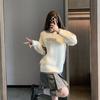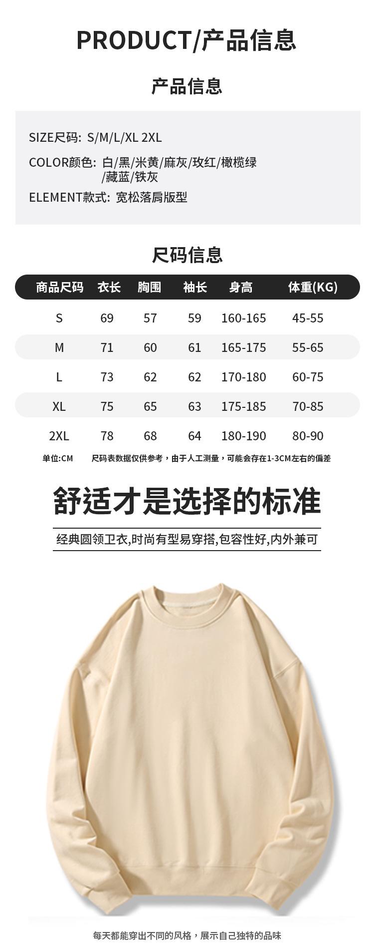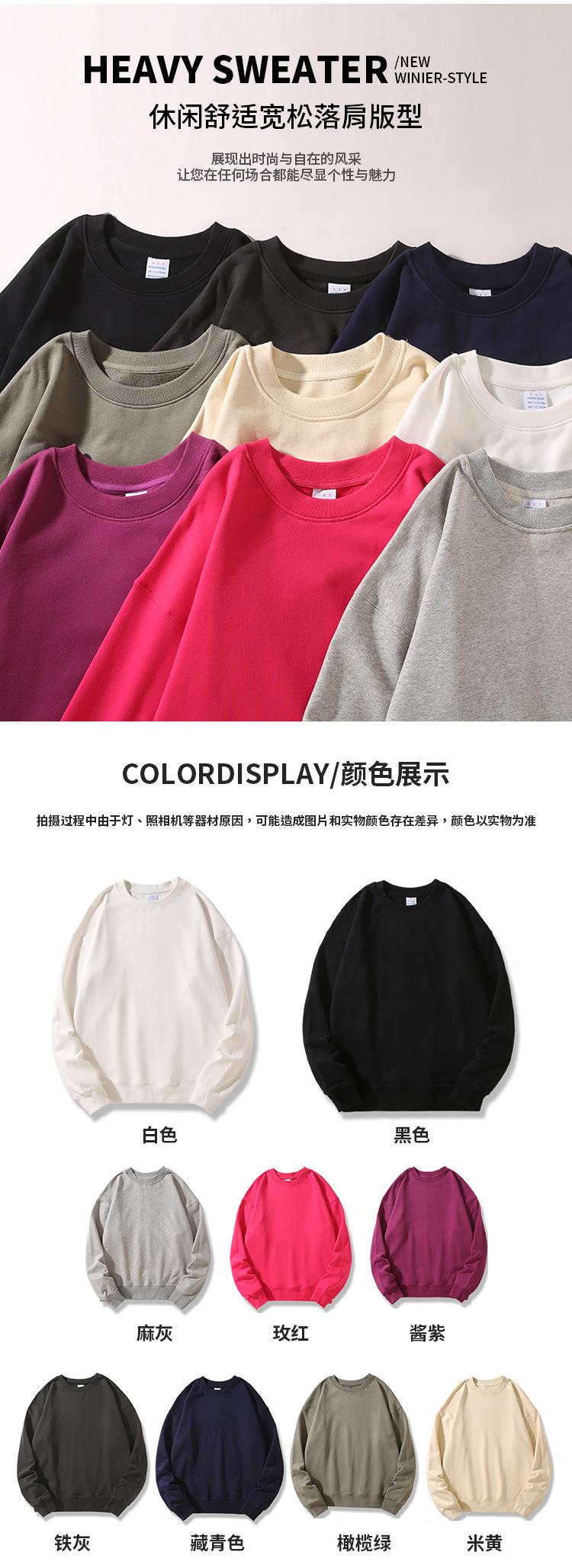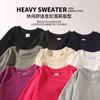 Suéter de algodón pesado de 420g con cuello redondo para otoño e invierno para hombre y mujer, grueso, holgado, casual, de manga larga, color sólido, top interior