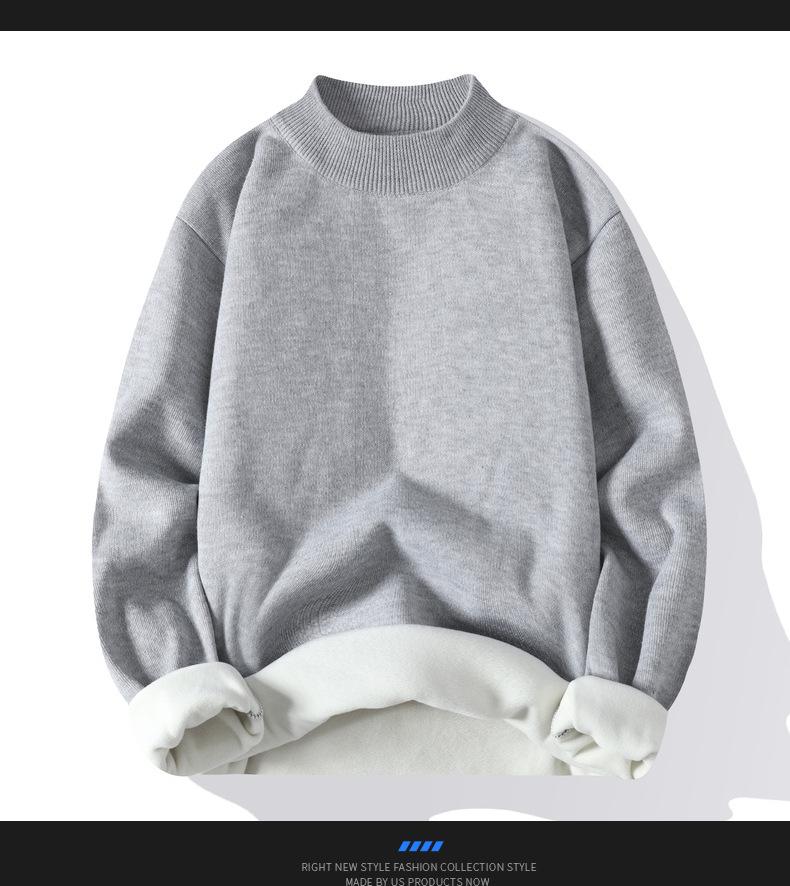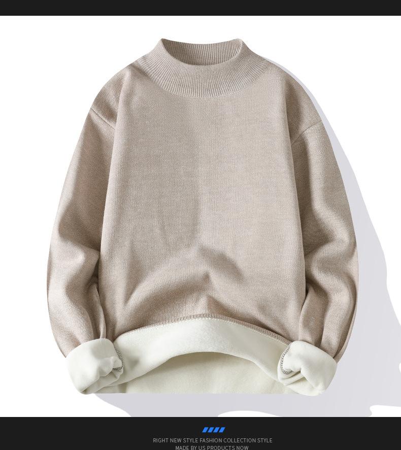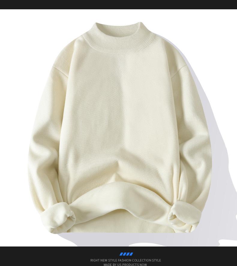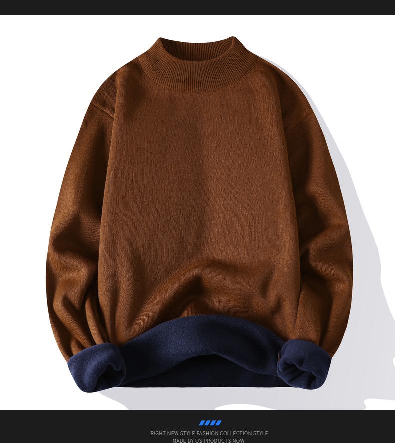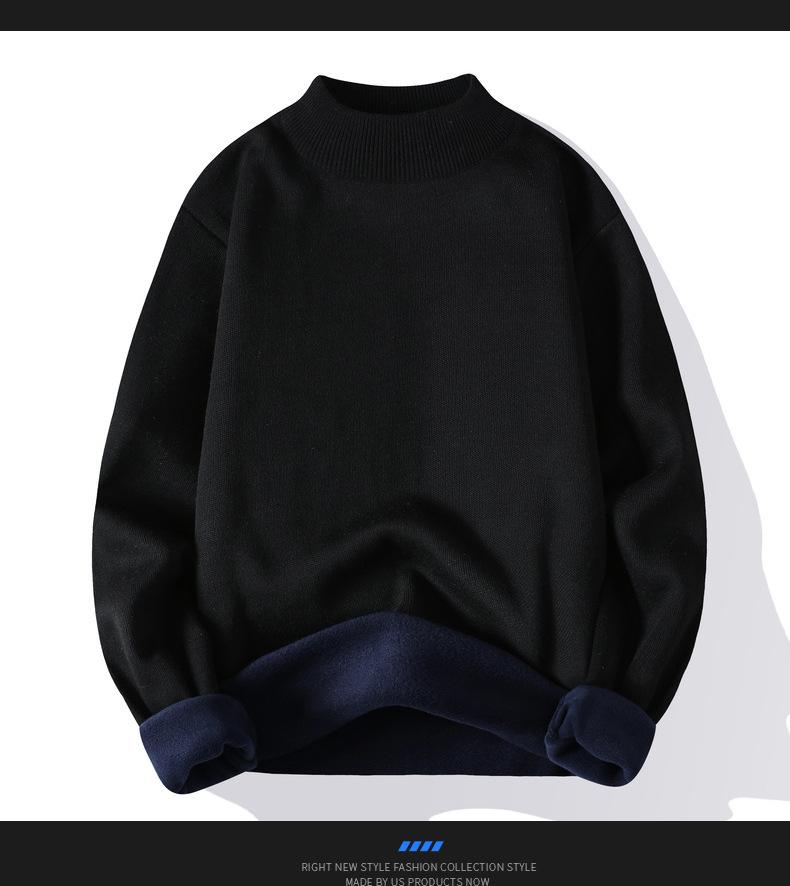 Suéter de hombre con forro polar, cuello medio alto, de una sola pieza, suelto, de color liso, para uso interior.