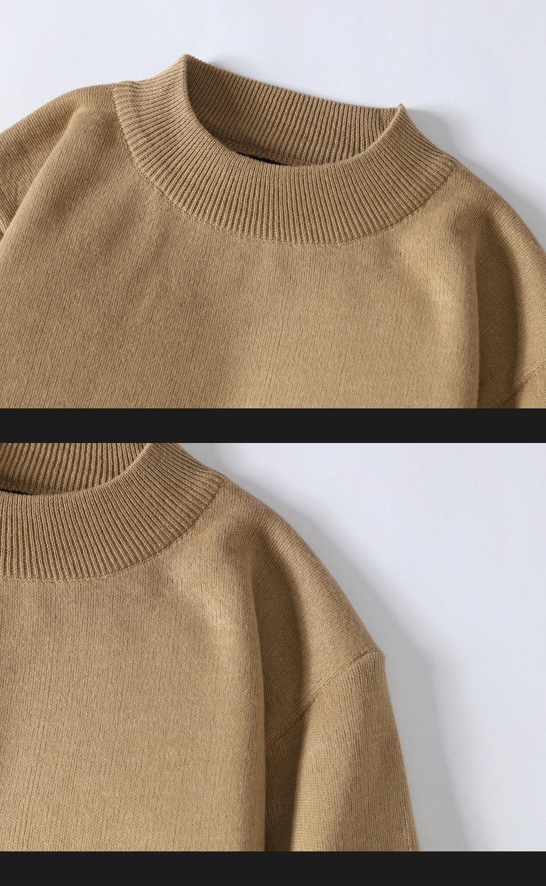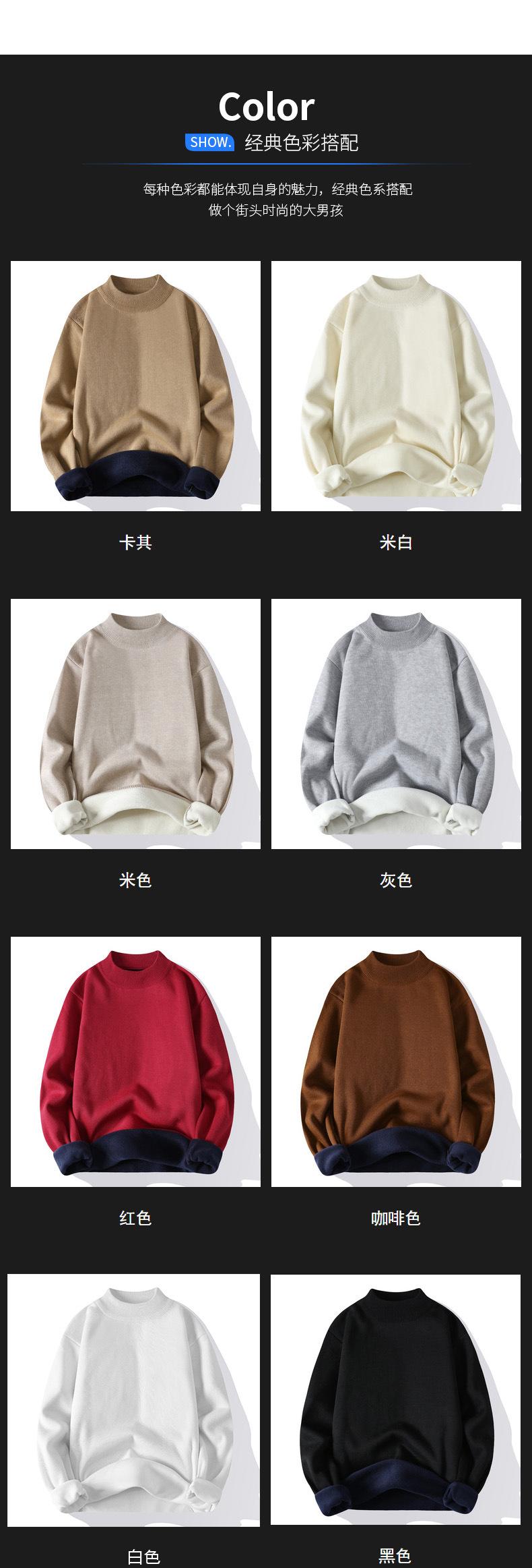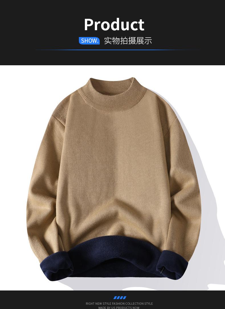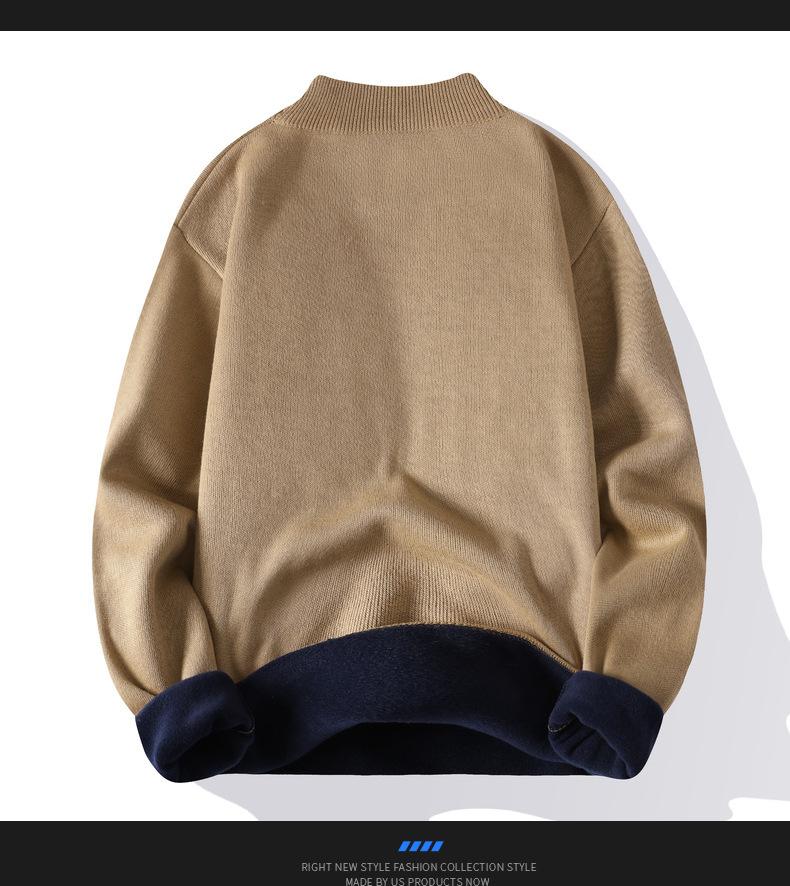 Suéter de hombre con forro polar, cuello medio alto, de una sola pieza, suelto, de color liso, para uso interior.