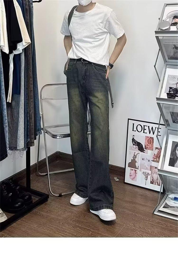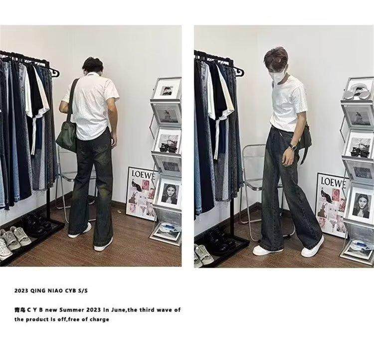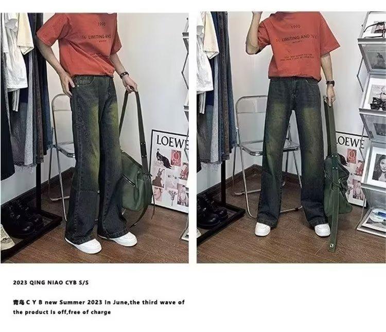 Retro de calle alta 2023 ropa de trabajo jeans holgados hombres y mujeres ruoshuai Primavera y Otoño Nuevo pantalón recto de pierna ancha