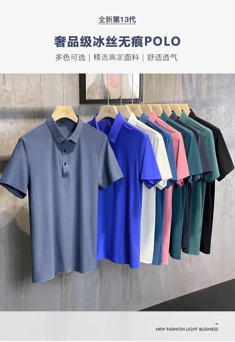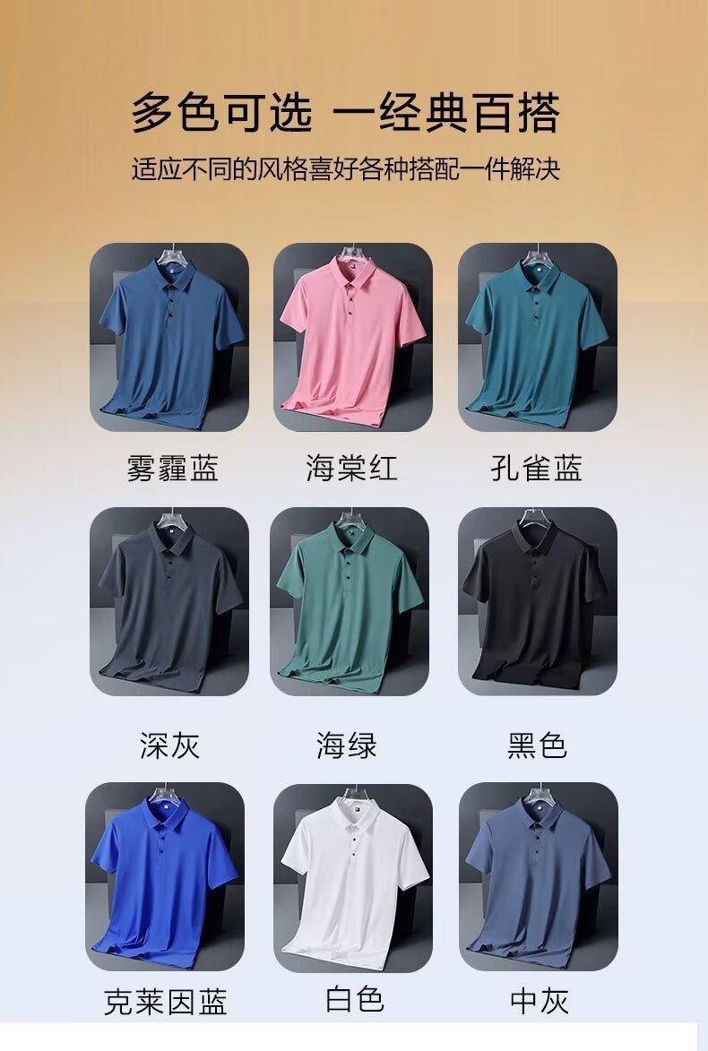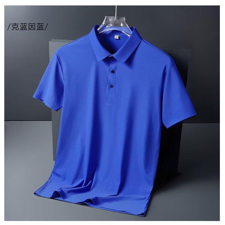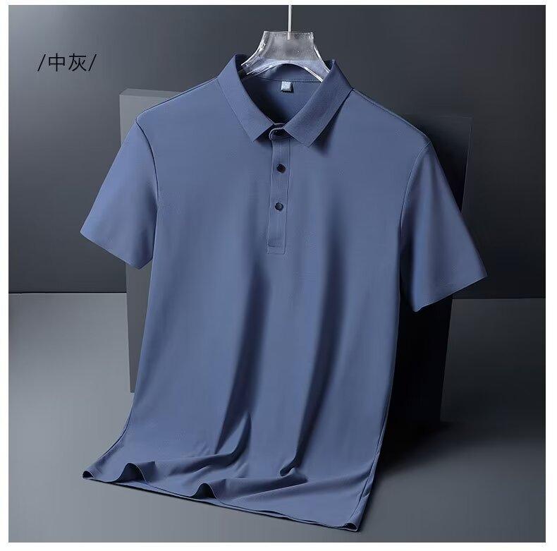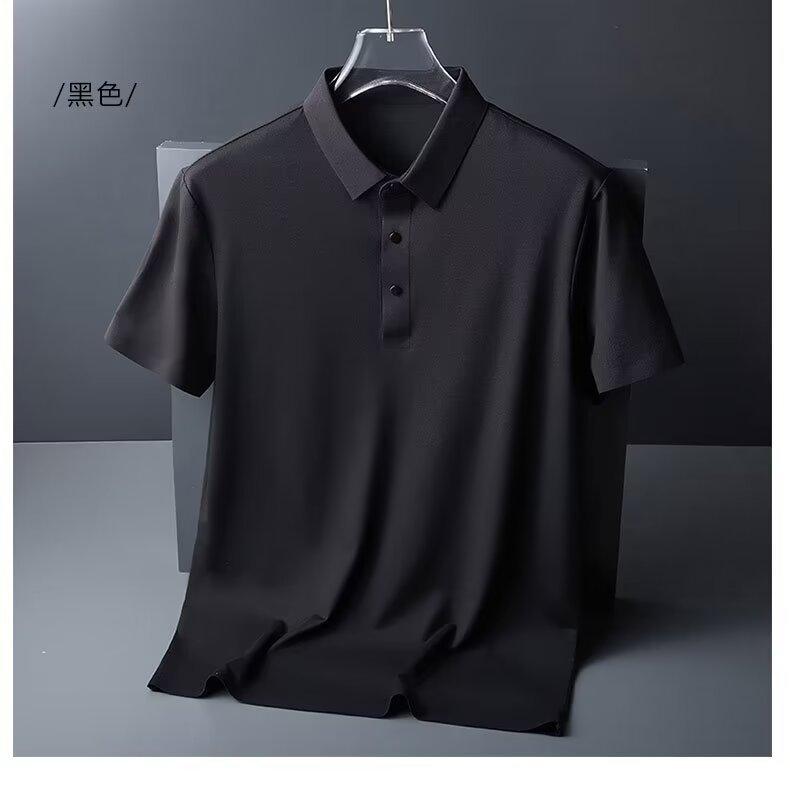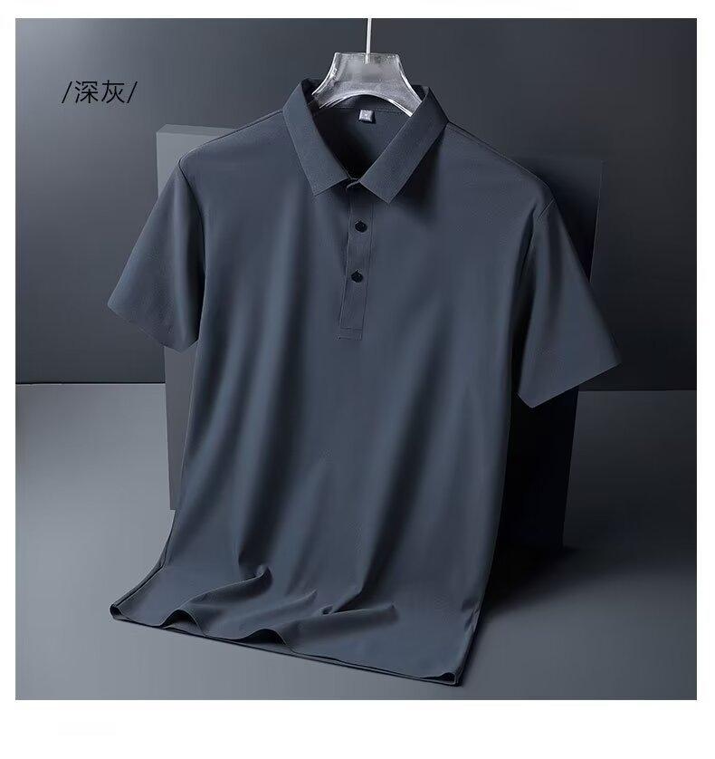 Polo de seda de hielo de negocios para hombre, camiseta de verano de manga corta con solapa suelta, de secado rápido, para papá, top fino y sencillo