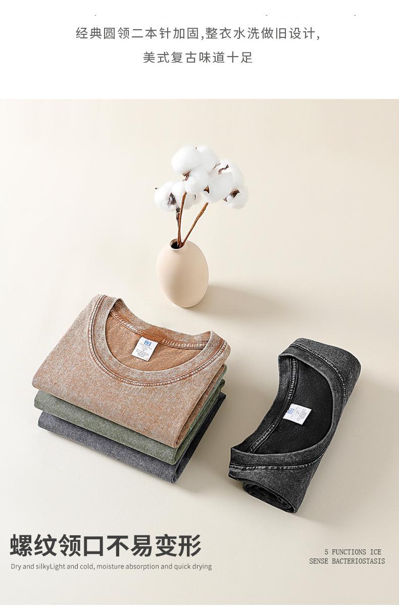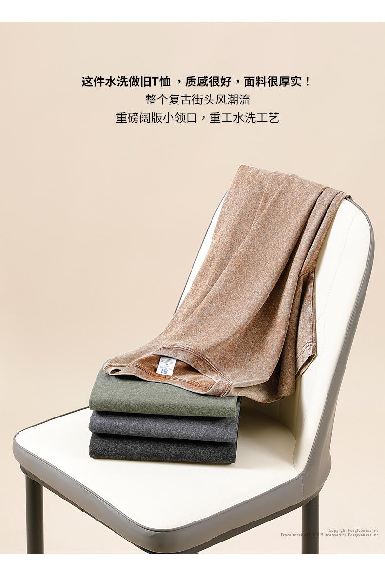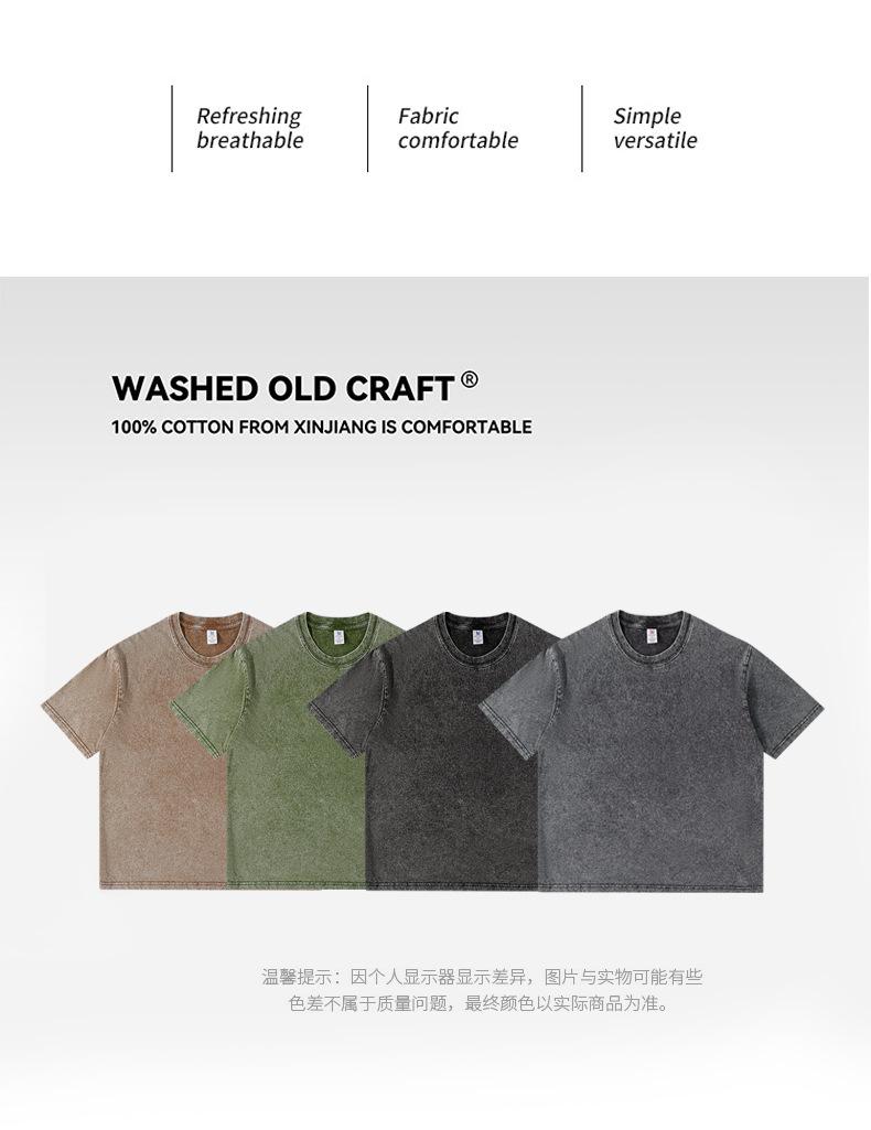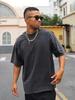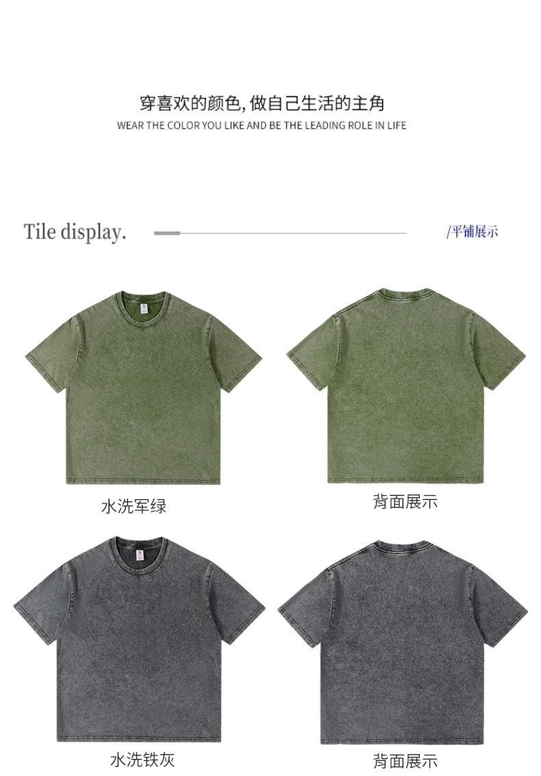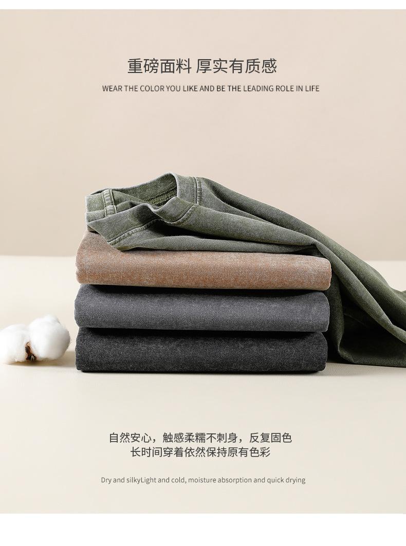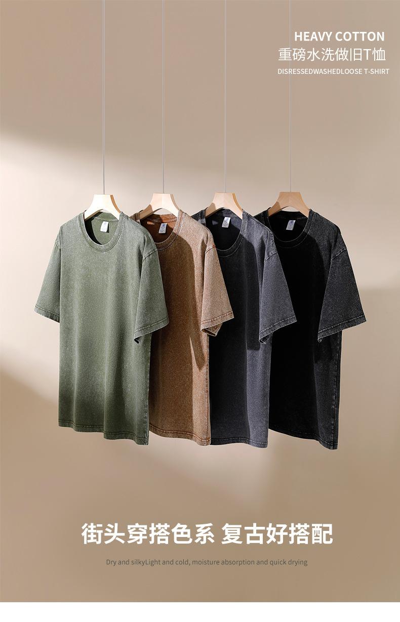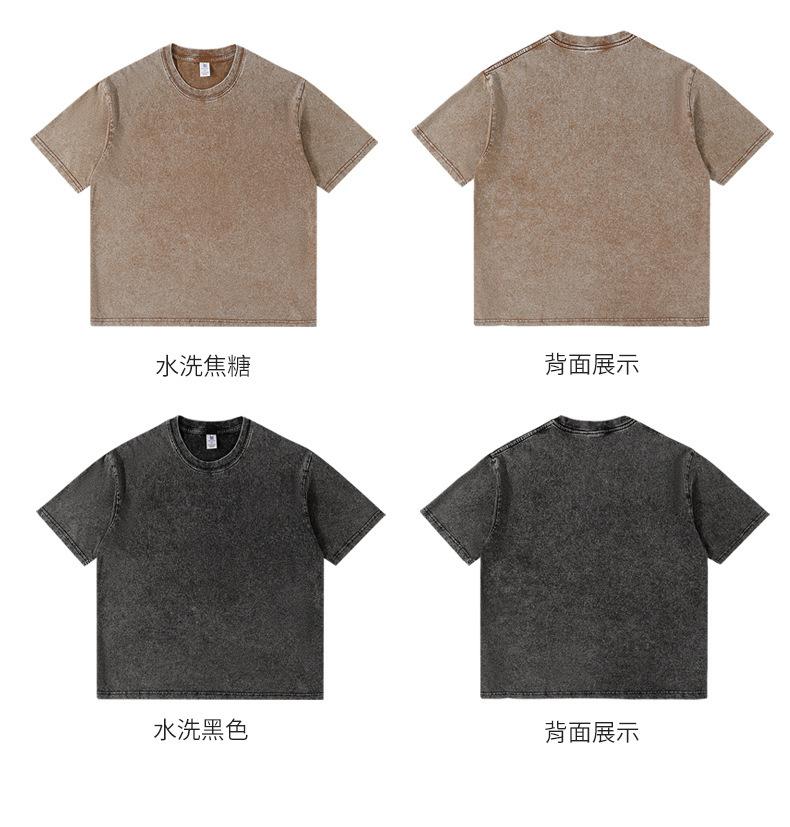 Camiseta de algodón pesada transfronteriza de 230 g, venta al por mayor, lavada americana, retro, desgastada, negra, para hombre, pareja, manga corta