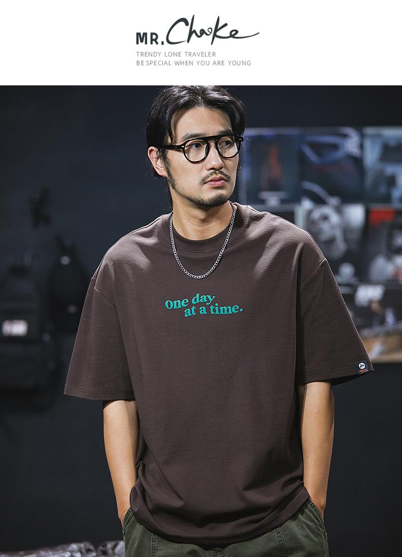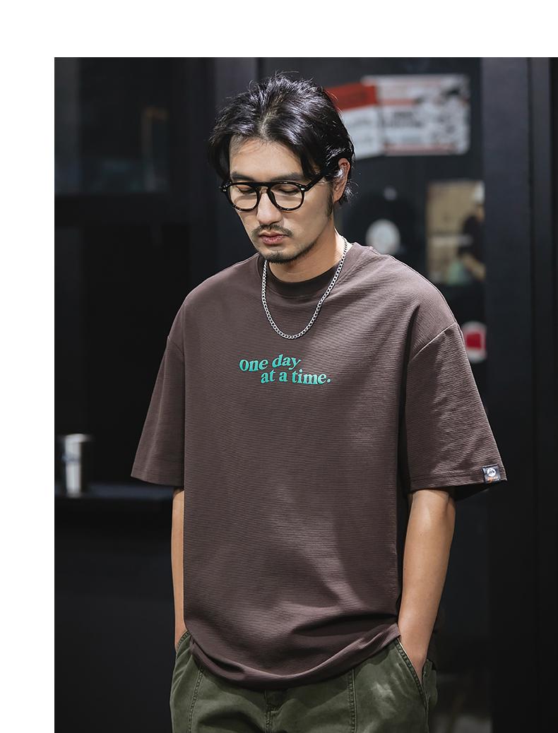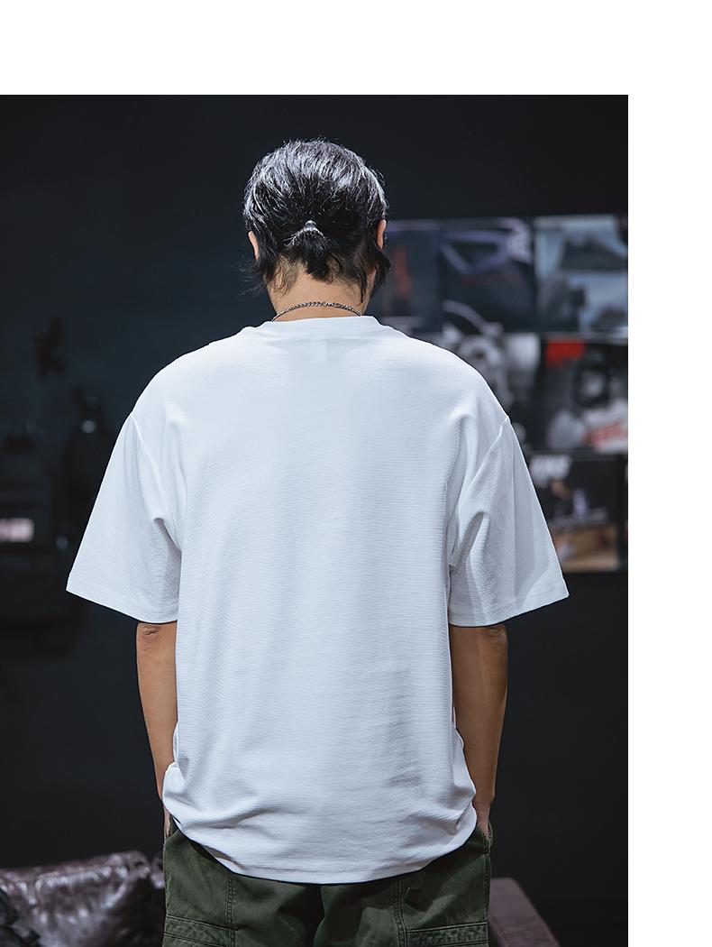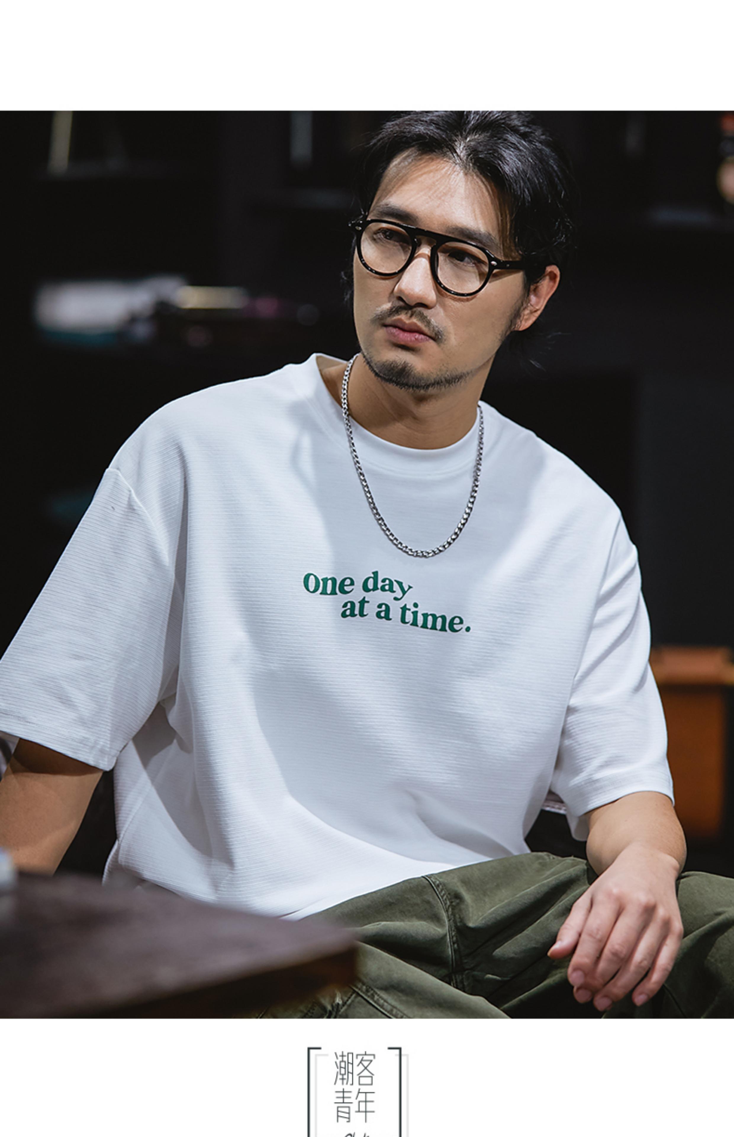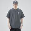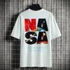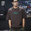 Camiseta de verano de manga corta de 230 g para hombre, holgada, de talla grande, con estampado de letras americanas, blanca, cuello redondo y media manga.