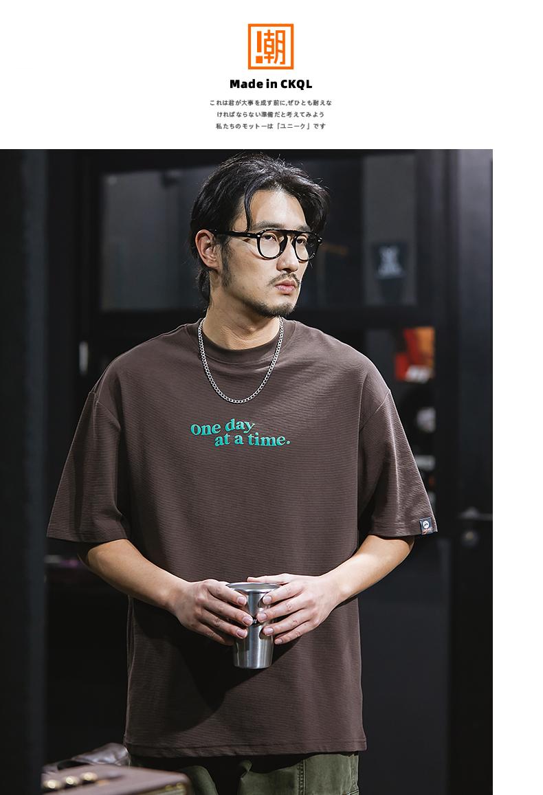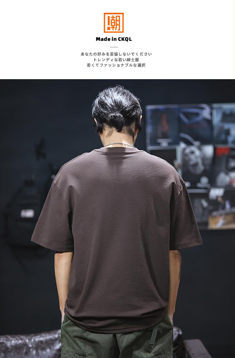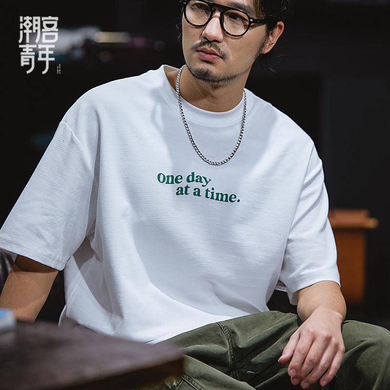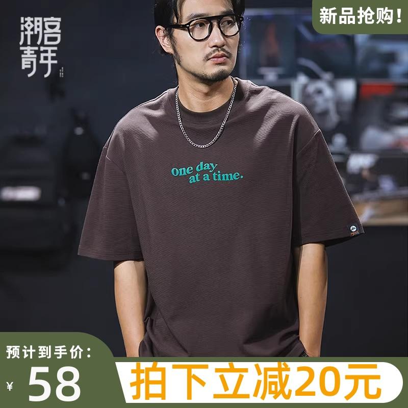Camiseta de verano de manga corta de 230 g para hombre, holgada, de talla grande, con estampado de letras americanas, blanca, cuello redondo y media manga.
