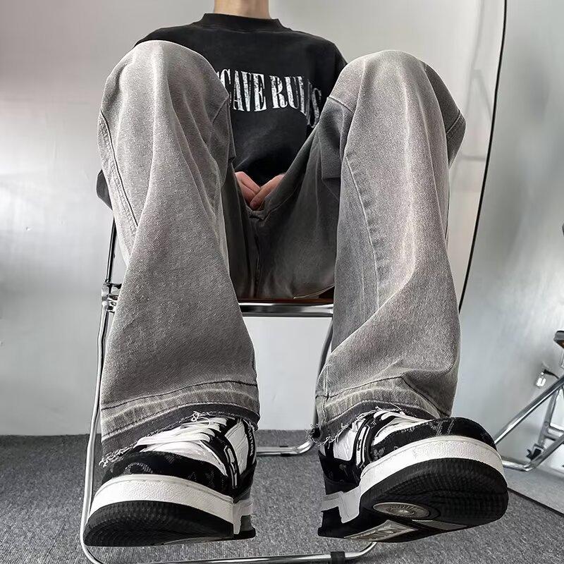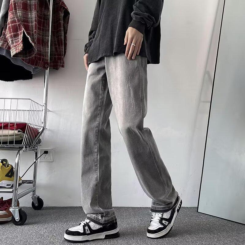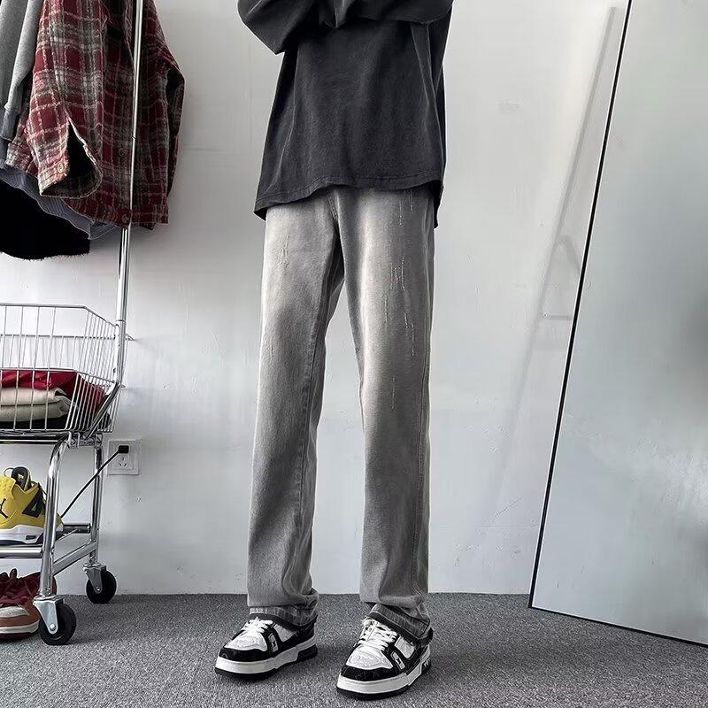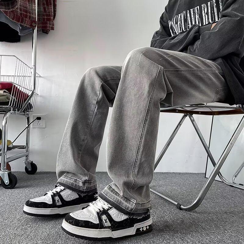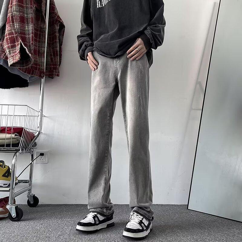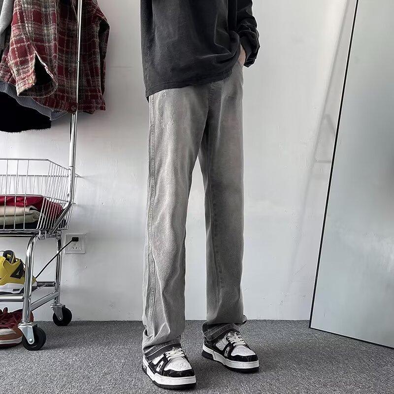 Pantalones vaqueros vintage lavados para hombre, primavera y otoño, estilo americano, ajustados, rectos, de marca de moda, holgados, de talla grande, casuales para hombre
