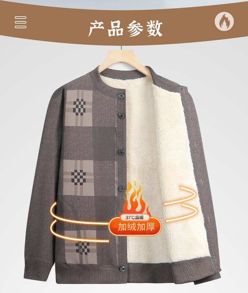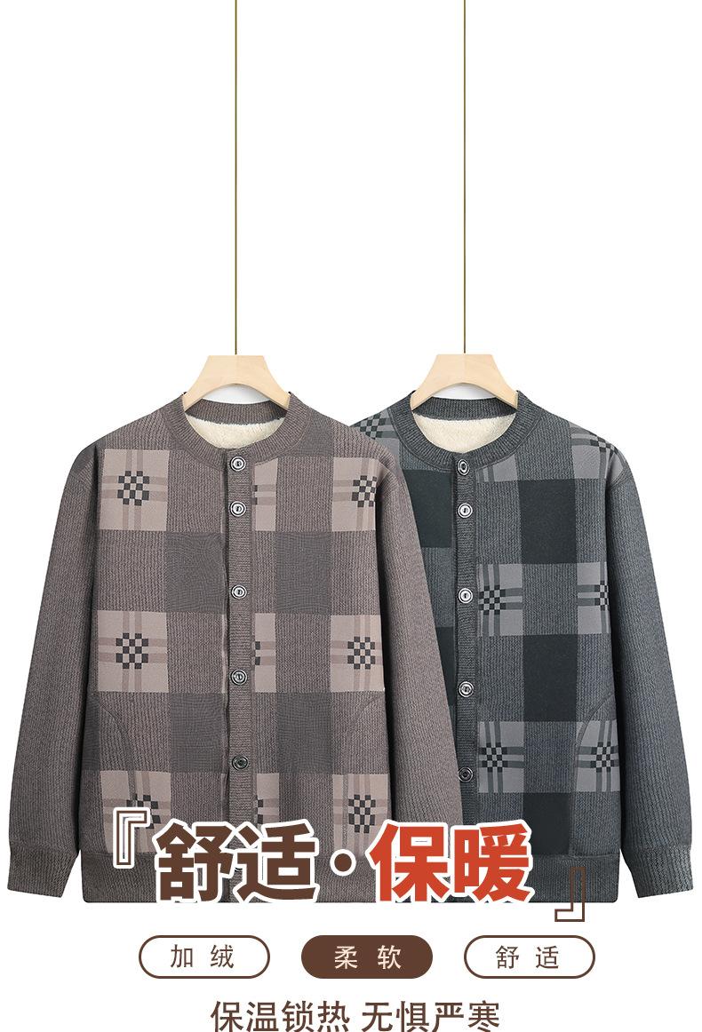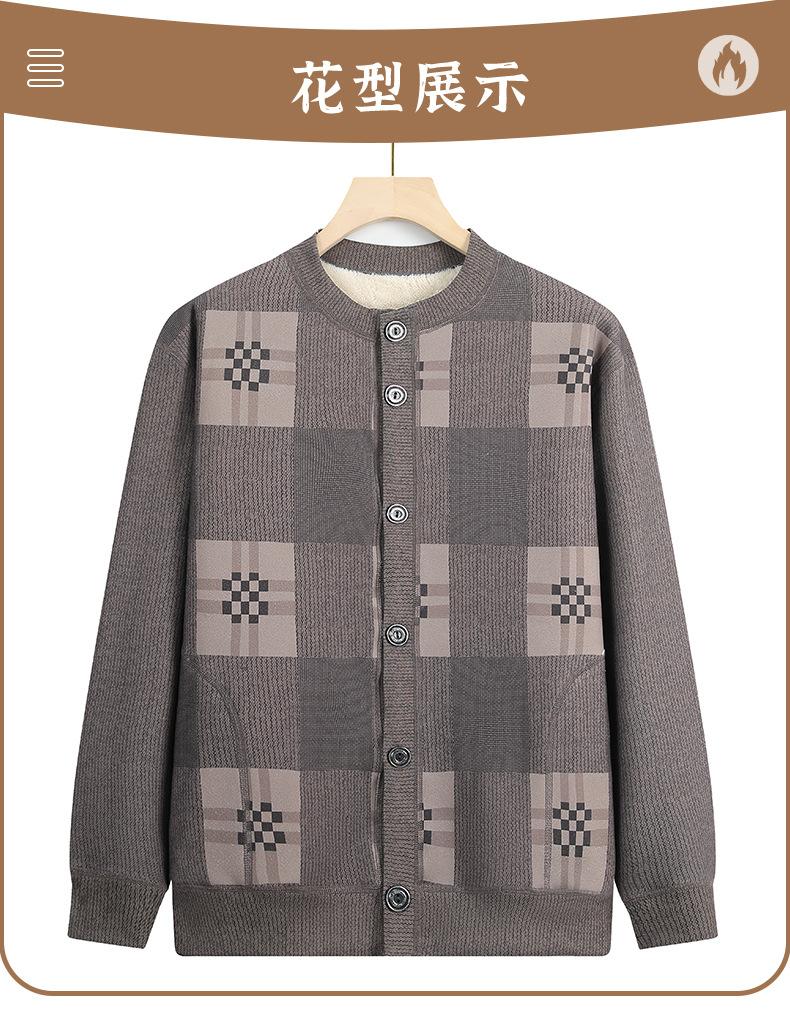 Cárdigan para hombre con forro polar, ropa cálida para uso diario casual, cárdigan para papá de mediana edad y anciano, top, ropa interior y exterior, suéter grueso