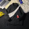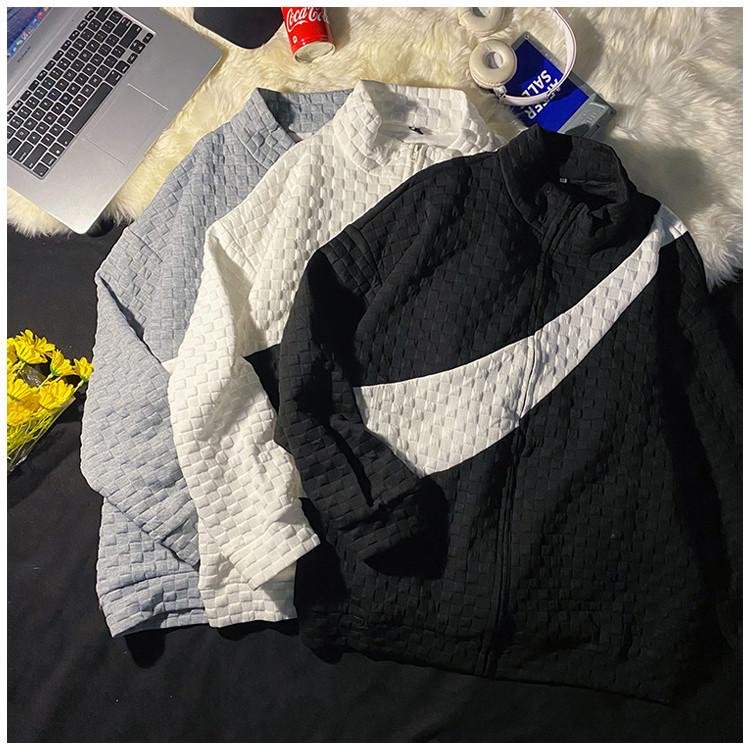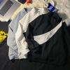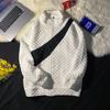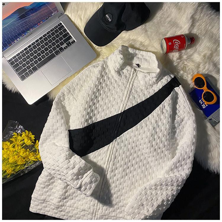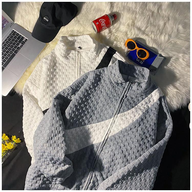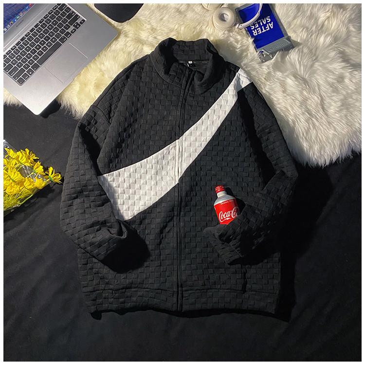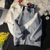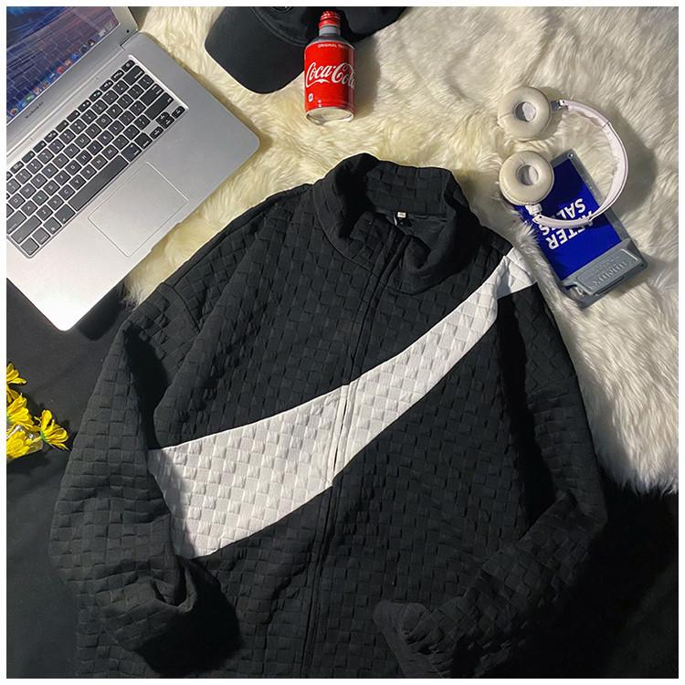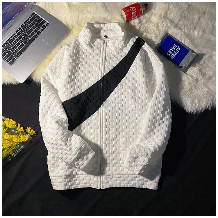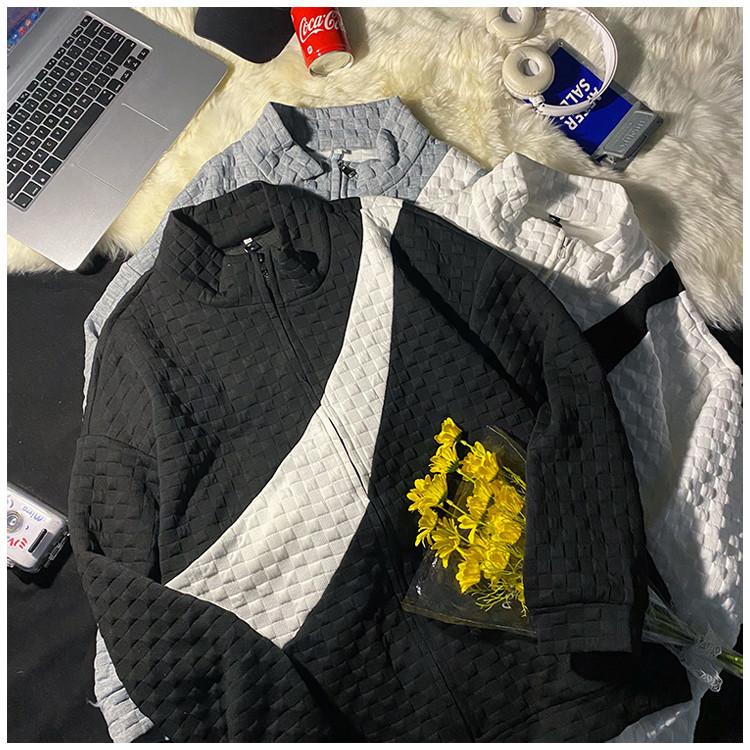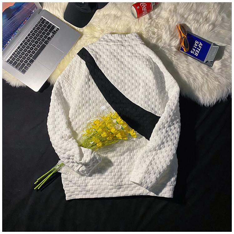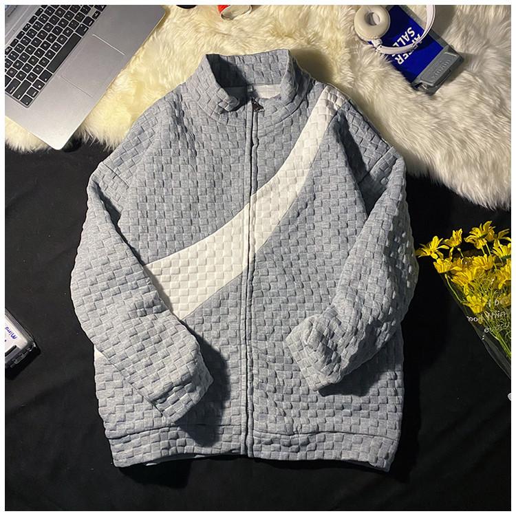 Suéter con cremallera y costuras a cuadros en contraste de color para hombre, marca de moda de primavera, estilo urbano de Hong Kong, cuello holgado, manga larga, jersey exterior