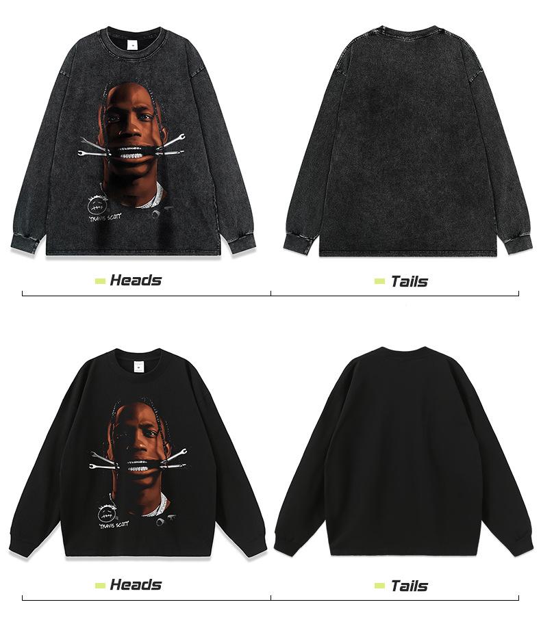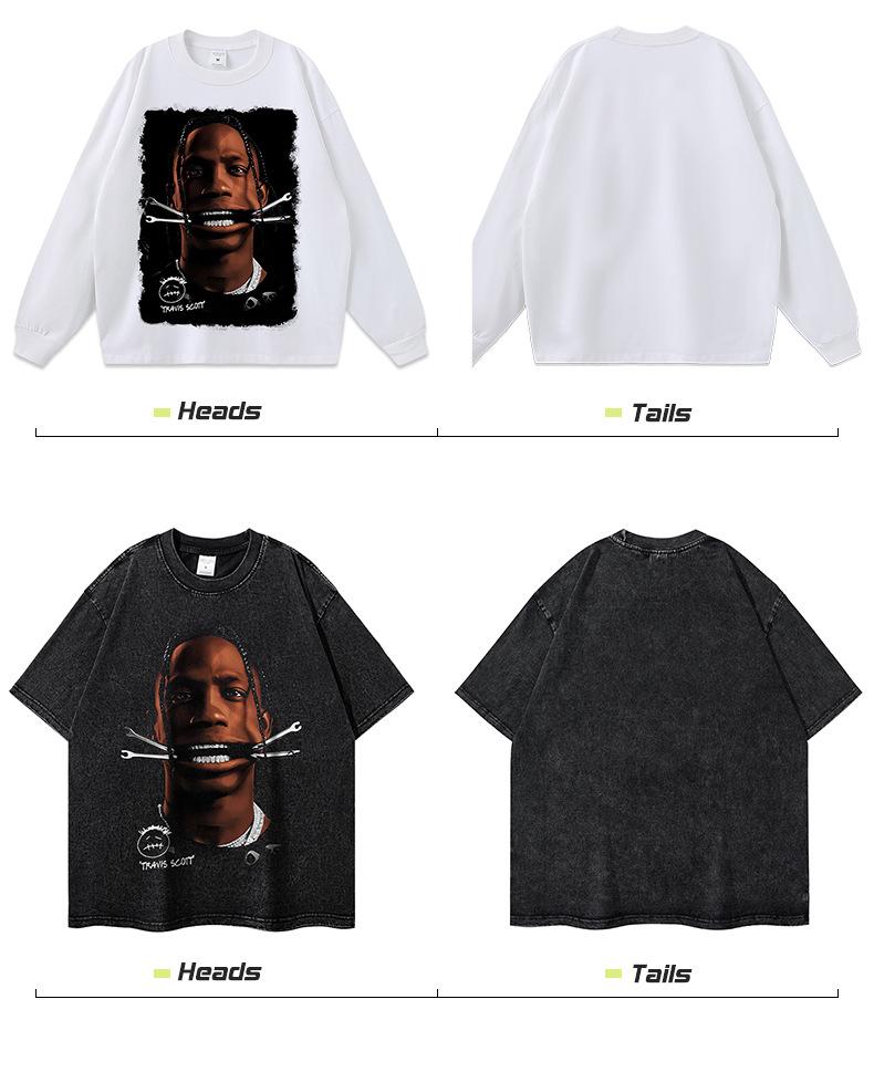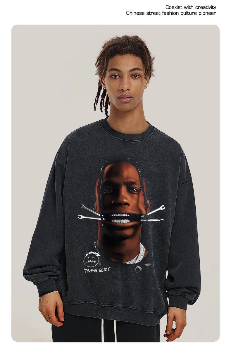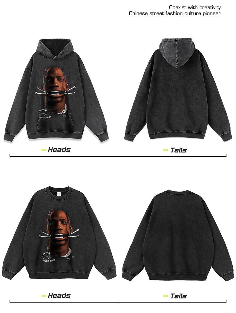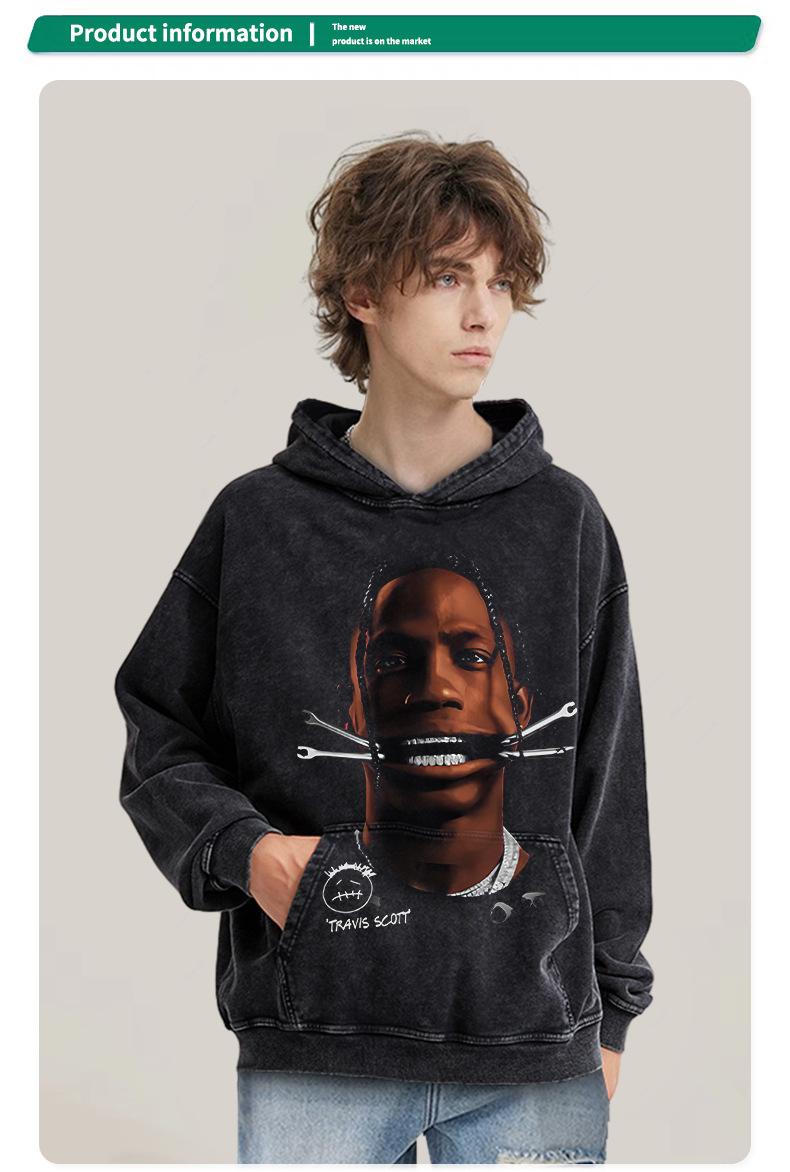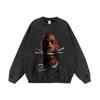 Suéter con capucha y estampado de retrato de rap estadounidense para hombres y mujeres, marca de moda nacional, sudadera con capucha lavada estilo hip hop retro callejero