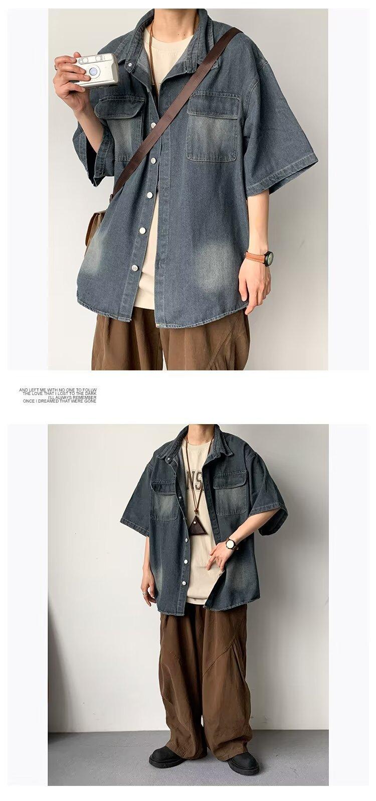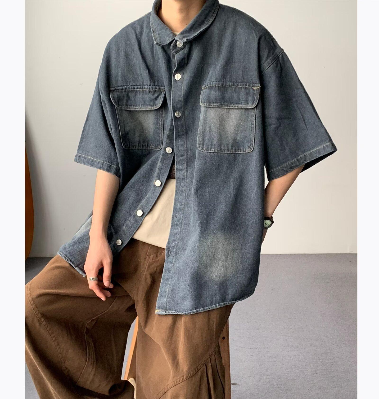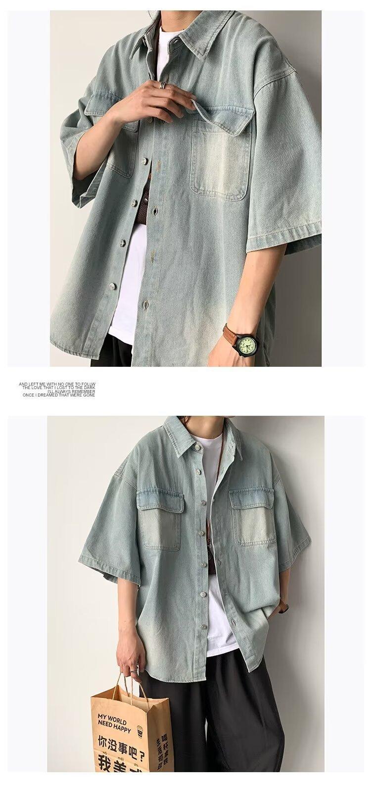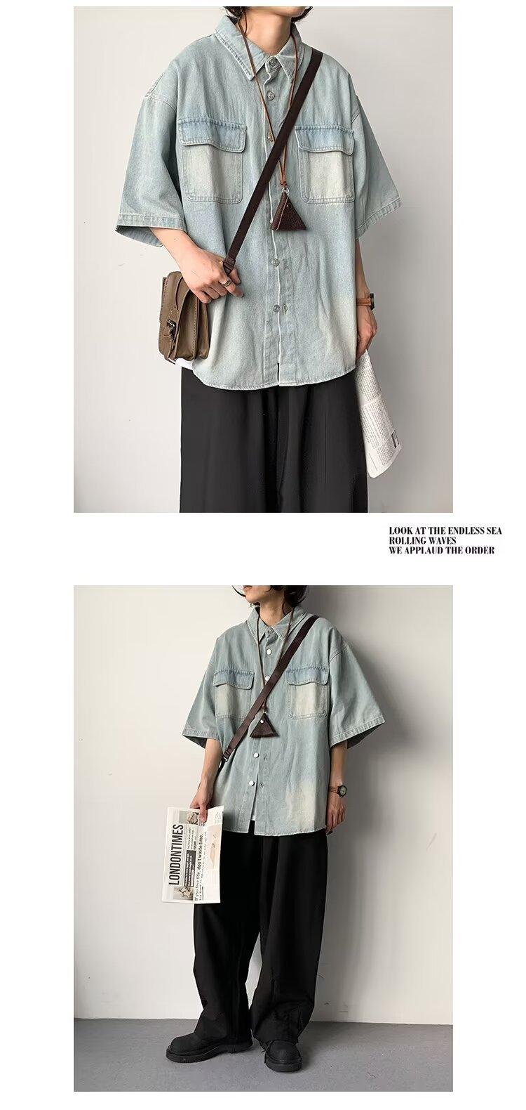 Camisa de manga corta estilo japonés retro para hombre, verano 2024, nuevo diseño de nicho, marca de moda, camisa informal de media manga.