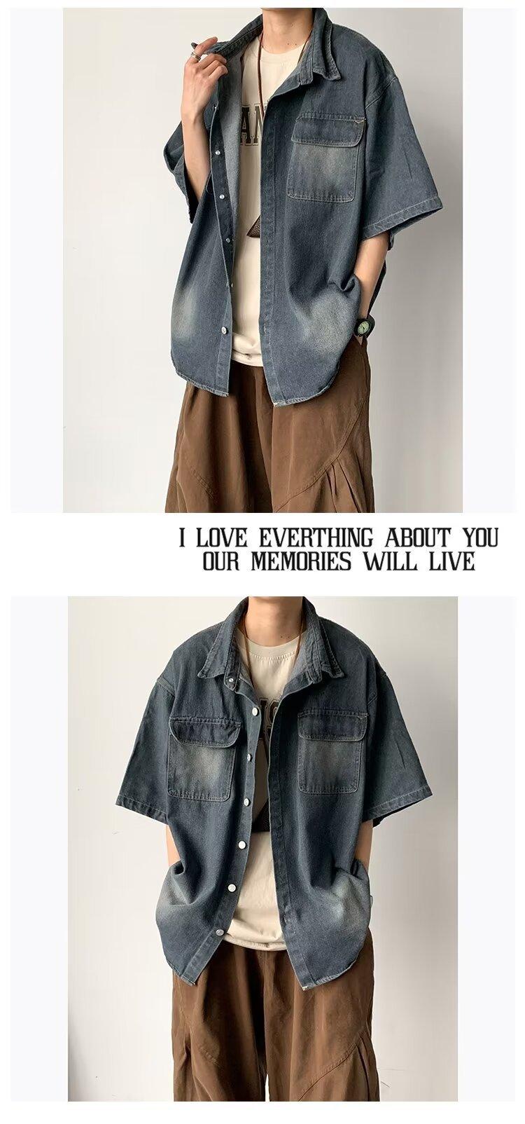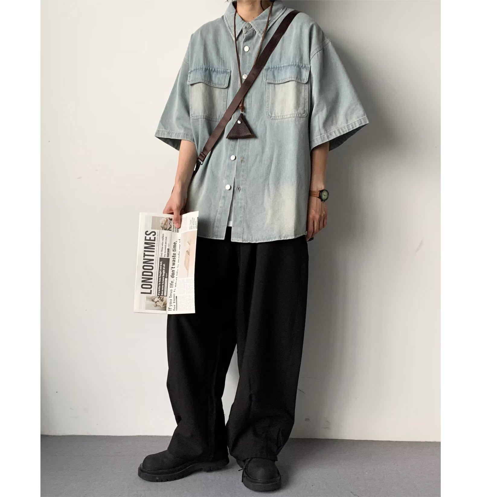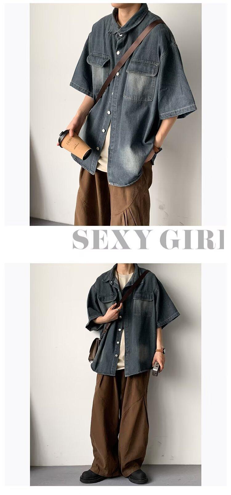 Camisa de manga corta estilo japonés retro para hombre, verano 2024, nuevo diseño de nicho, marca de moda, camisa informal de media manga.
