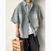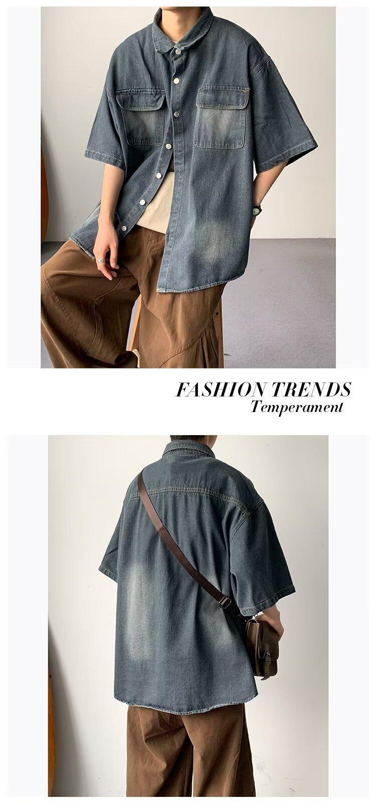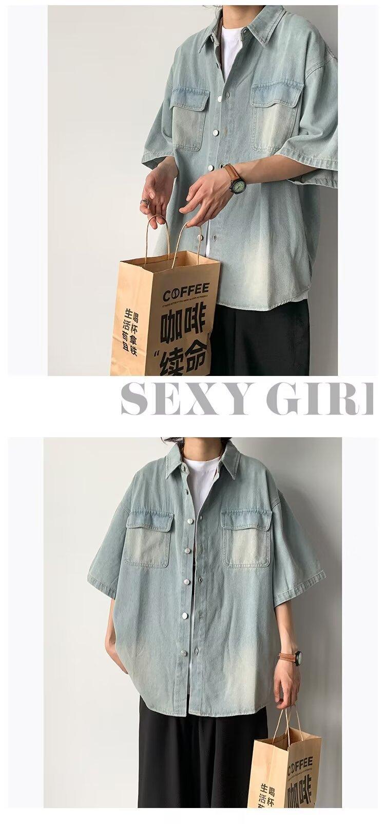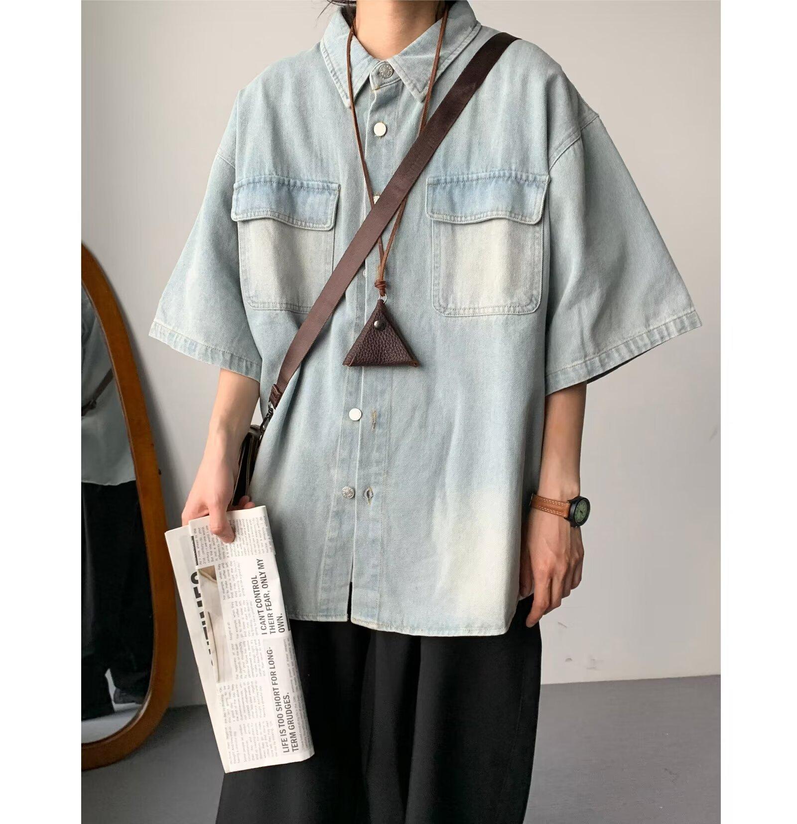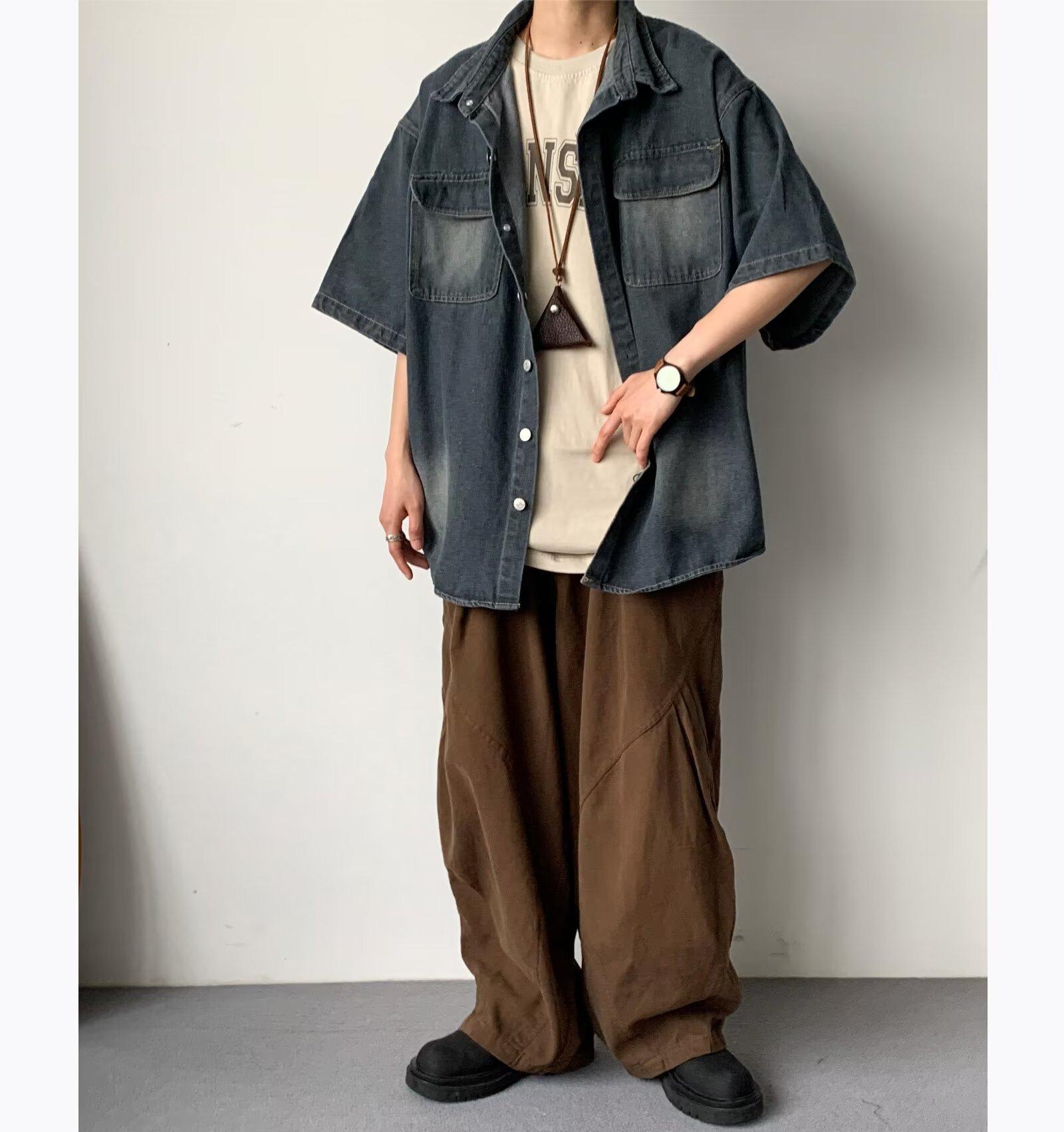 Camisa de manga corta estilo japonés retro para hombre, verano 2024, nuevo diseño de nicho, marca de moda, camisa informal de media manga.