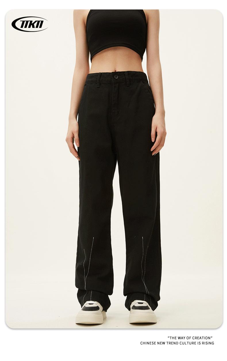 11Kn Jeans para Hombre de Pierna Recta Casual Retro Ins Marca de Moda Sueltos Cleanfit Pantalones Negros de Moda para Mujer
