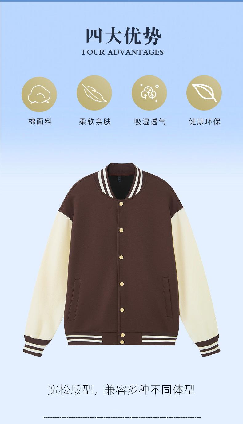 Suéter de hombro de otoño e invierno, ropa de trabajo personalizada, chaqueta con logotipo impreso, cárdigan de algodón, ropa de béisbol, ropa de grupo personalizada