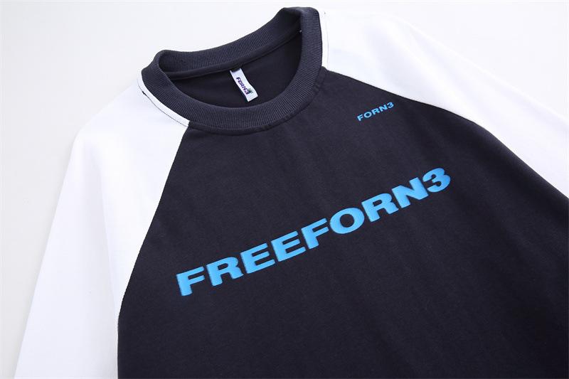 Sudadera informal de manga larga con cuello redondo y hombros en contraste de marca de moda callejera de estilo americano para primavera y otoño.