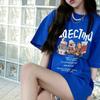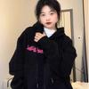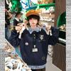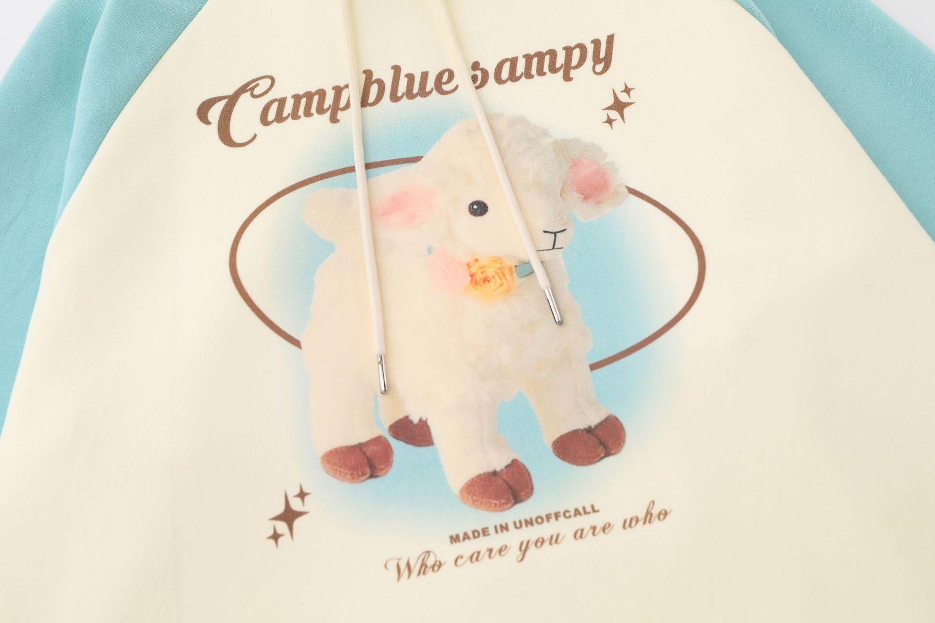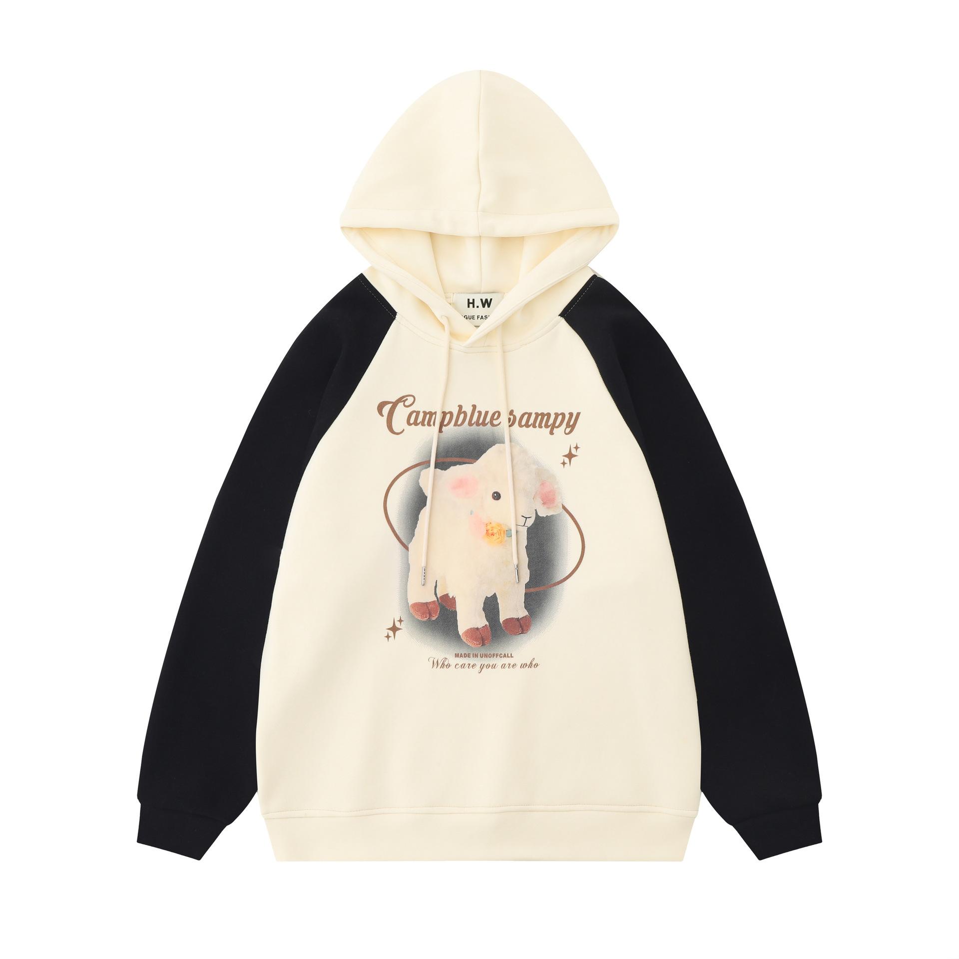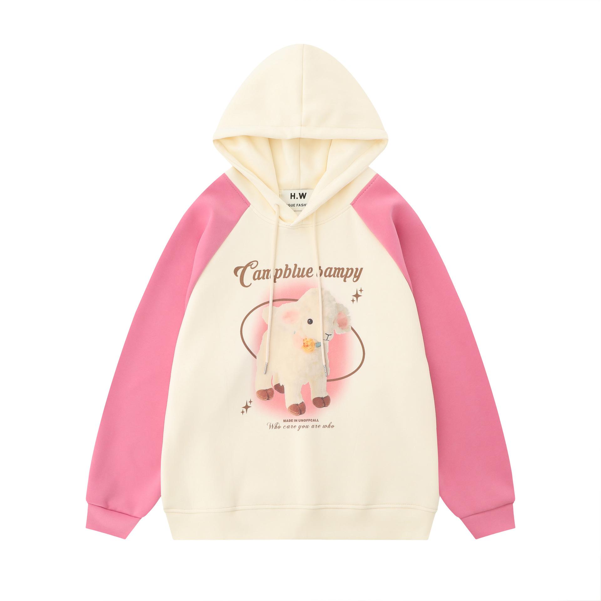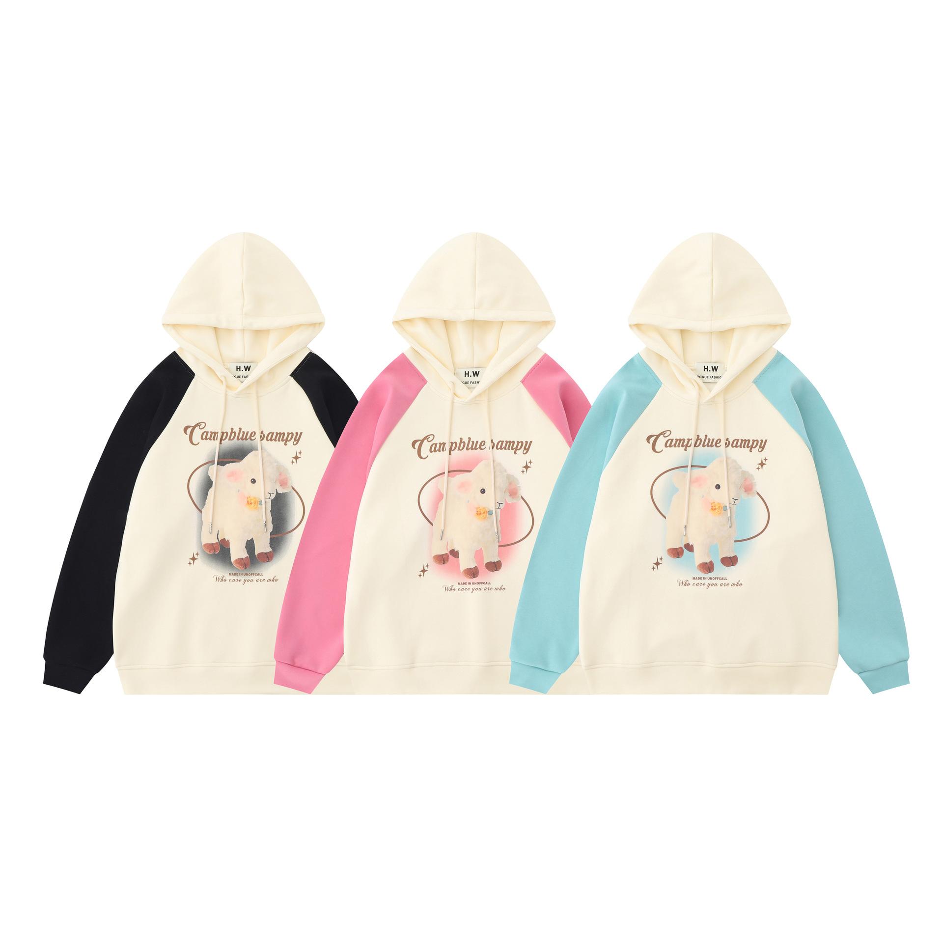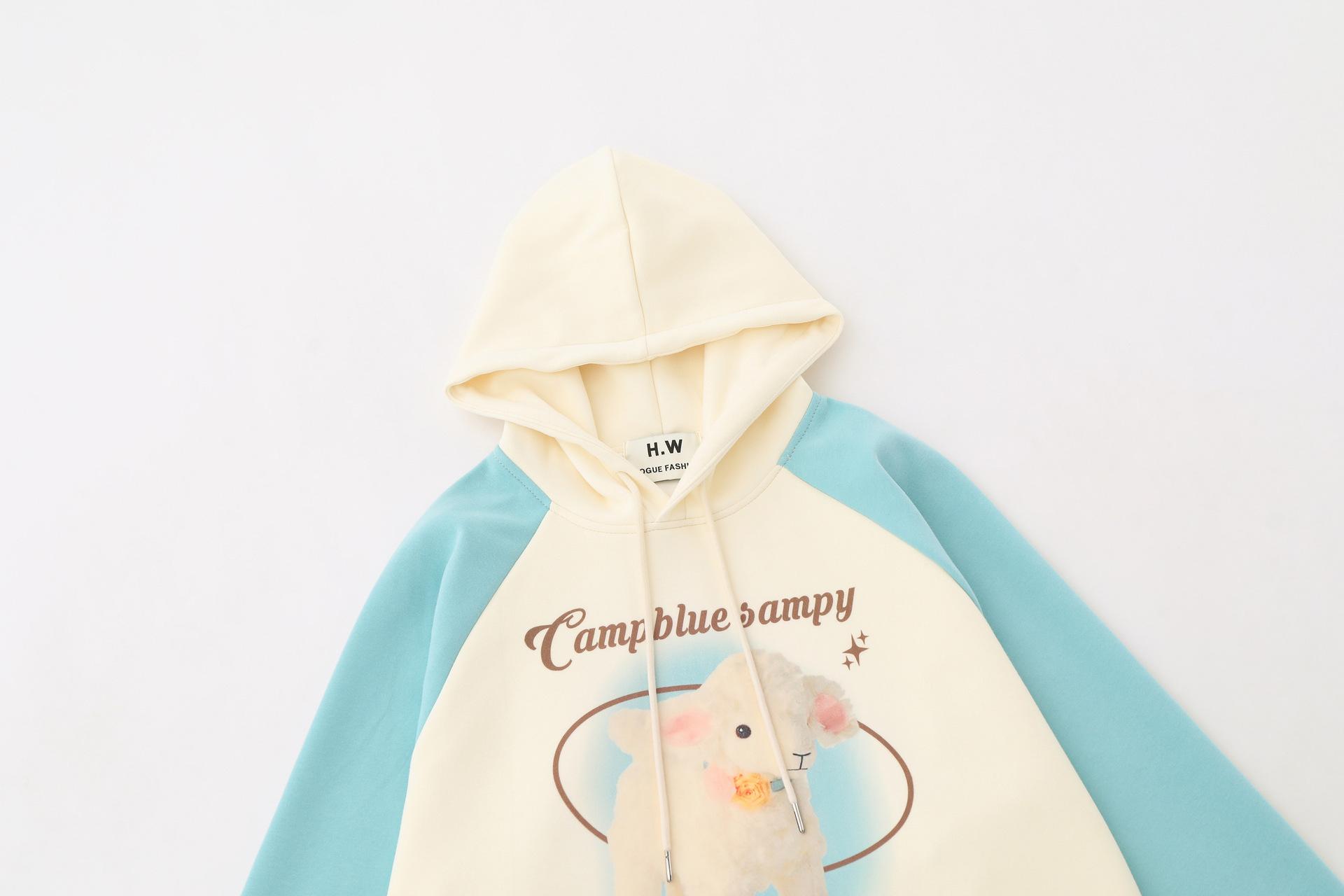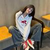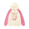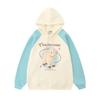 Suéter de manga raglán con contraste de color y estampado de dibujos animados de estilo preppy japonés para mujer, sudadera informal holgada de otoño para parejas
