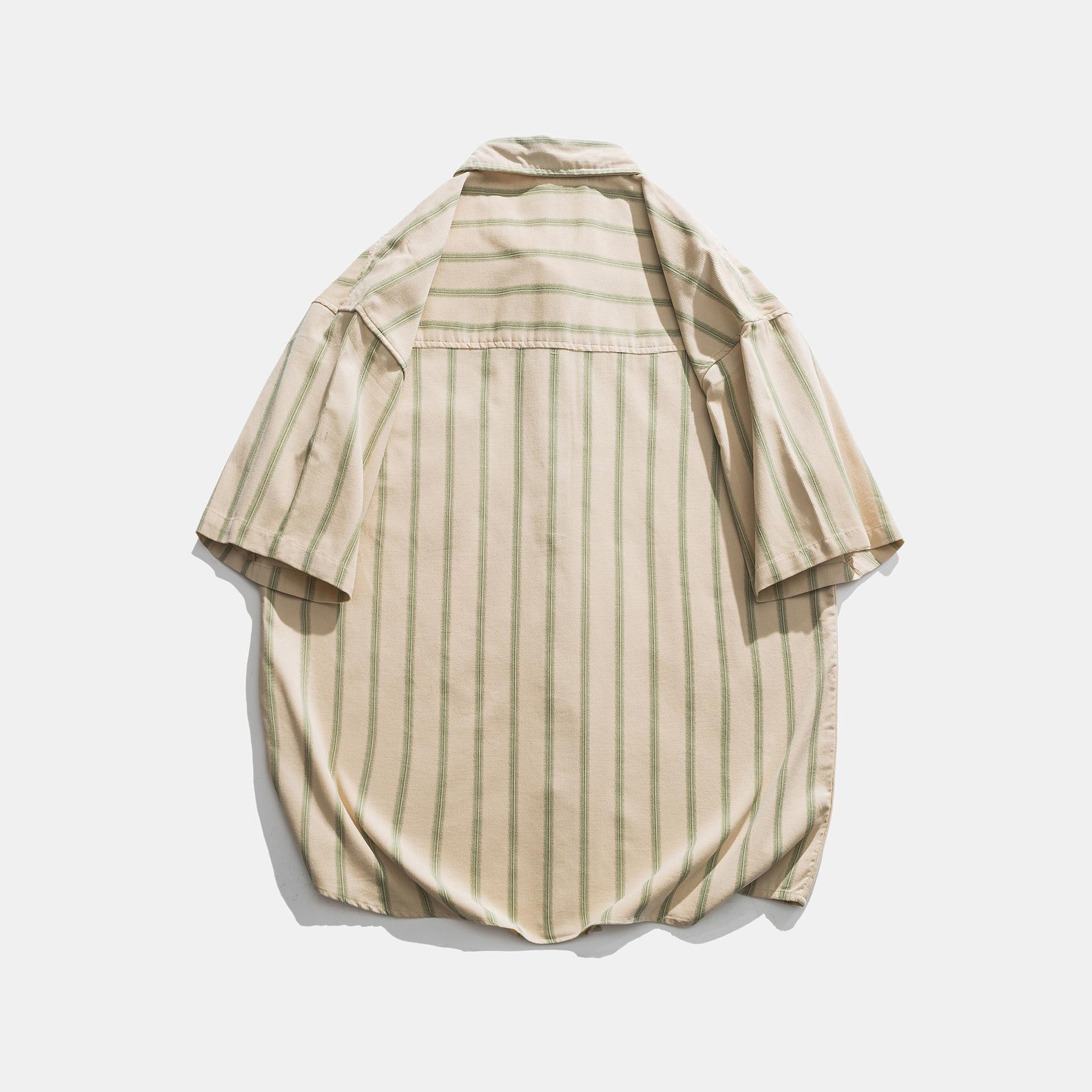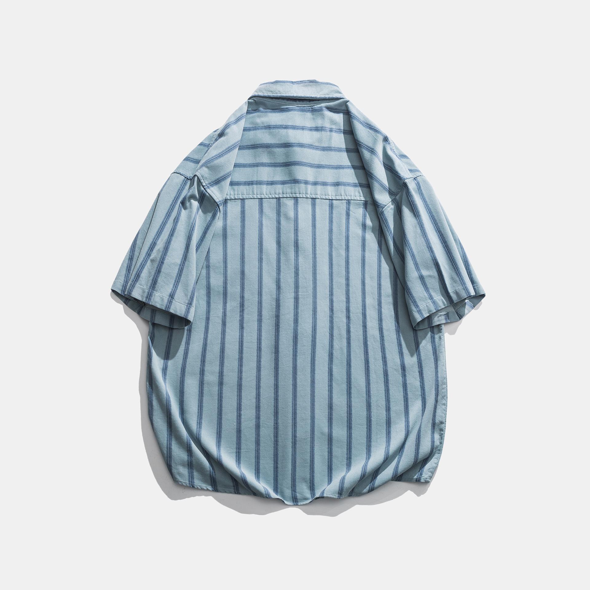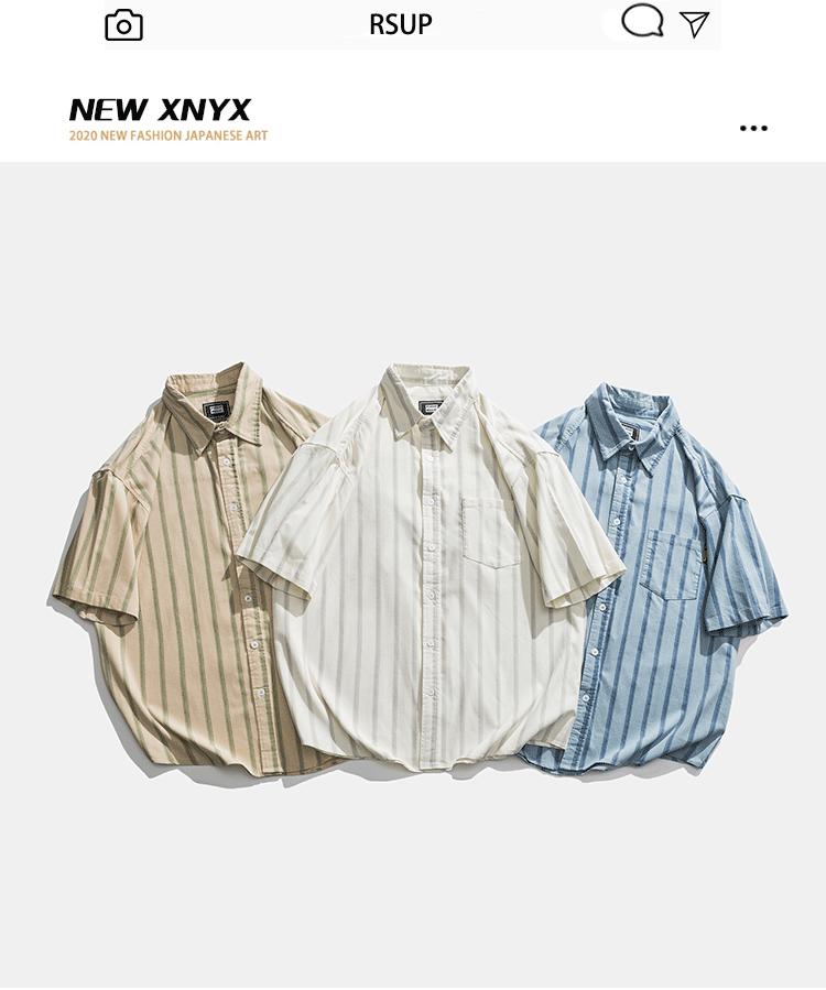 Camisa de rayas retro de estilo japonés para hombre, de verano, fina, informal, combinable, holgada, de marca moderna, estilo Harajuku, camisa de manga corta, chaqueta
