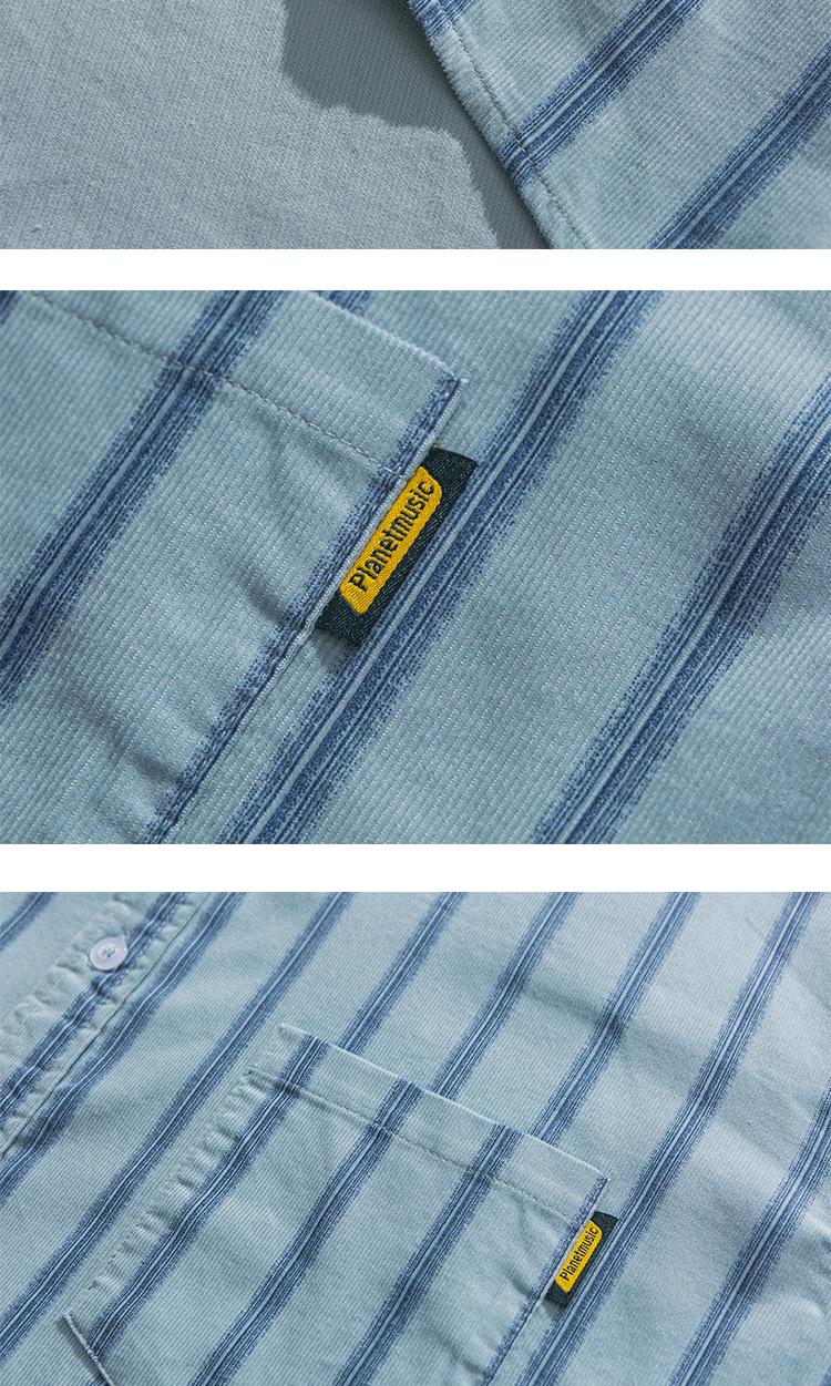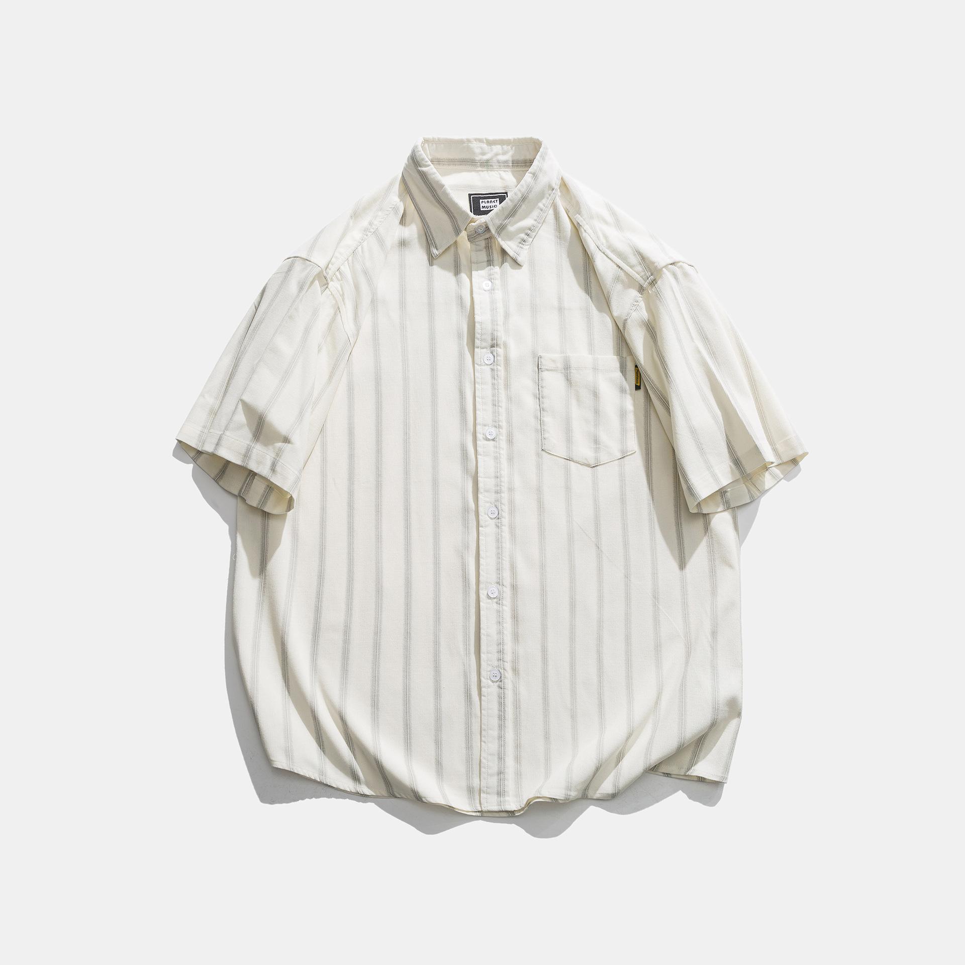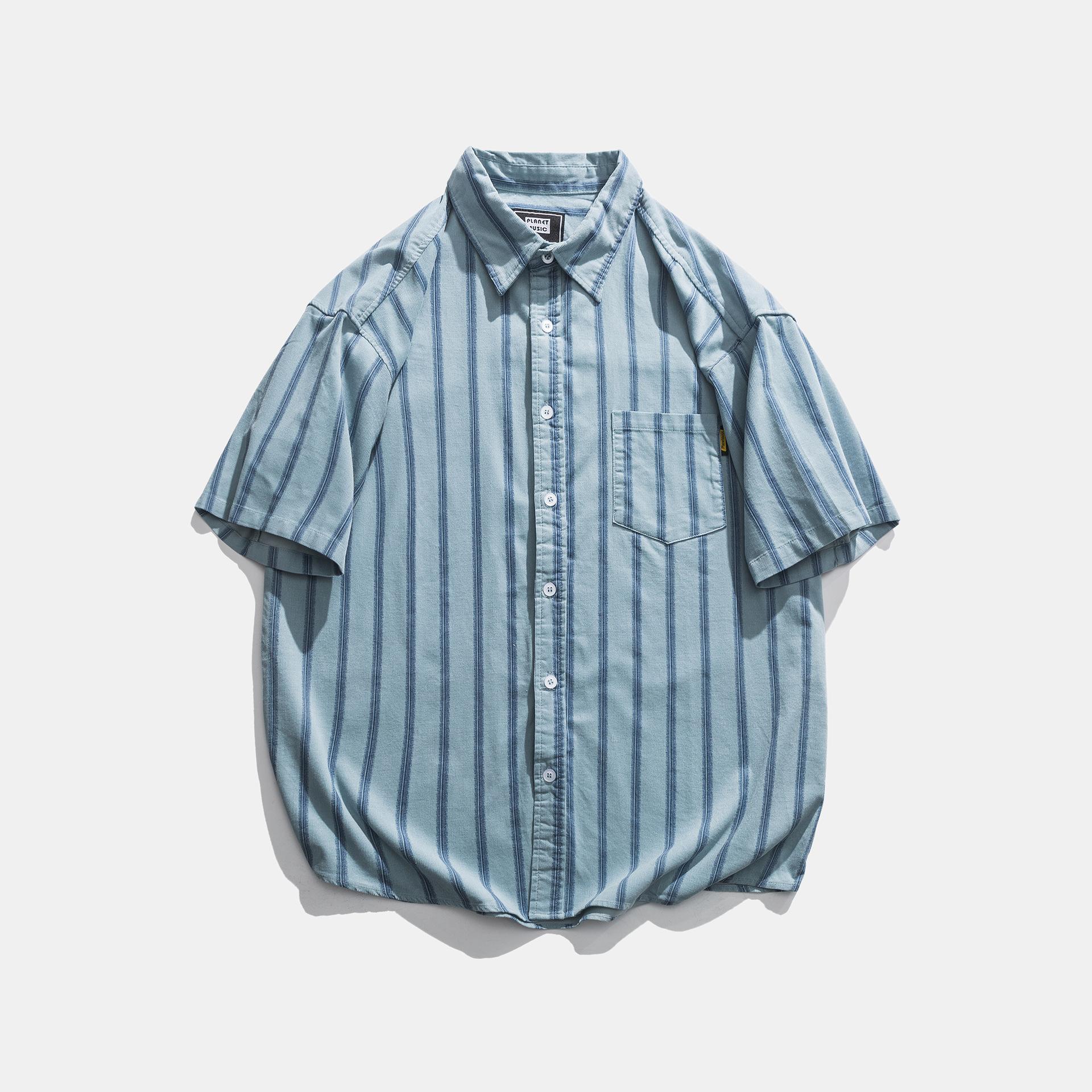Camisa de rayas retro de estilo japonés para hombre, de verano, fina, informal, combinable, holgada, de marca moderna, estilo Harajuku, camisa de manga corta, chaqueta