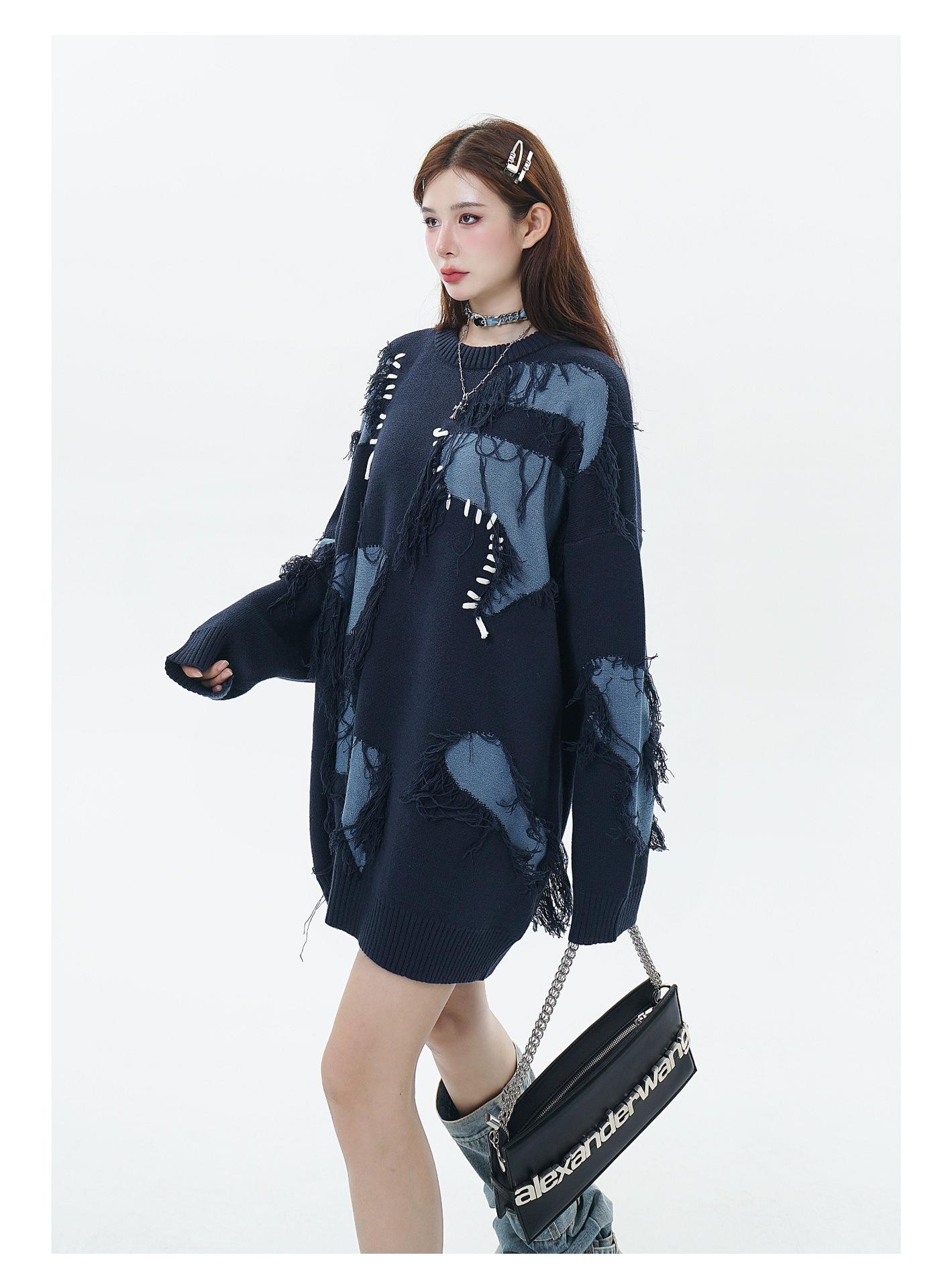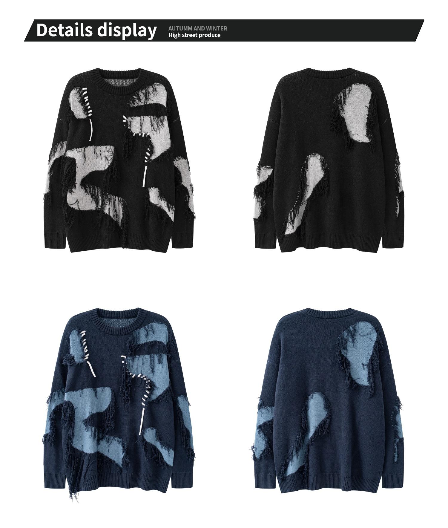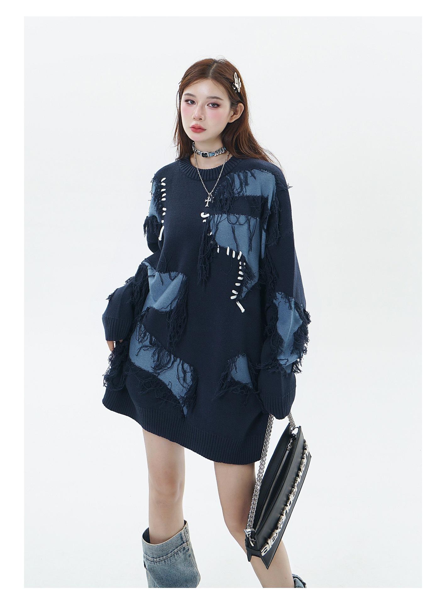 REGISTRO DE TARJETA TIDE | Moda callejera borla cuerda costuras diseño de moda patrón irregular jersey de punto