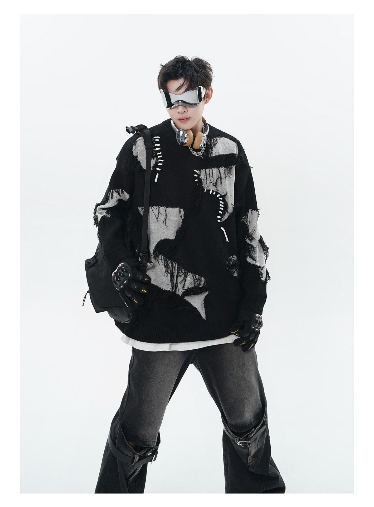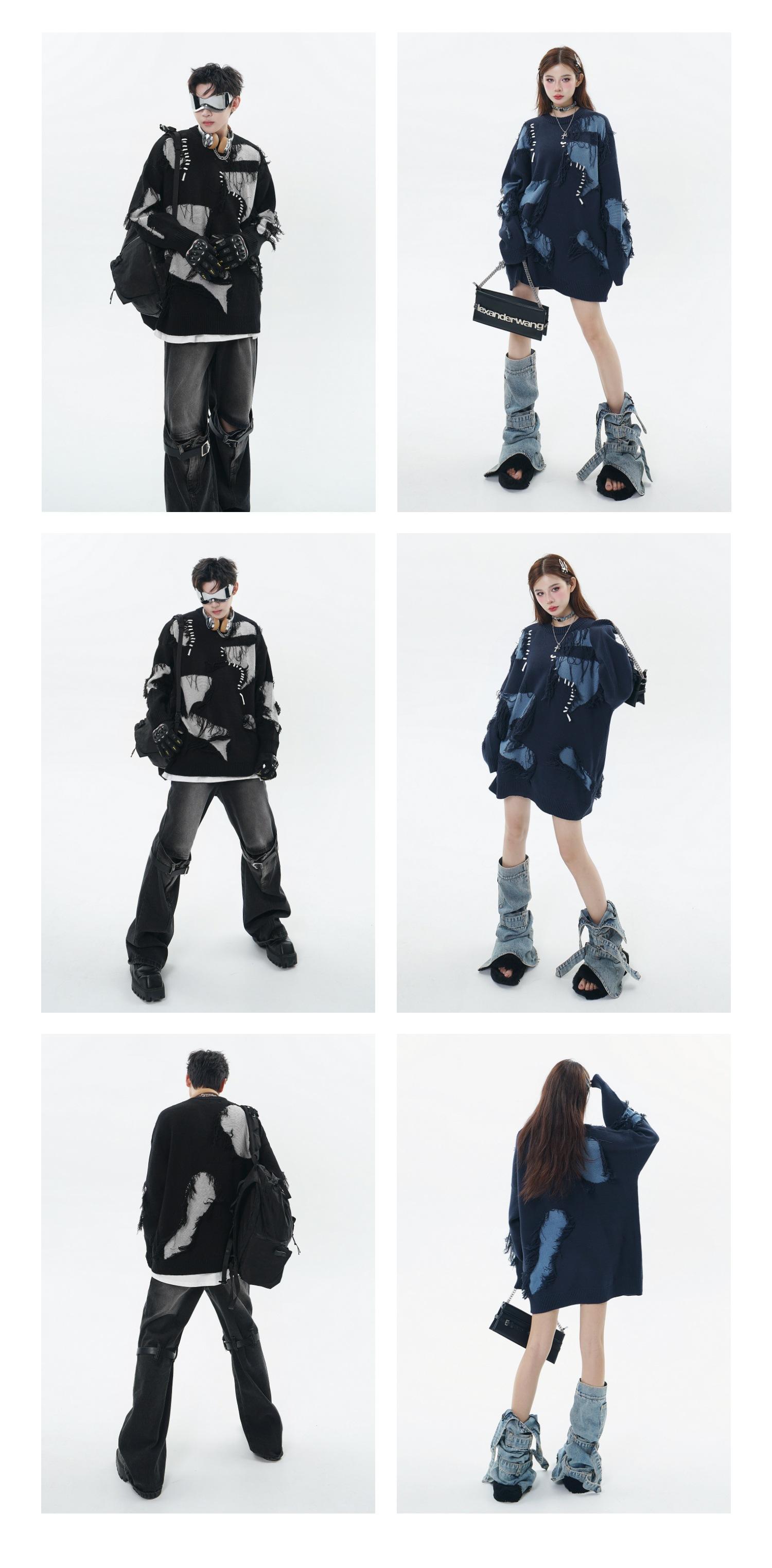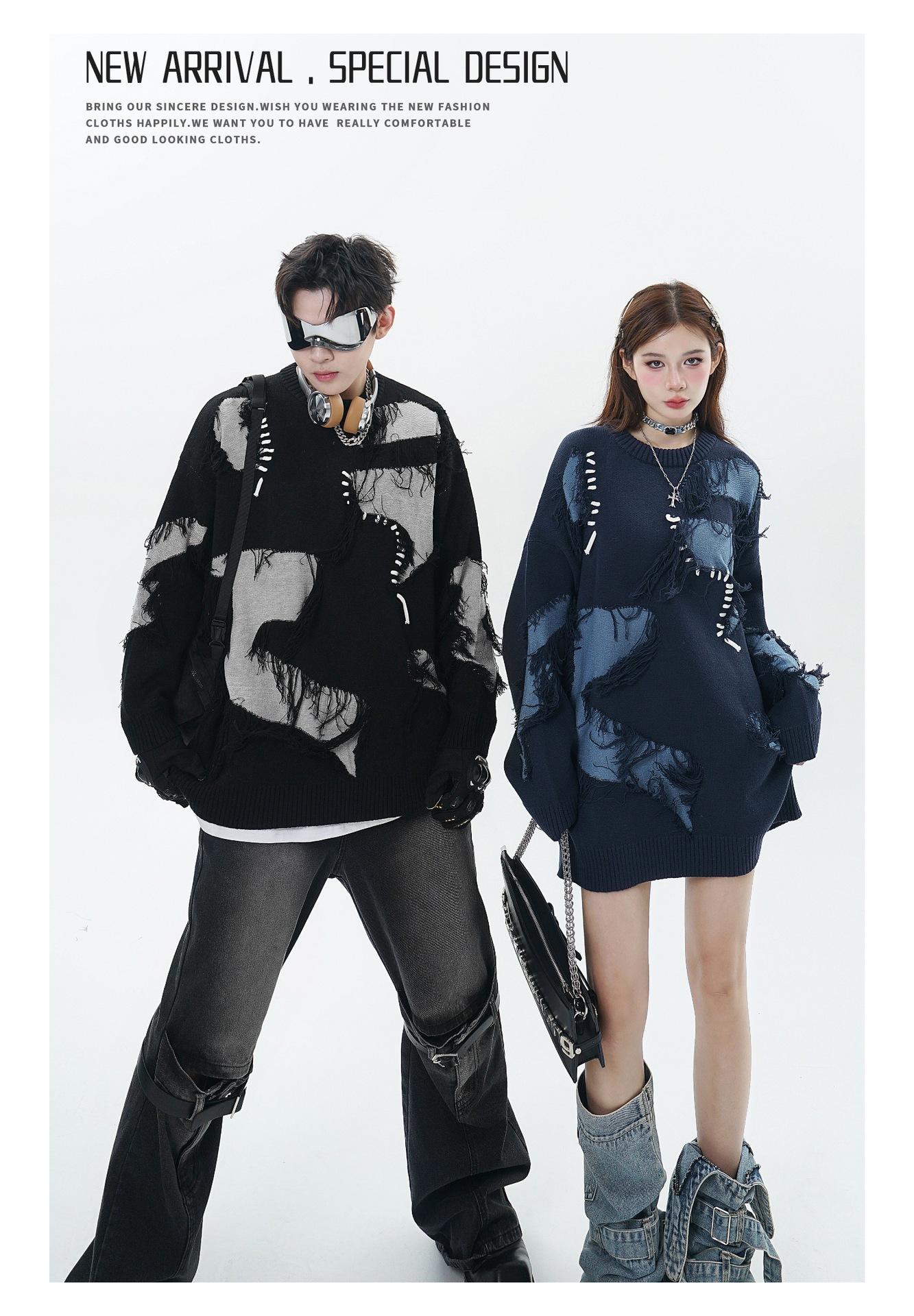 REGISTRO DE TARJETA TIDE | Moda callejera borla cuerda costuras diseño de moda patrón irregular jersey de punto