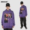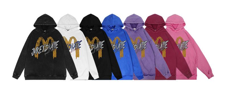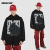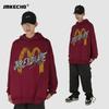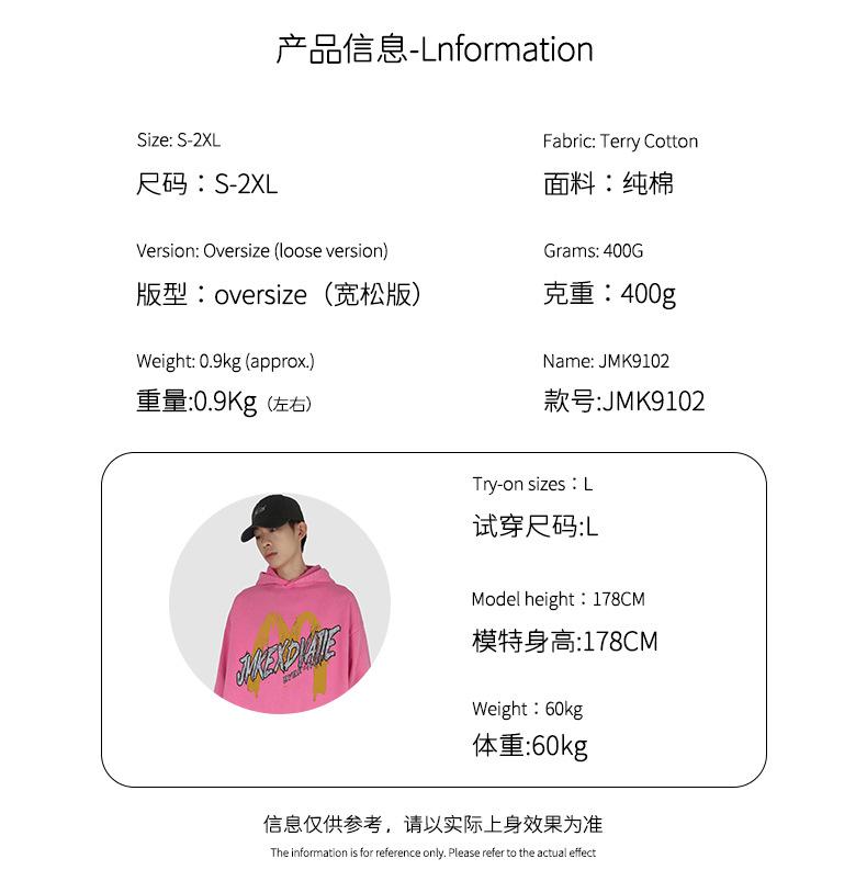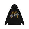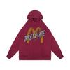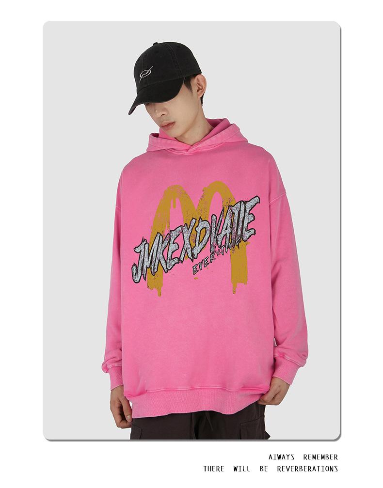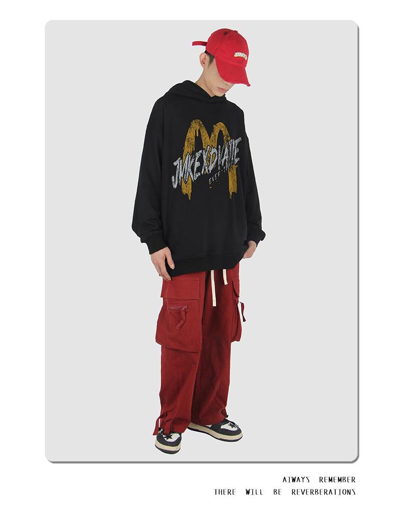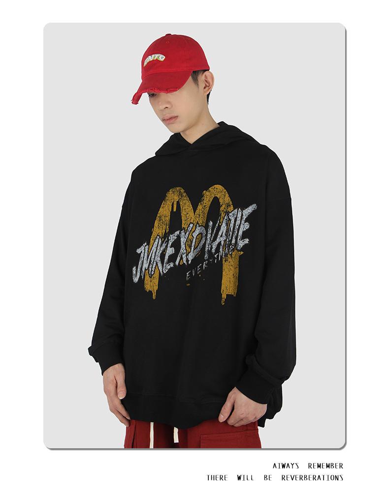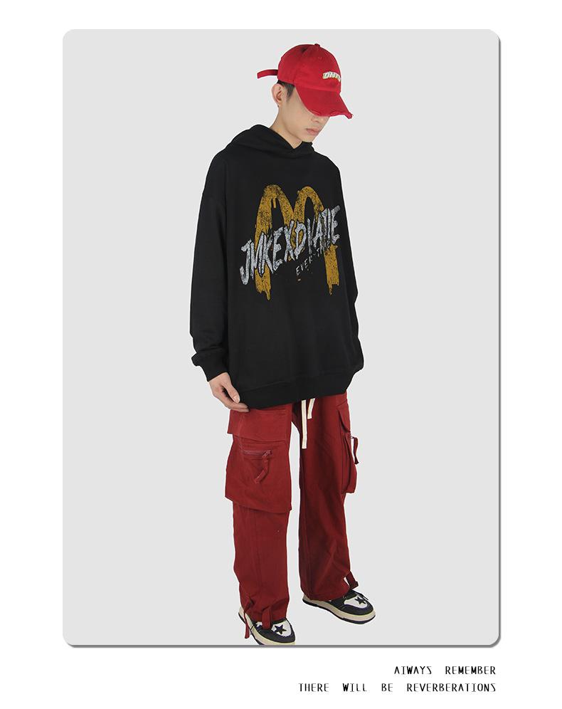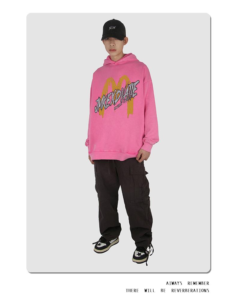 Suéter con capucha desgastado, holgado, estilo perezoso, estampado con la letra M de la marca de moda masculina estadounidense de 400 g